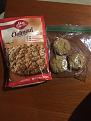Schmear em with crunchy peanut butter and sprinkle with Honey Nut Cheerios.