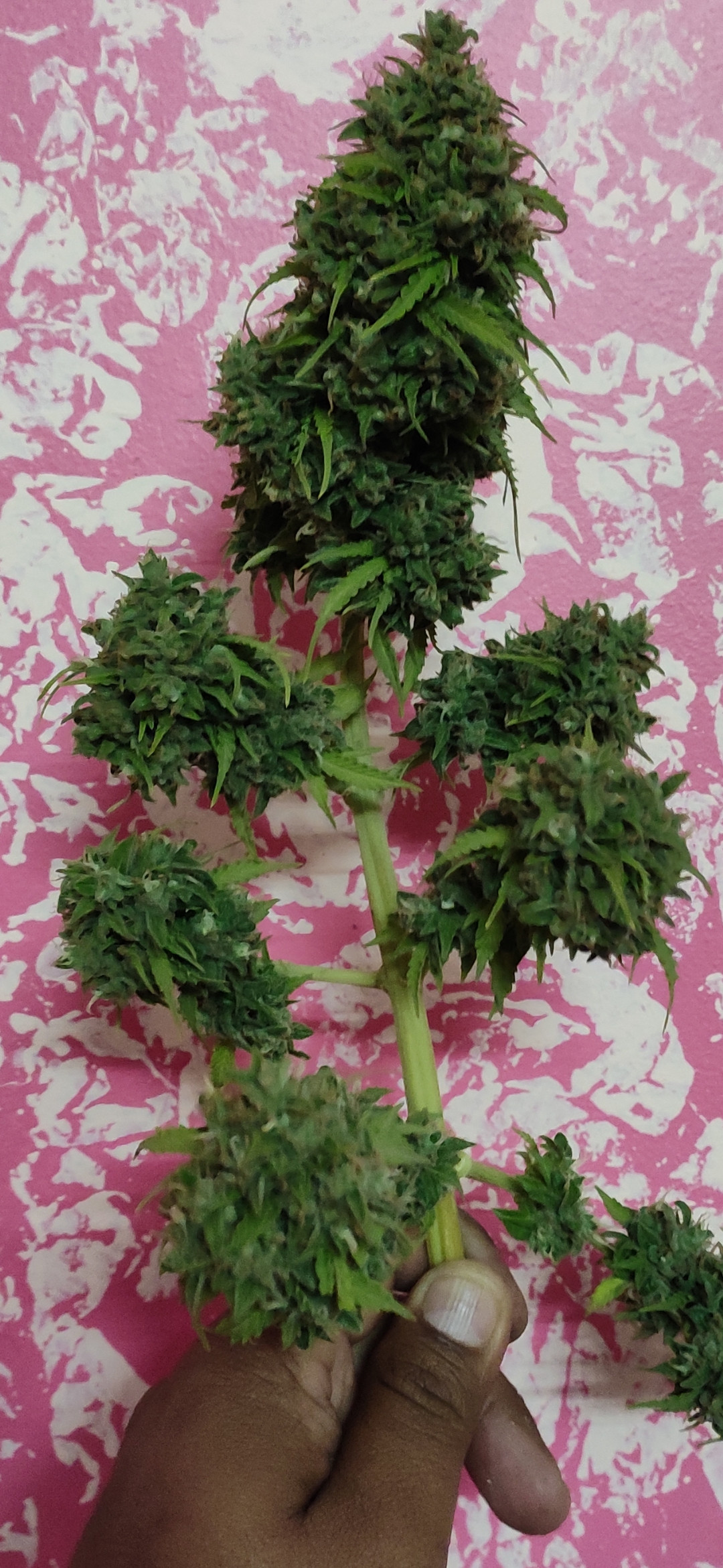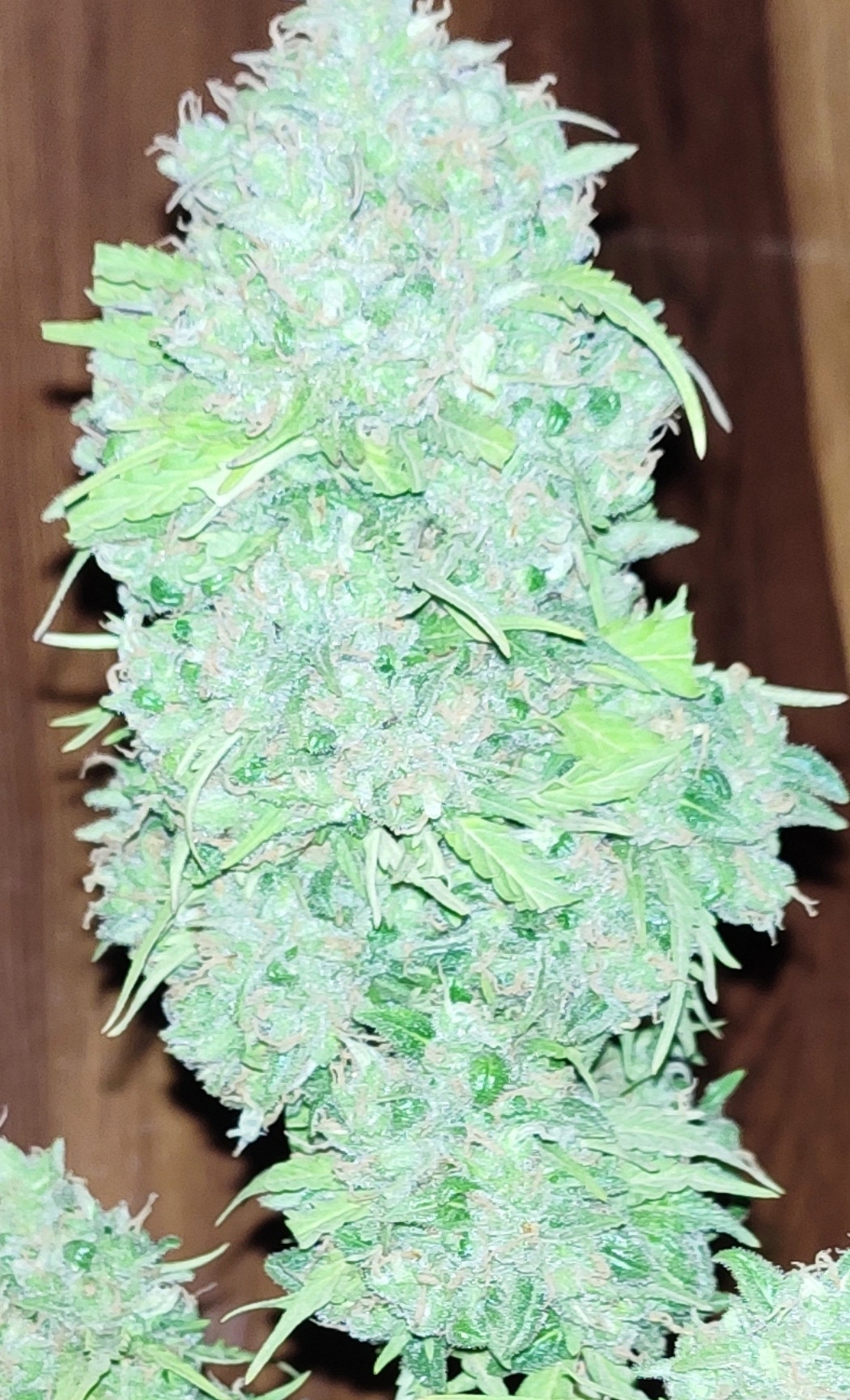 This is Big bang auto from GHSeeds growing outdoor and is at week-6 of flowering. The pictures show the main cola and the trichomes, these are the best images I could get.