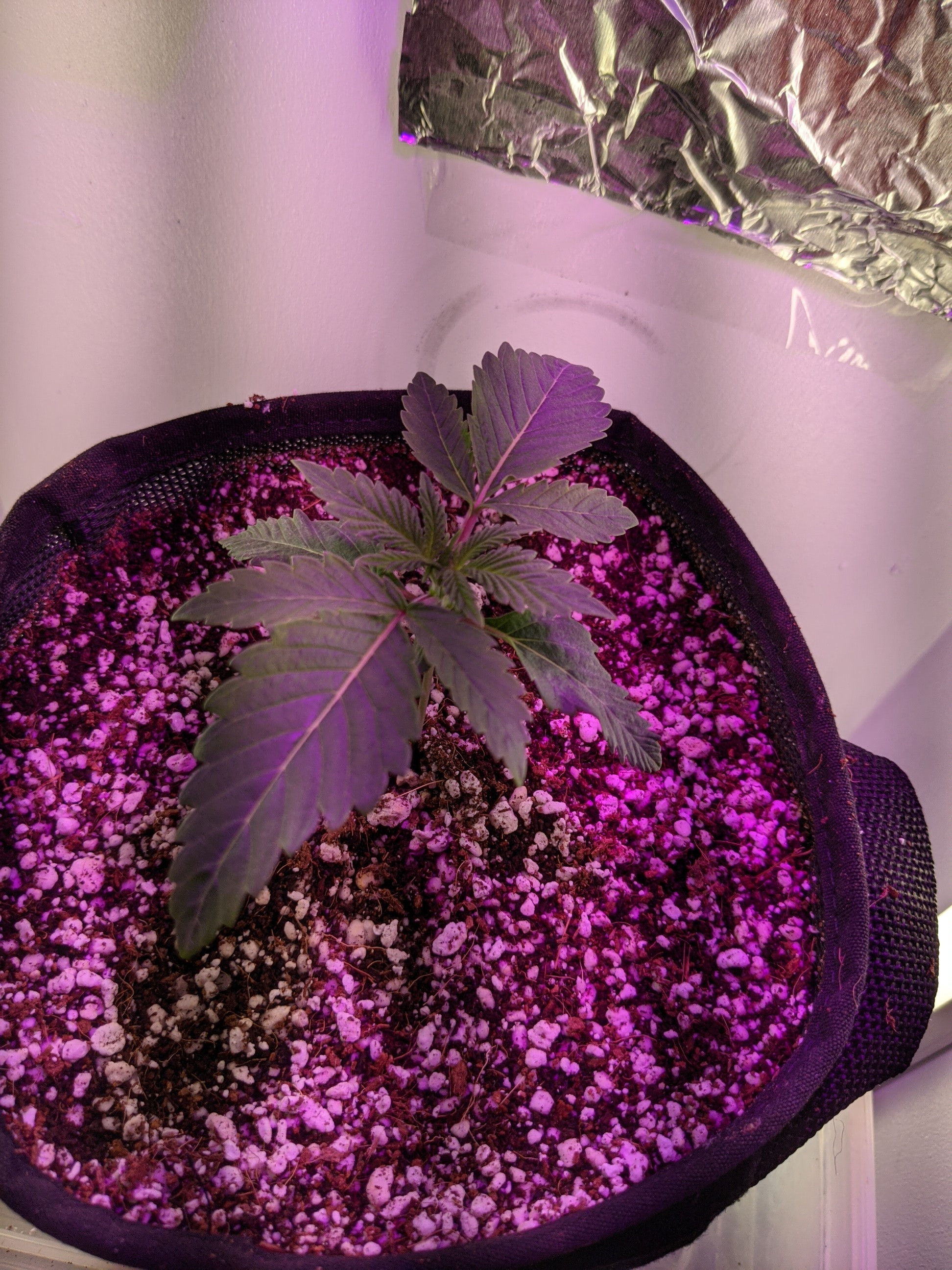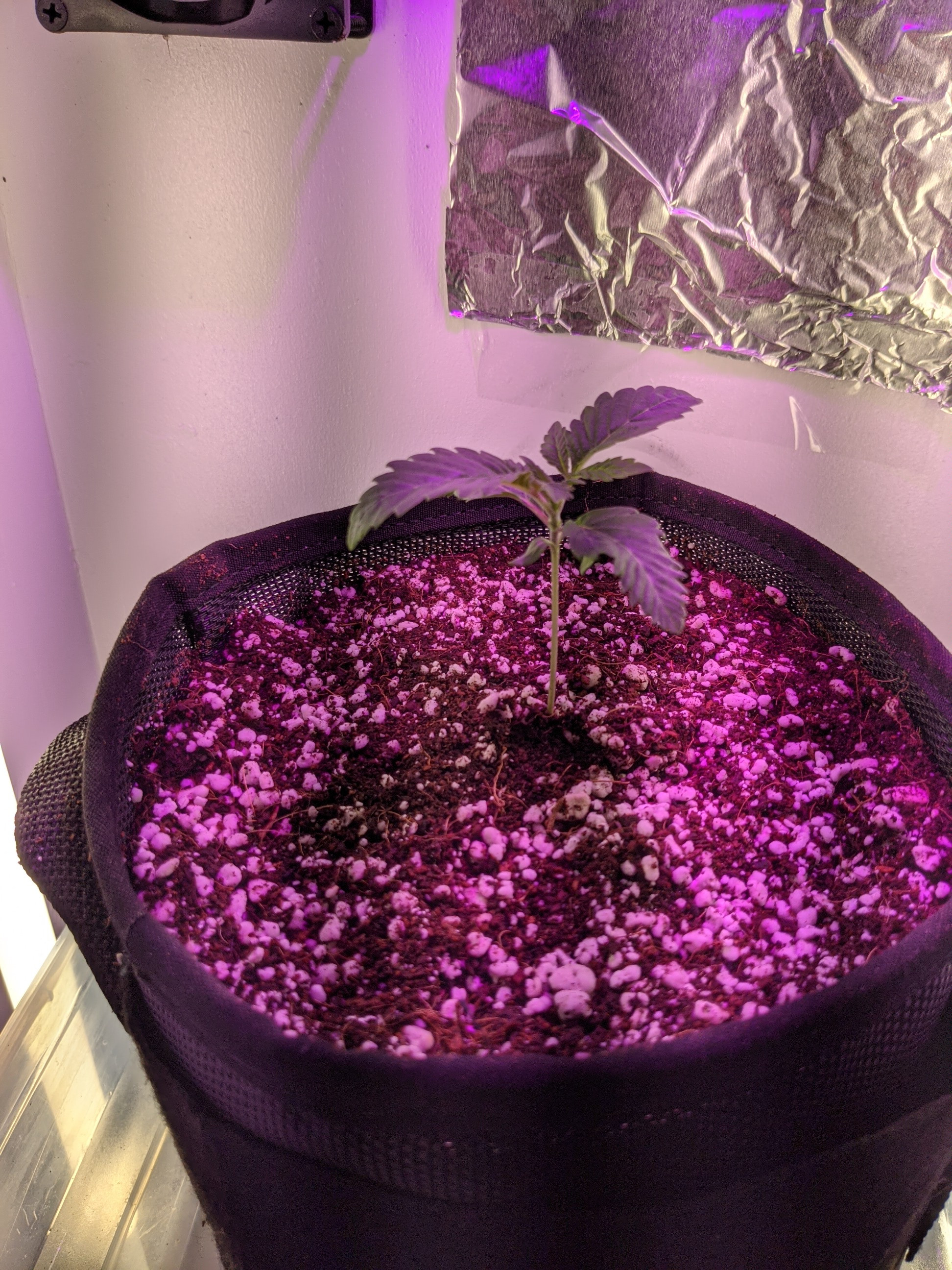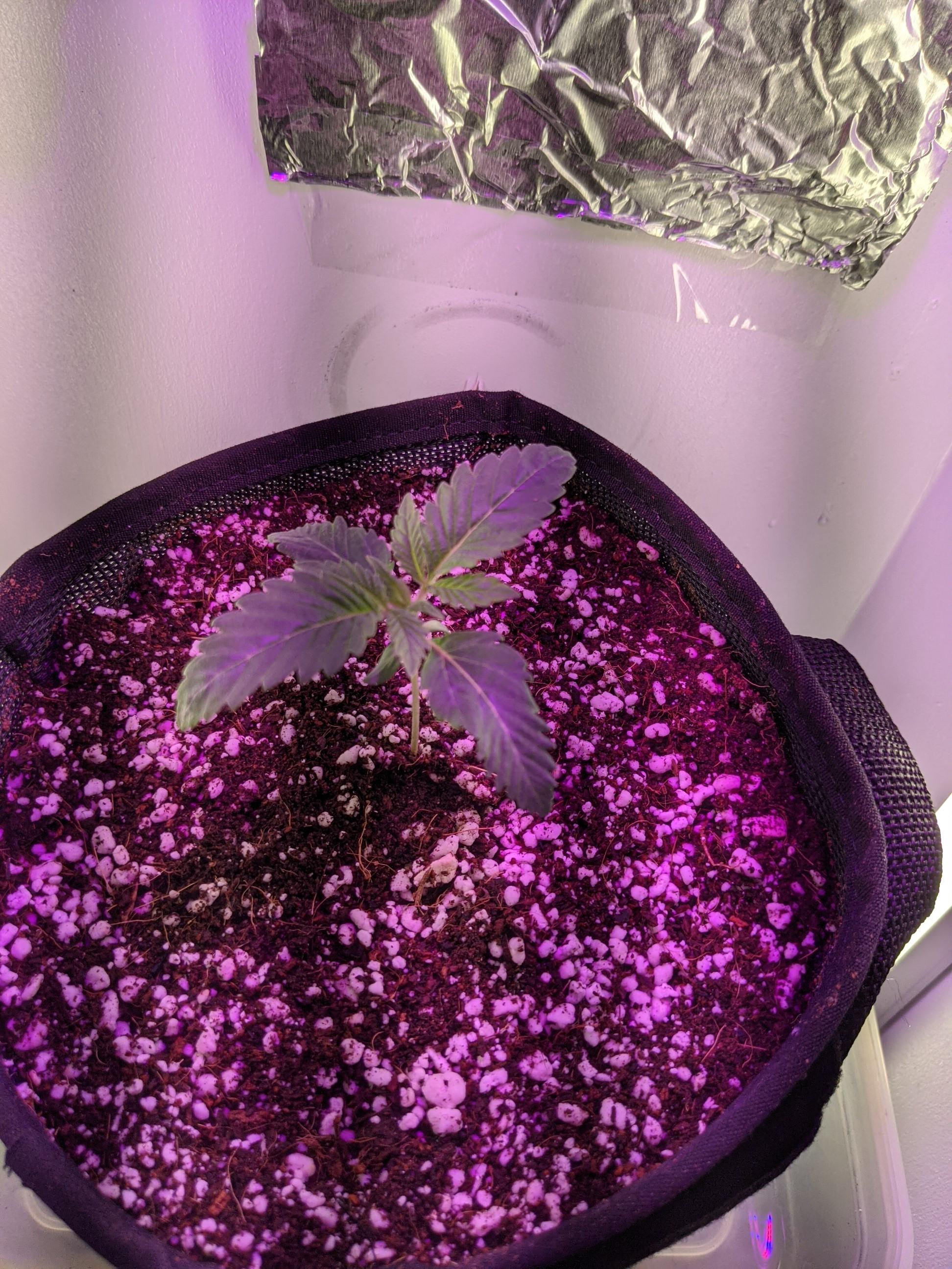 Hey guys happy Saturday! No I didn't run out of foil haha, should I put more foil I was thinking of lining the whole box up or using the HVAC tape. Here she is guys since Stella (trying to find her groove lol)😂 popped from soil on January 17th is this pretty good growth?so far I did top off the soil to go a little higher on the stem to protect it a little more. Thanks guys!