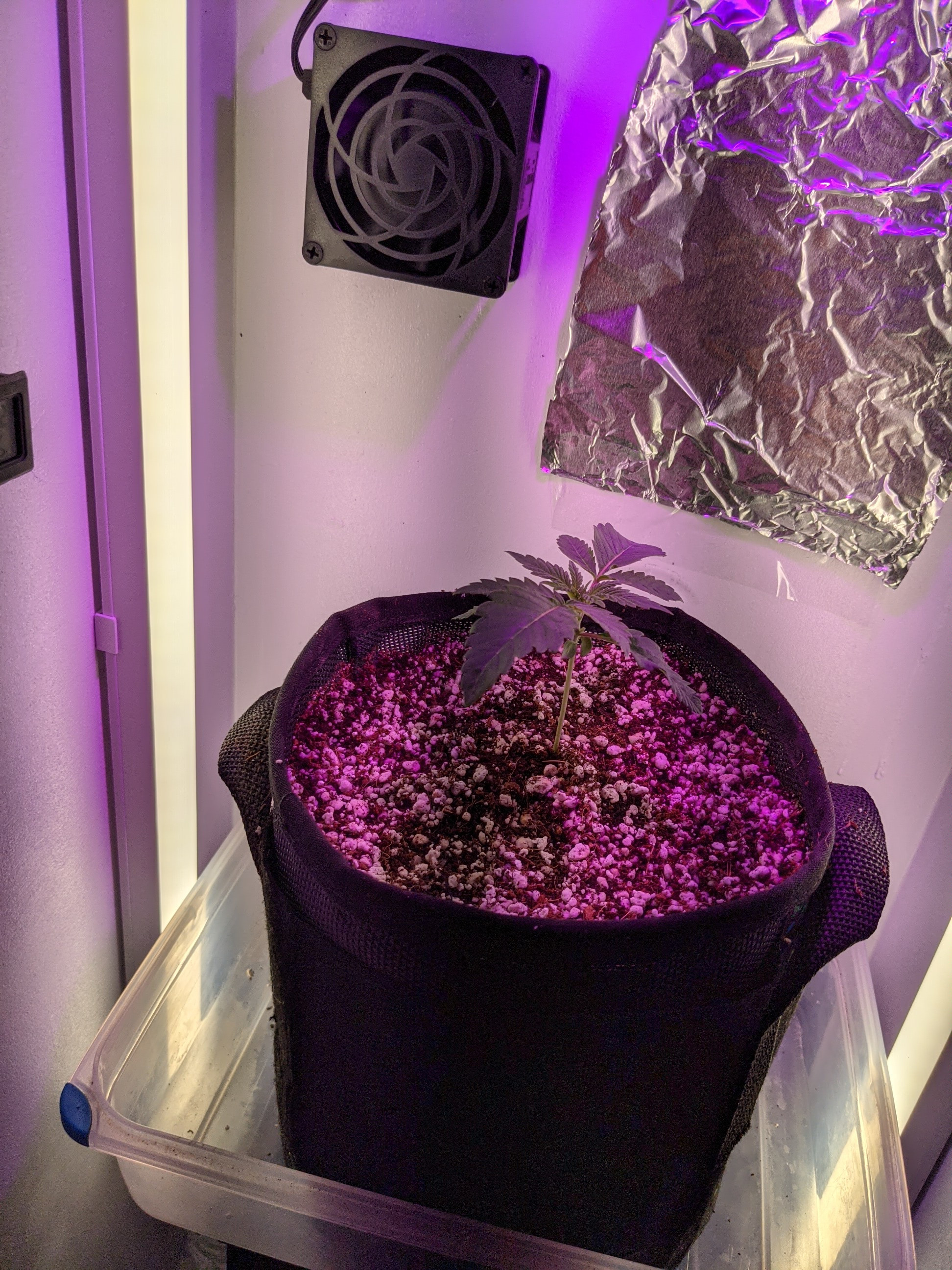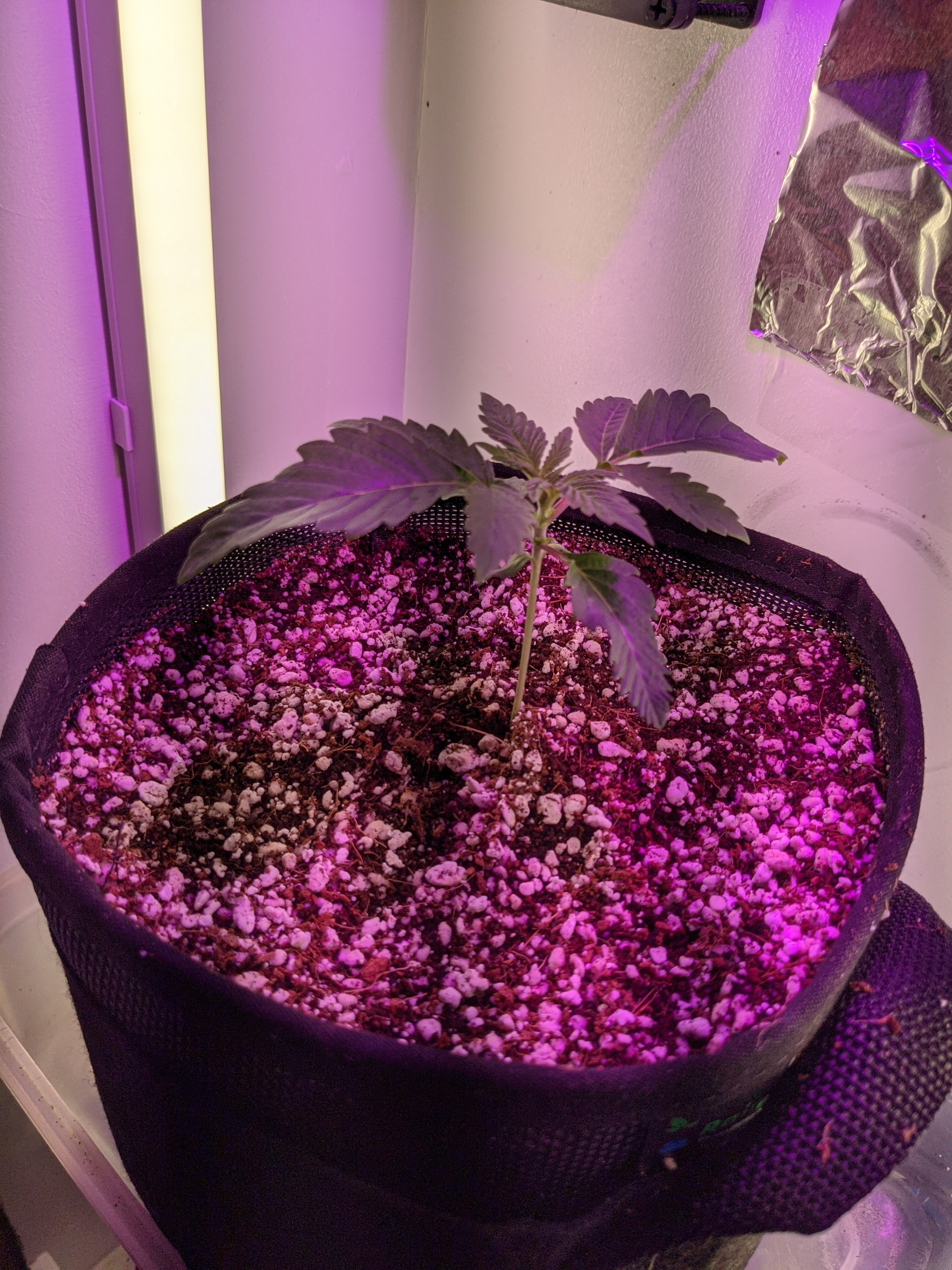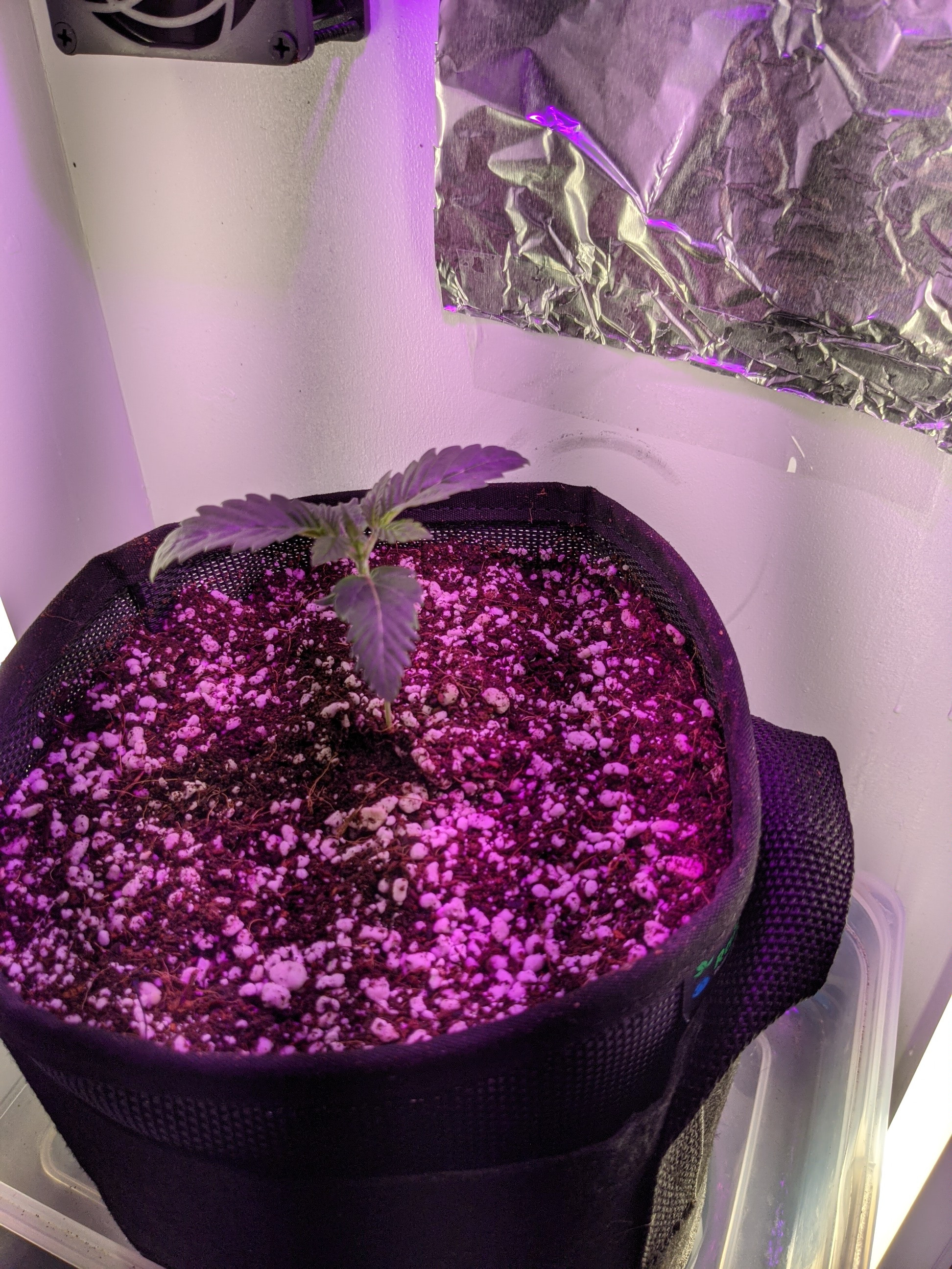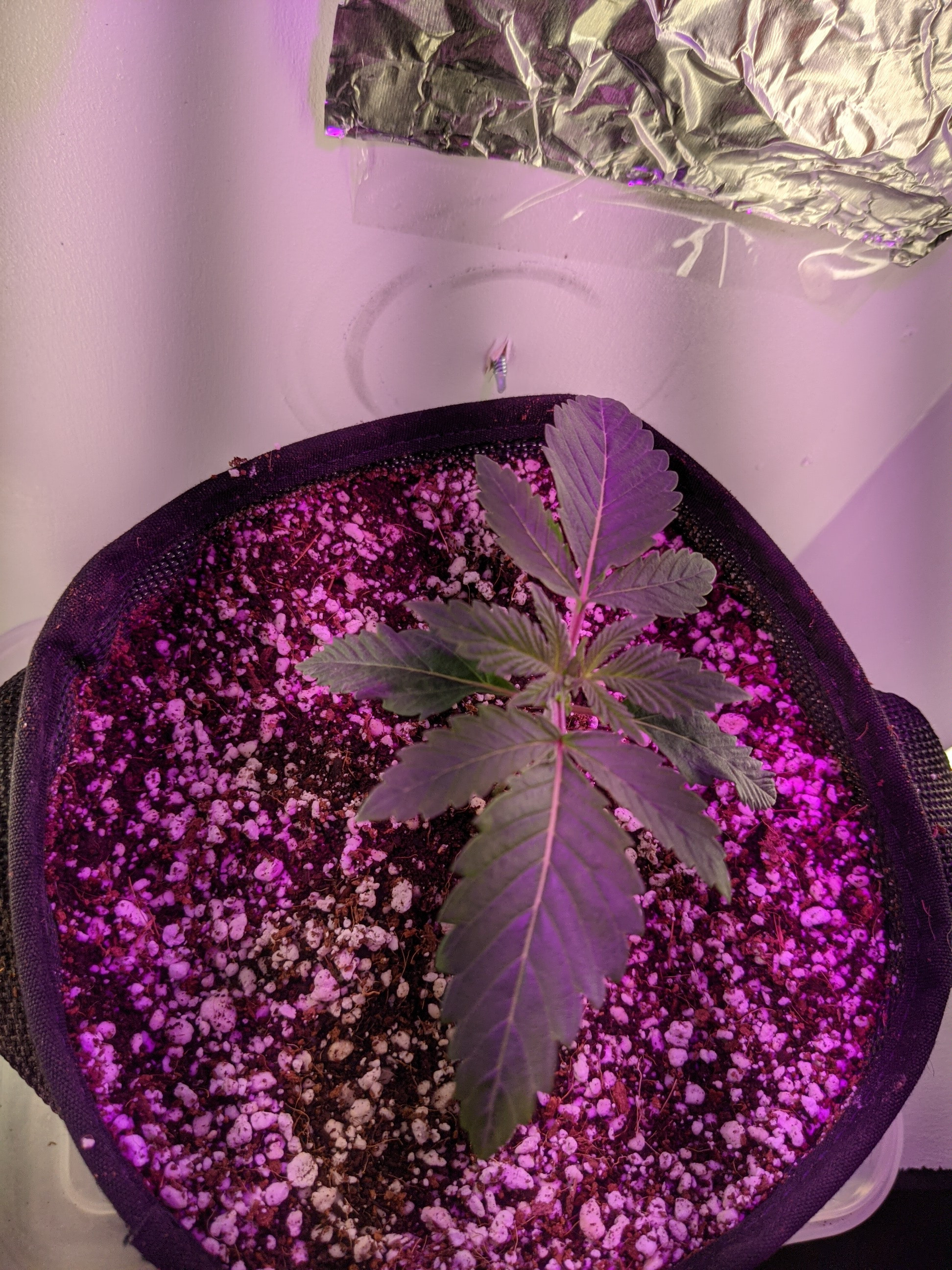 Hey guys happy Saturday! No I didn't run out of foil haha, should I put more foil I was thinking of lining the whole box up or using the HVAC tape. Here she is guys since Stella (trying to find her groove lol)😂 popped from soil on January 17th is this pretty good growth?so far I did top off the soil to go a little higher on the stem to protect it a little more. Thanks guys!