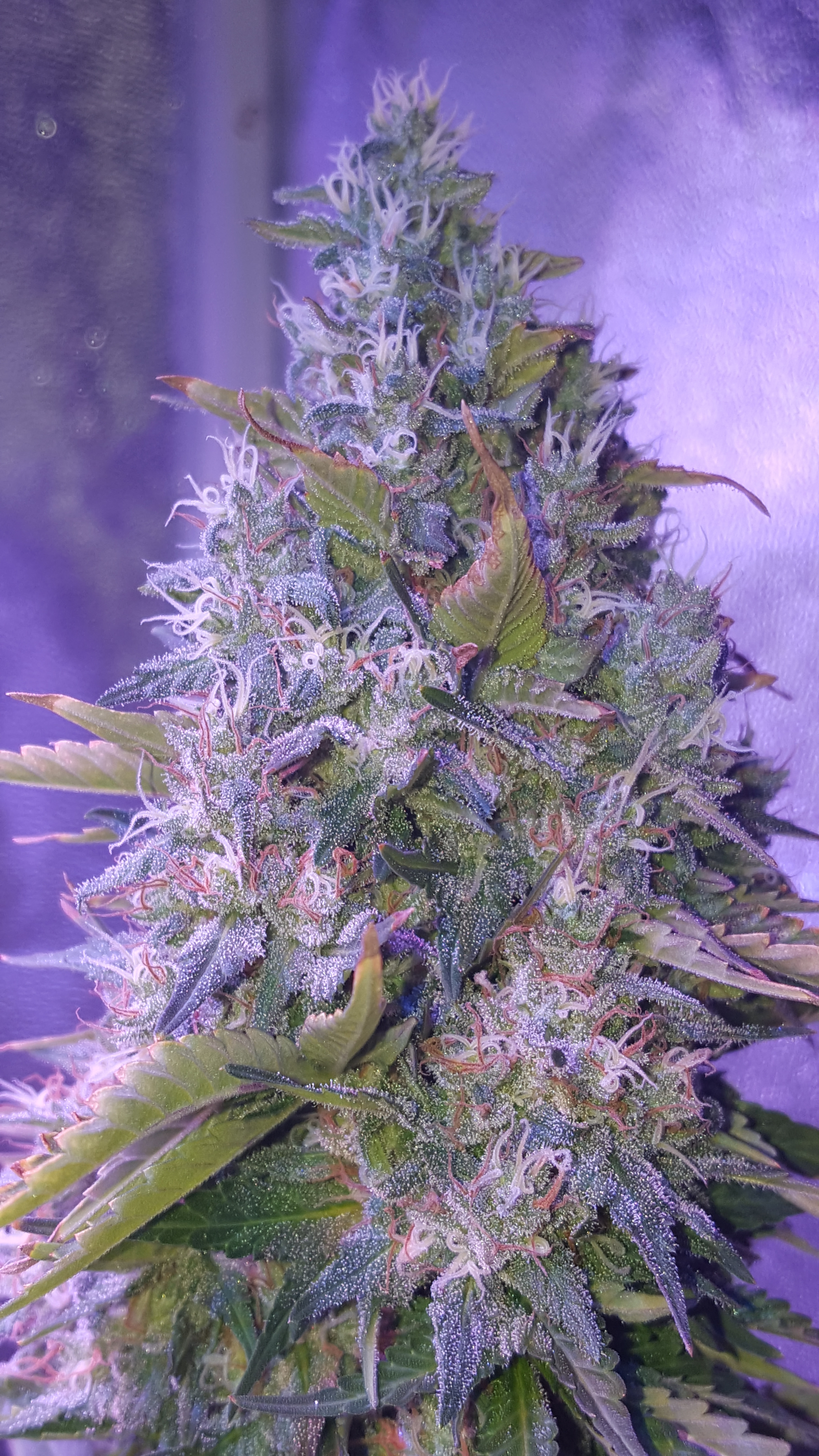 Gorgeous. Looks a little under ripe to me, but I'm an old fart that likes a fully ripened bud. A lot of white pistils. It can still fatten up a little. I can't see trichomes from here. Most growers go by trichome color. But based on flower development, it has a little ways to go.