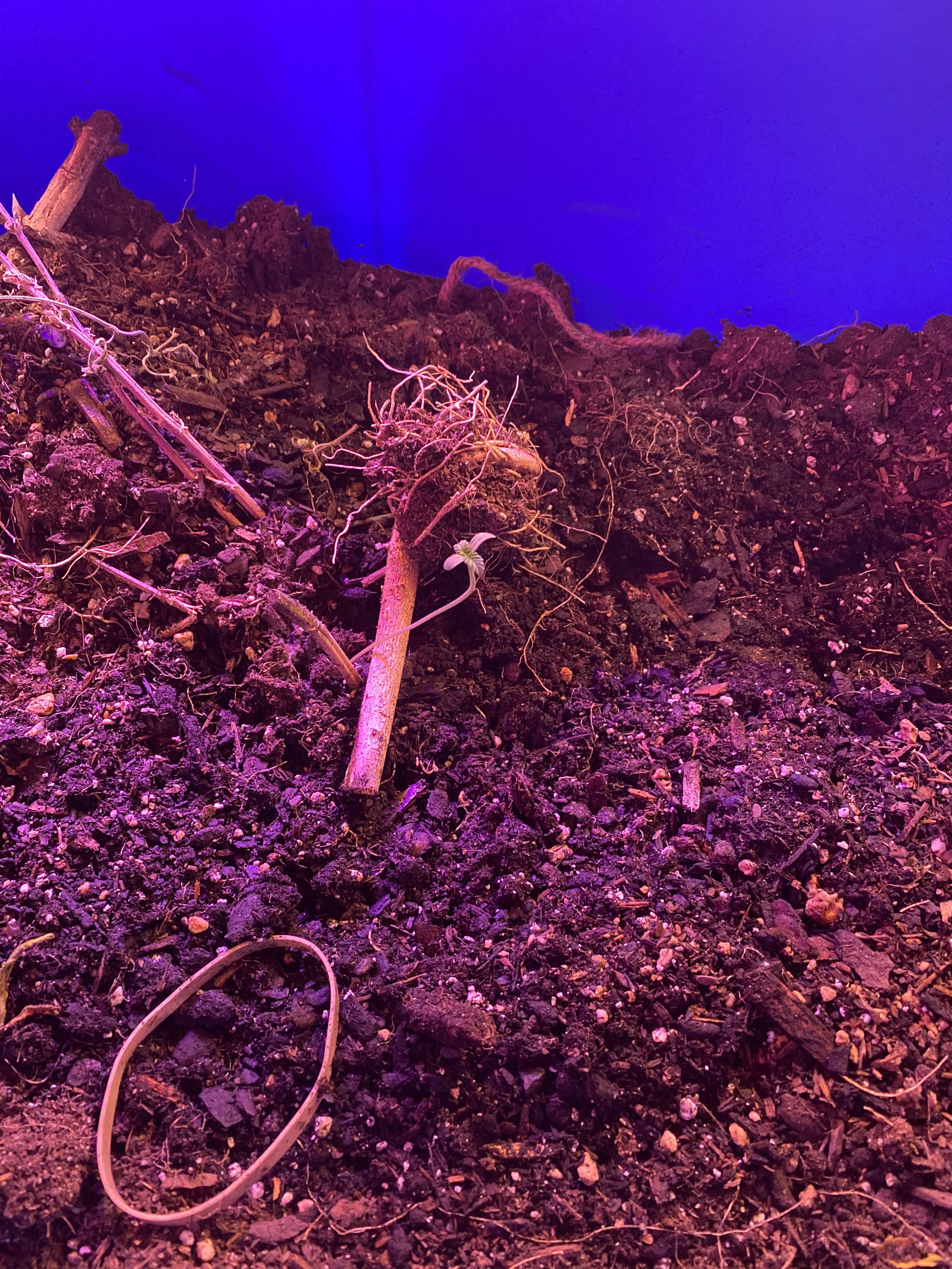 the blue tub was a trash dirt area with roots and stems and such. I tossed a seed in I though was garbage and now it’s growing in there. Fun stuff.