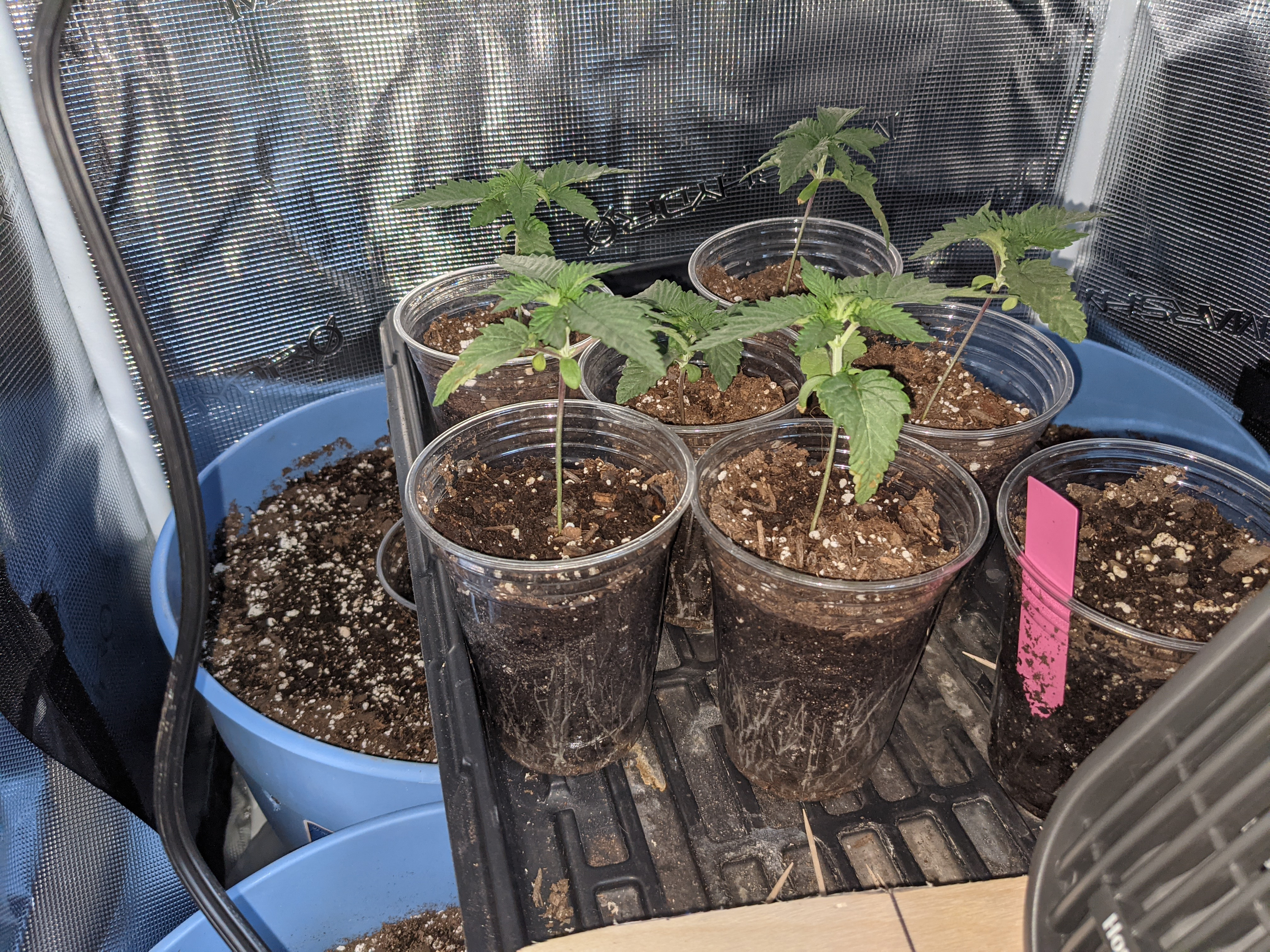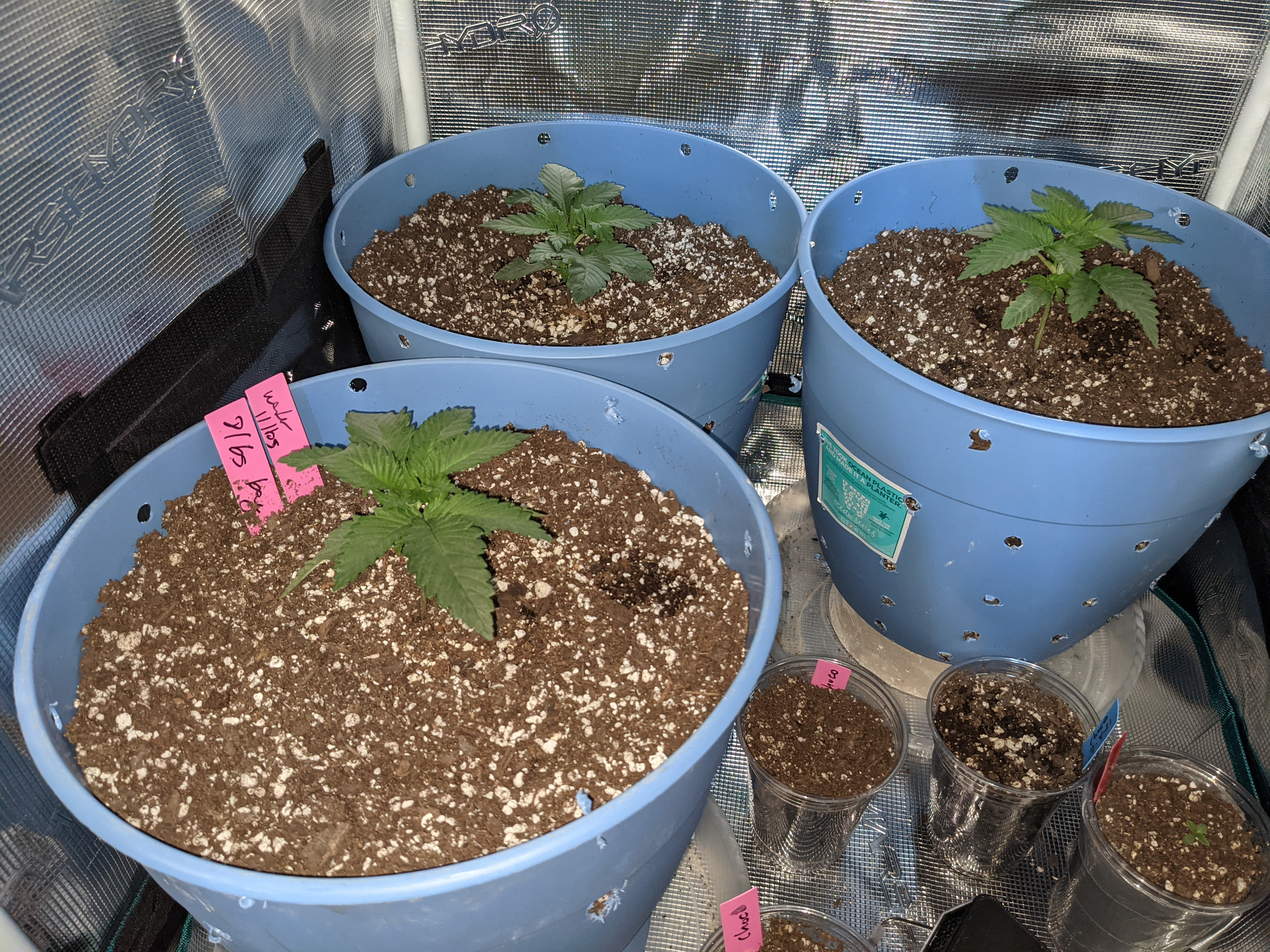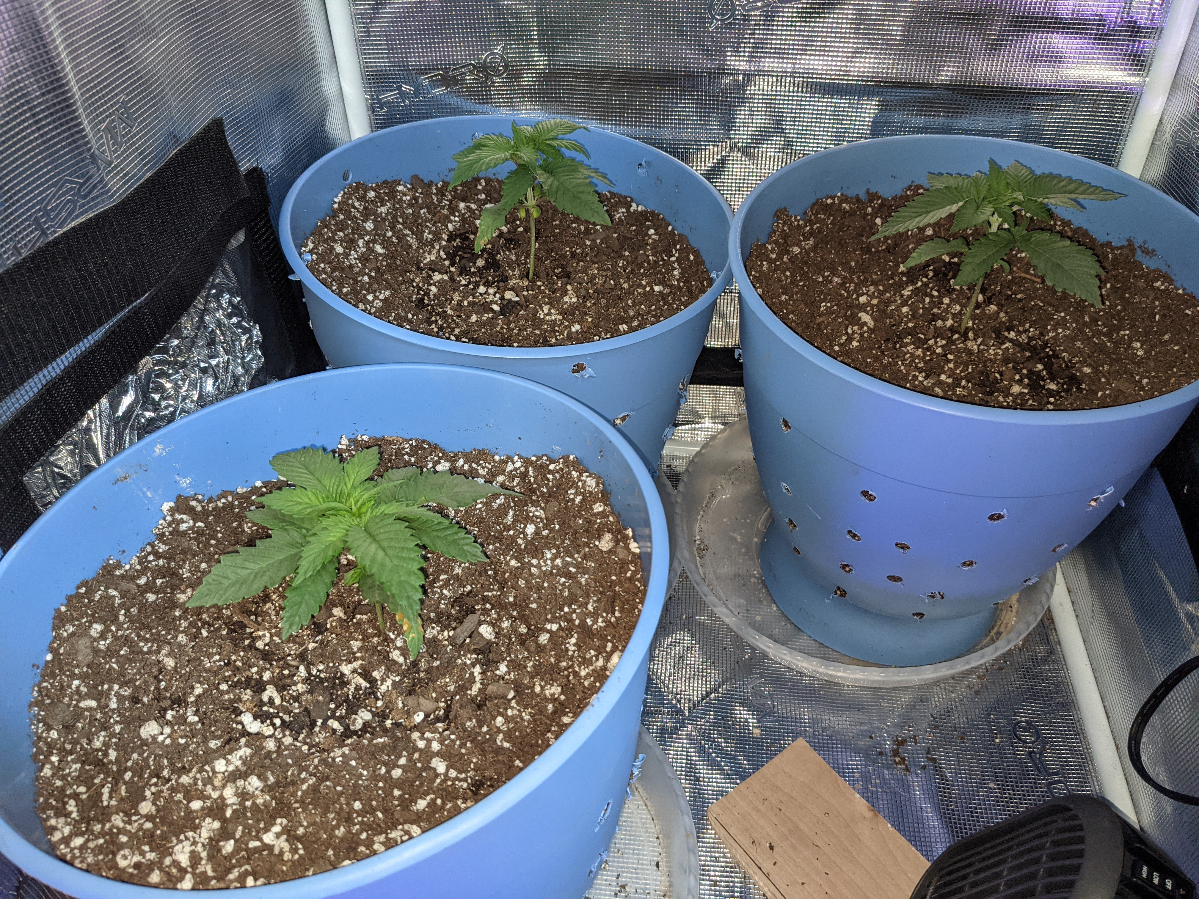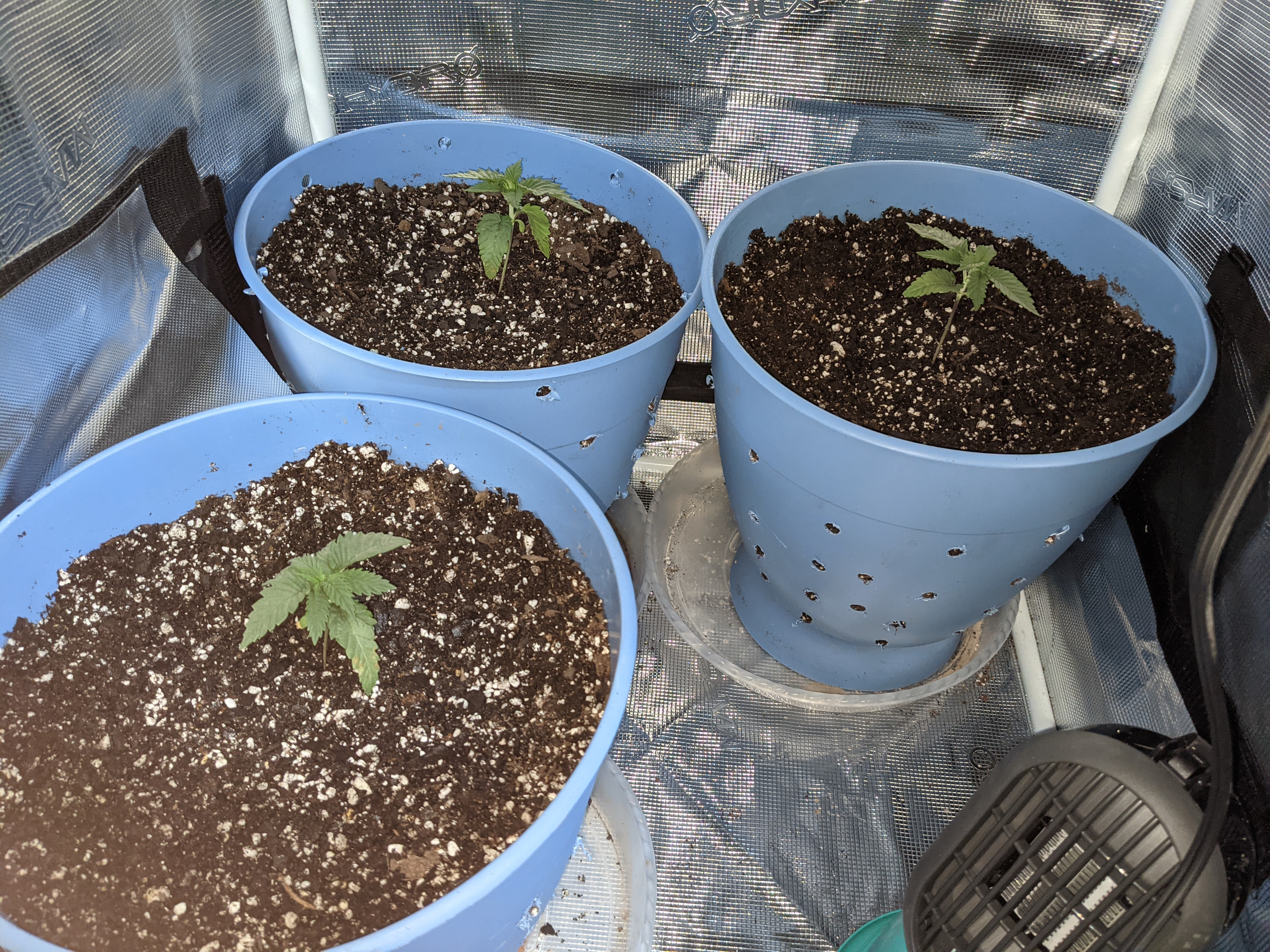 I replanted those 6 sprouts into my 3 gallon pots with a ton of holes in the bottom and sides. ocean forest with an extra 20% or so of perlite mixed in. They were replanted 4 days ago.