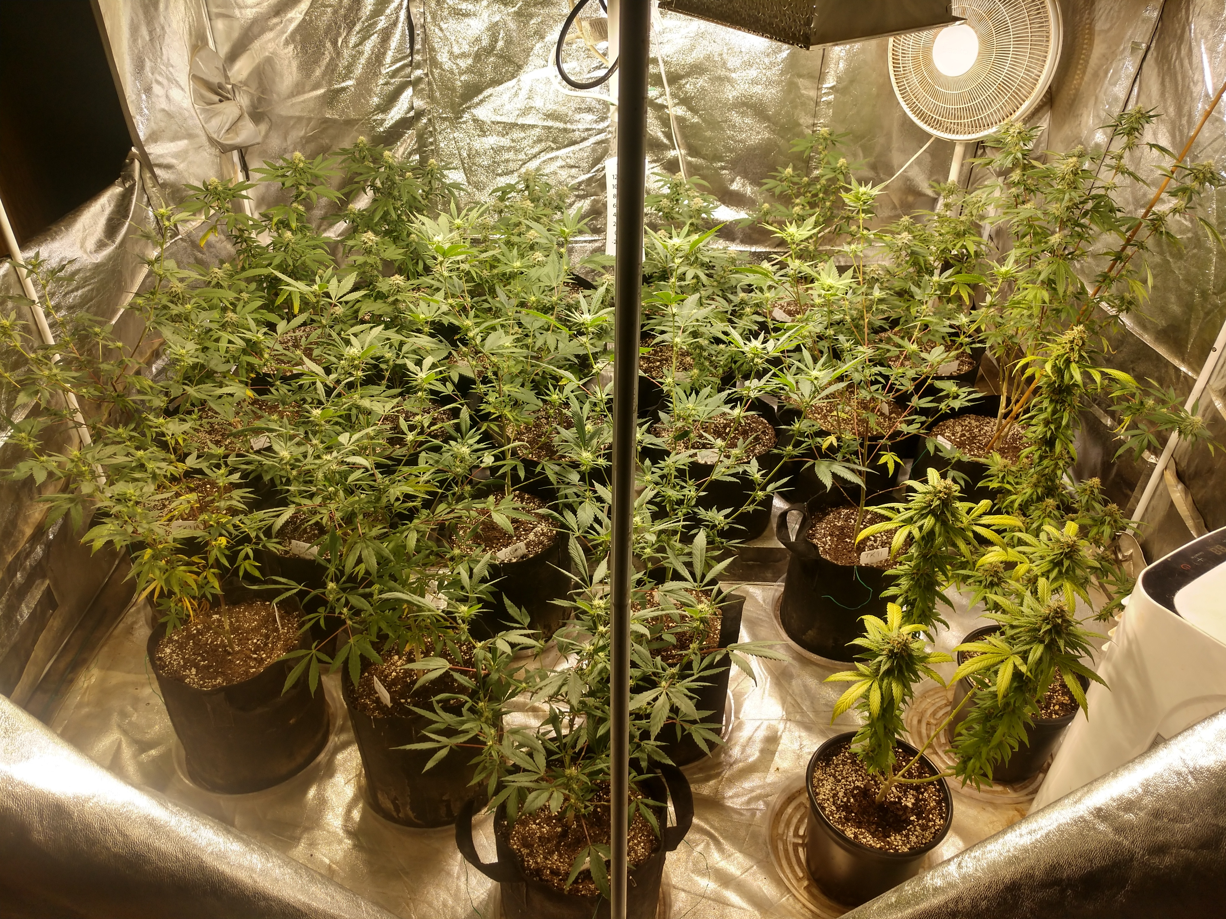 I think I've decided to do individual grows in each tent now. It's been too much of a challenge for me to try to time everything right and keep switching tents all the time. So my plan this time is about 12 ladies in the 8x8, going to try 2 in one 4x4, and I think I'm going to try 2 in coco (first coco grow) in the other. The 2x4 is still going to be a seedling/clone tent and the 2x2 still has mothers in it. There is currently nothing in one of the 4x4s, but here's the rest, enjoy! I know I do.
