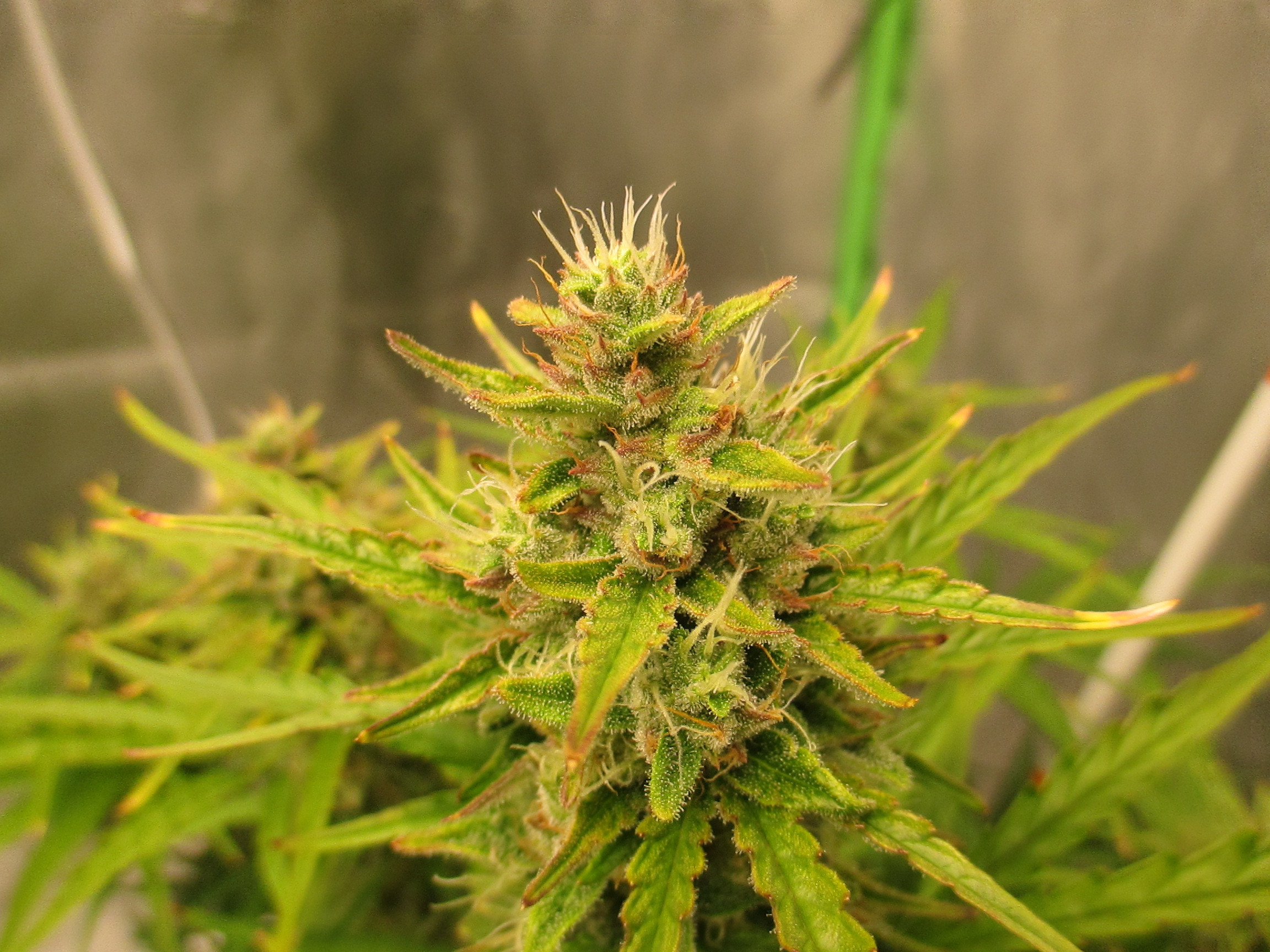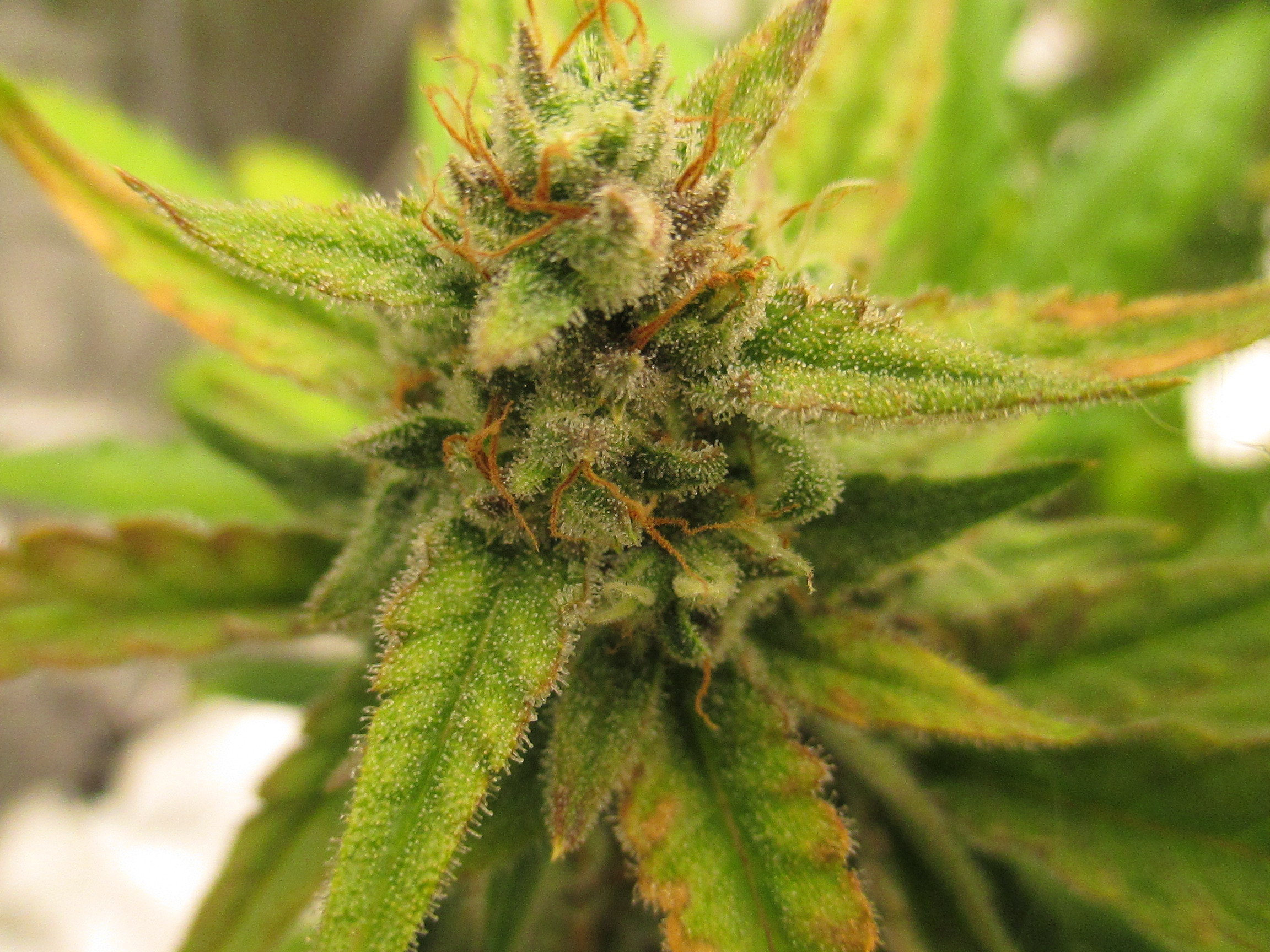 You are not ready to harvest. All of the white hairs should be brown and curled into the bud. The tricomes on the BUD should be(depending on your personal taste) about 20$ amber. PatienceCurrent Grow: 2 Acapulco Gold, 2 Summer Lemons