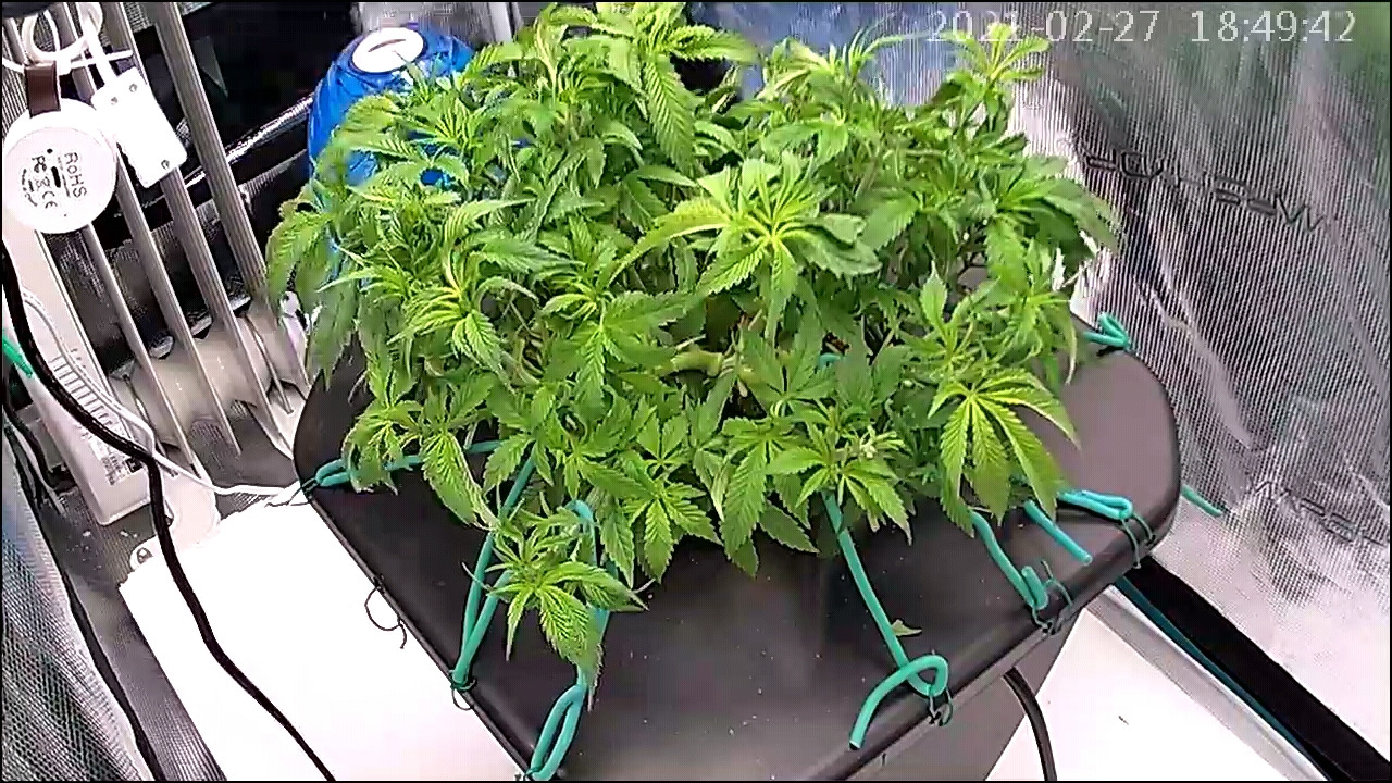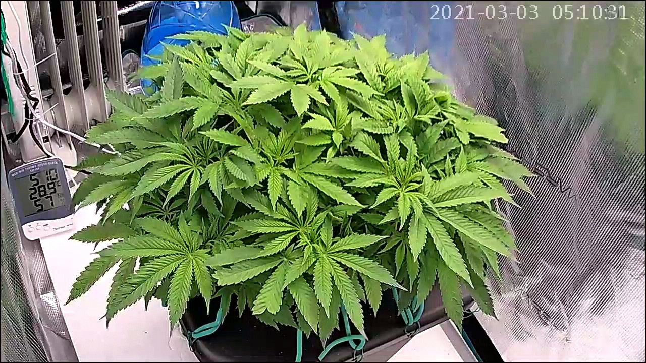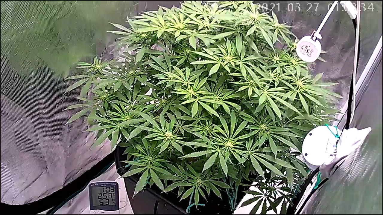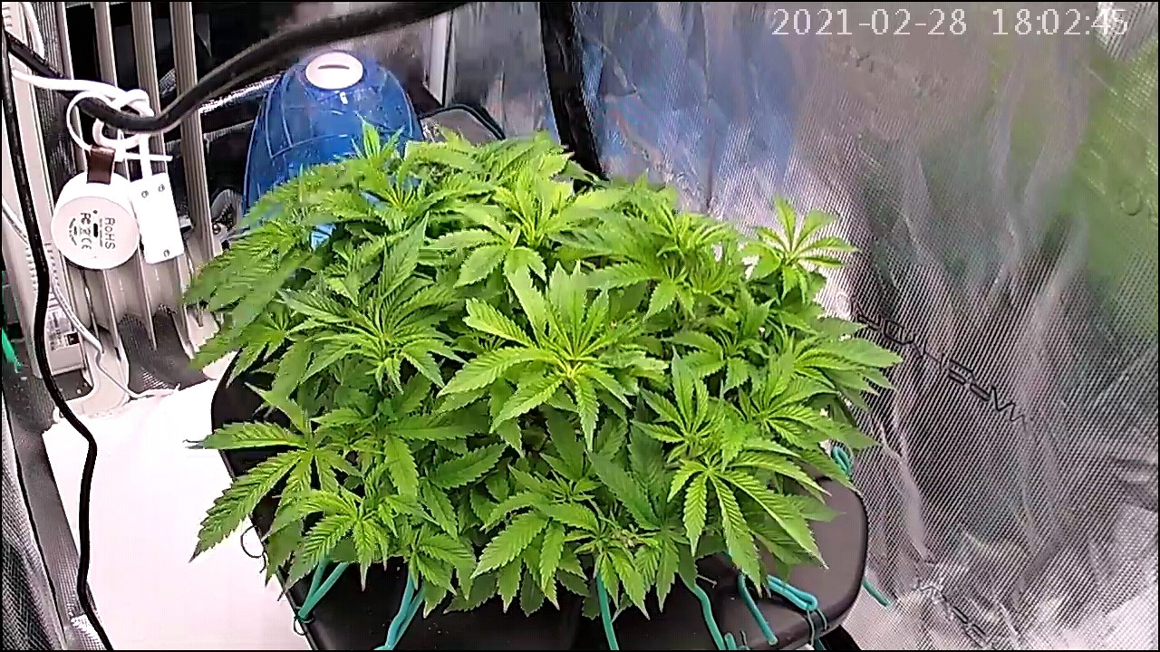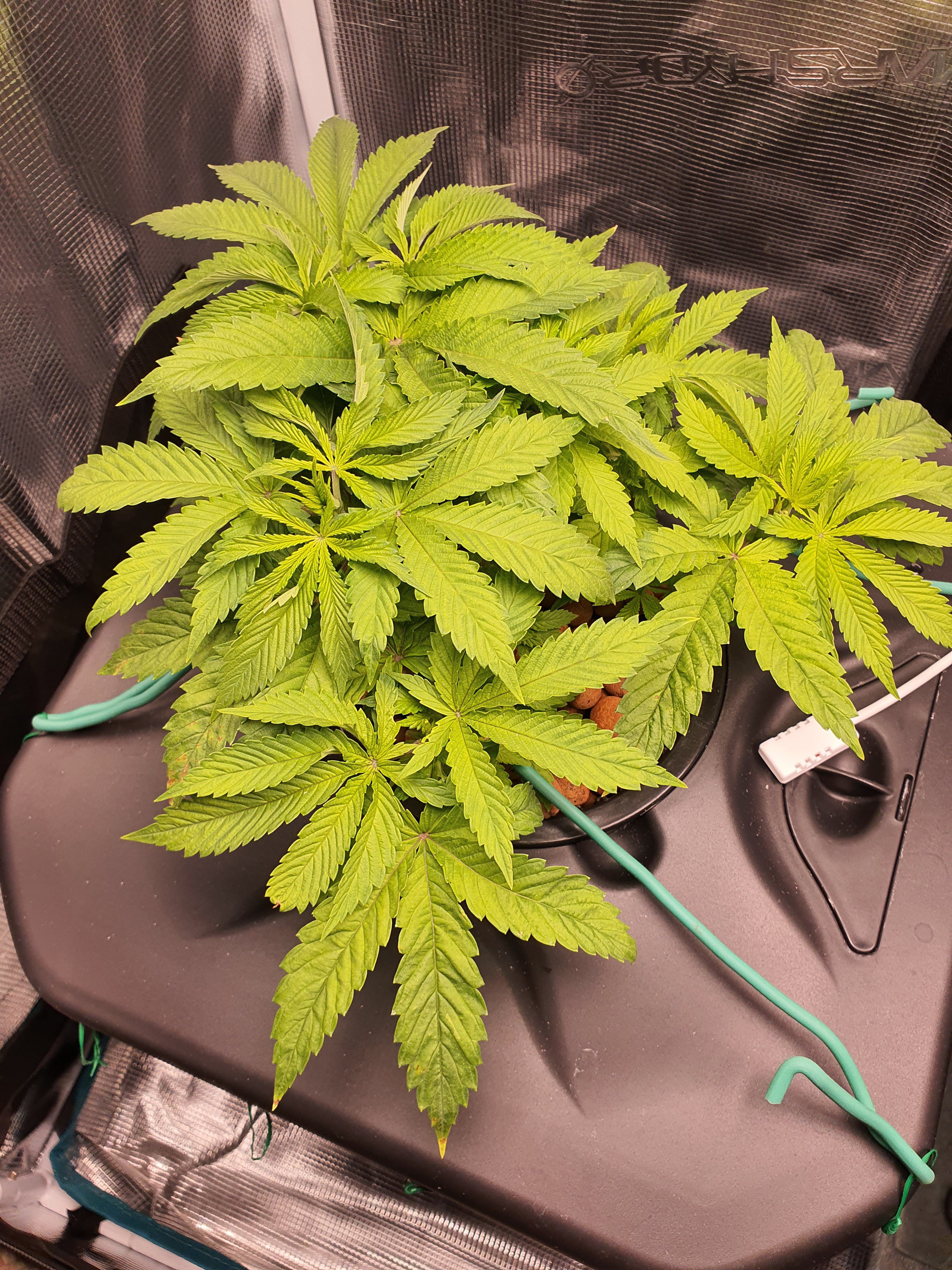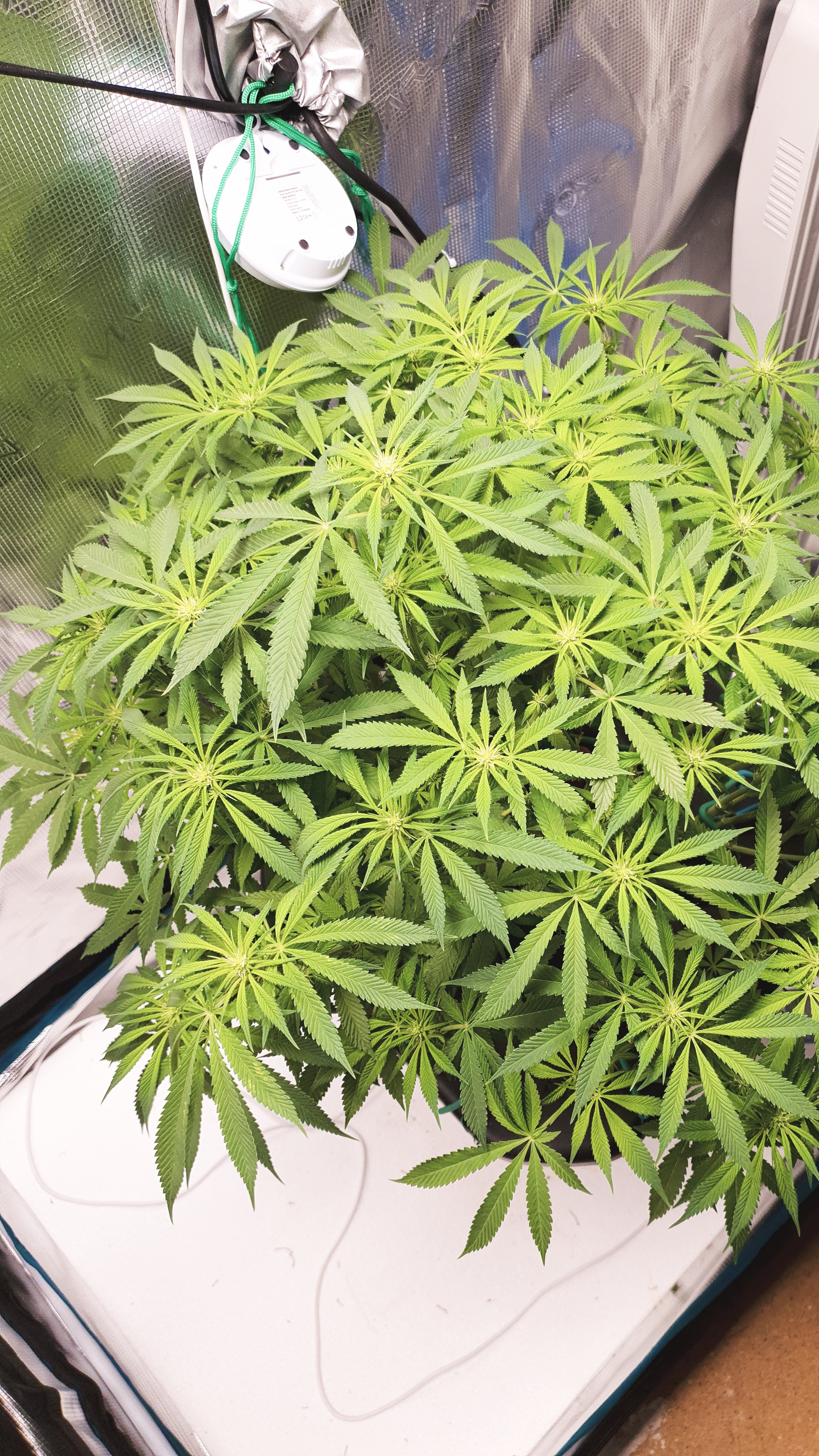 A update on my grow I'm keeping to the charts you gave me YYCannabis I'm still fighting with my daily obsession with VPD but can't quite get it perfect but I'm 75 % at least in the green zone I've left it for a extra week or so after your comments on getting the big leaves out I saw a lot more opportunity of a bit more training but she's starting to look very eventually Spread out now and I finally changed the light cycle to 12 on 12 off