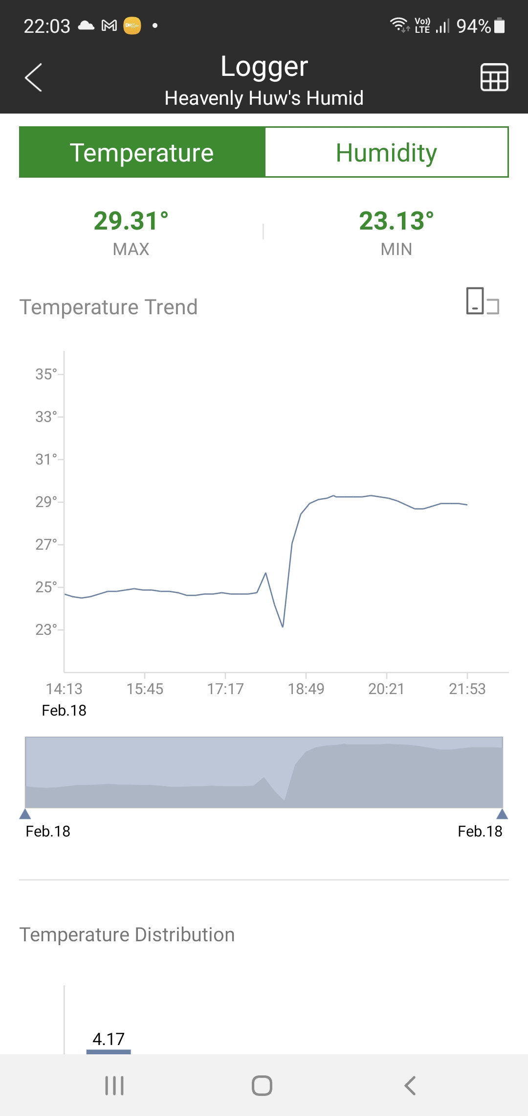 Thankyou guys I'm so happy it's recovered I have a few quick questions if you don't mind answering yesterday I bought a Bluetooth humidity/temperature monitor that records over several days I have a small oil heater in the tent and it was on a thermostat and kicks on and off but looking at the graph there was a very big swing in temp every 20 minutes as it turned on and off so I've removed the thermostat and got the heater on constantly and recorded over the lights out period if looking at graph it stays at 24c very constant the heartbeat dip in the graph is where lights come on and I went into tent to check ph ec so with lights on now it's staying at a very steady 29c , so my question on this is is 29c temperature too high