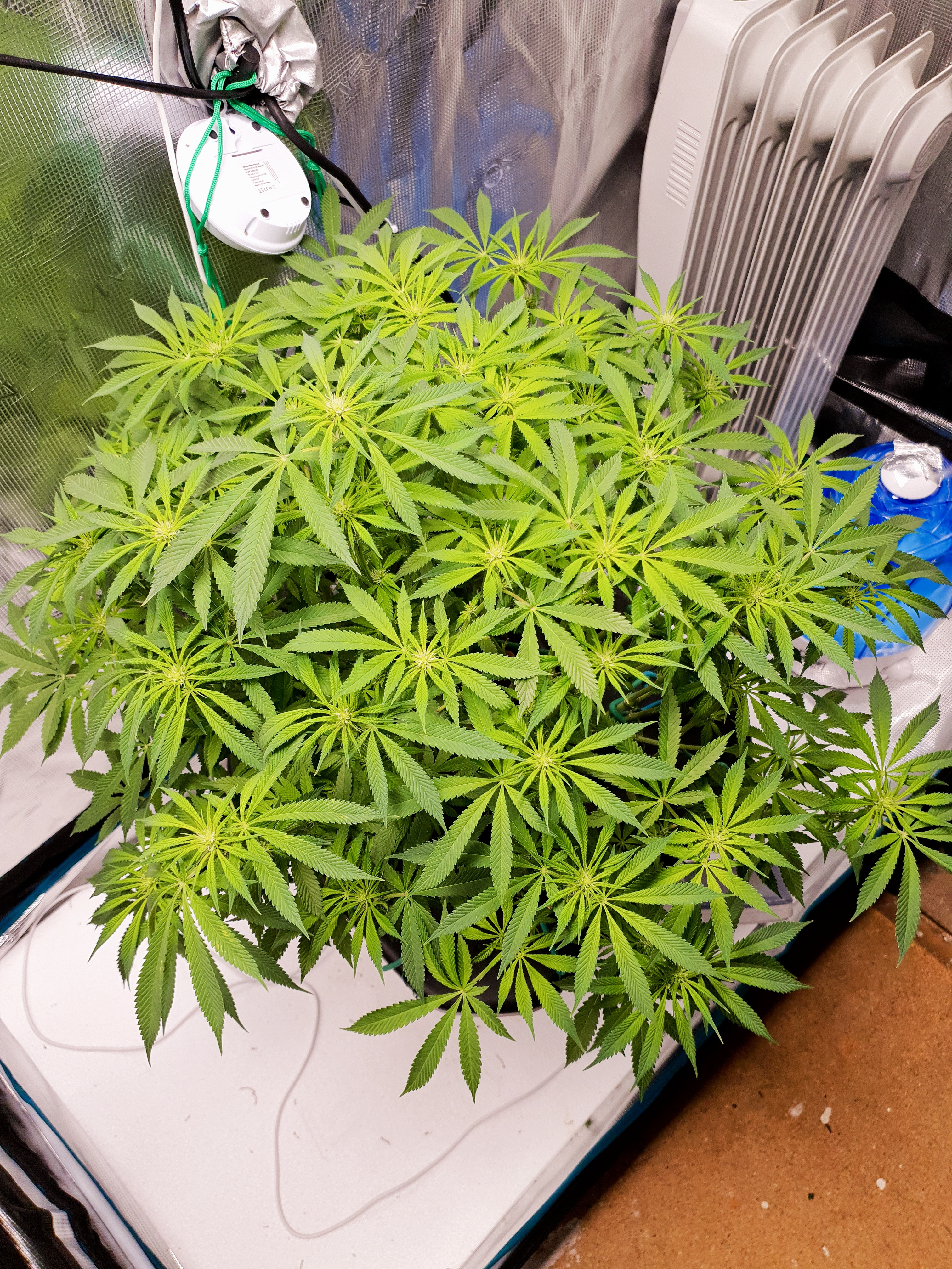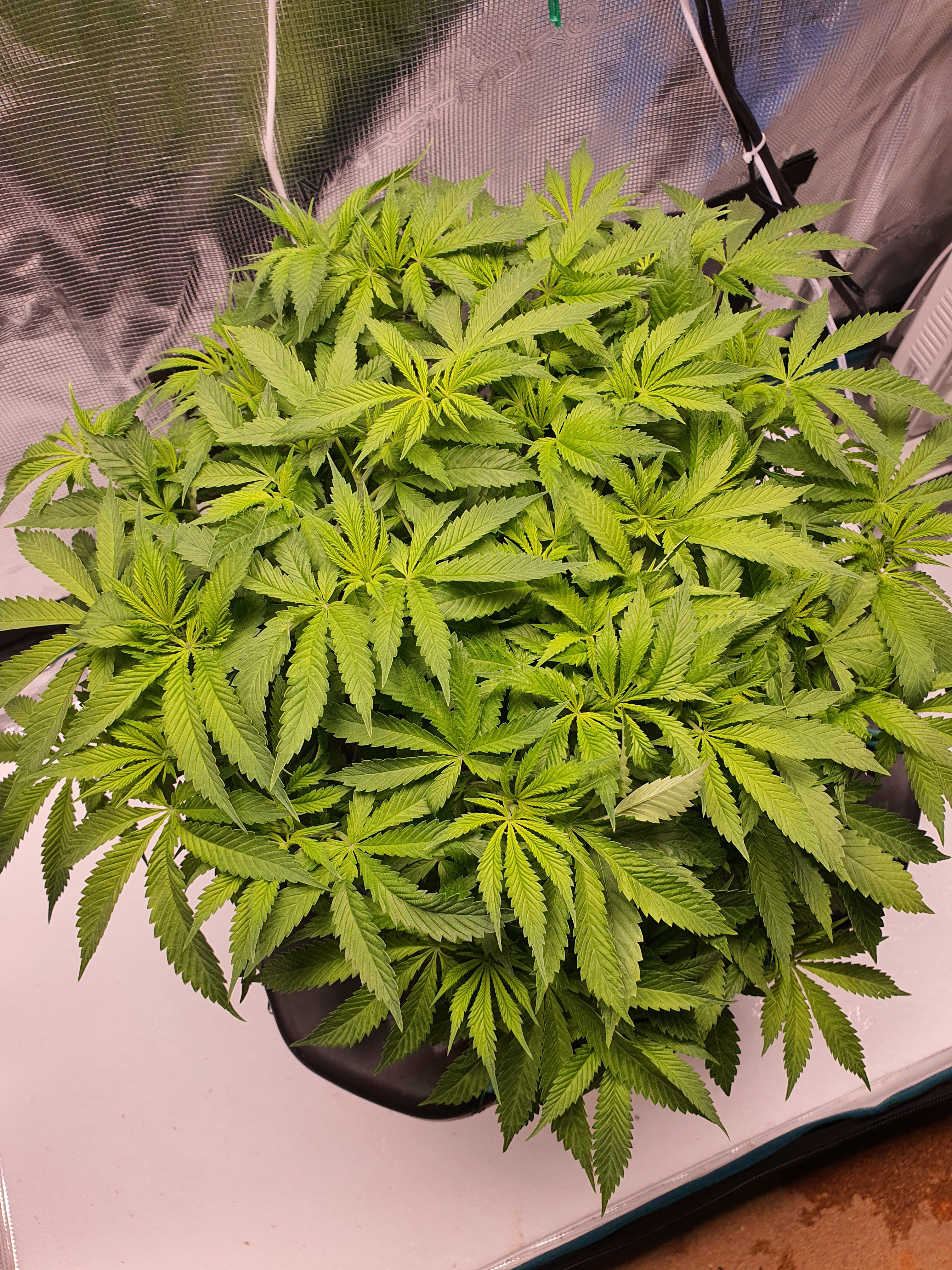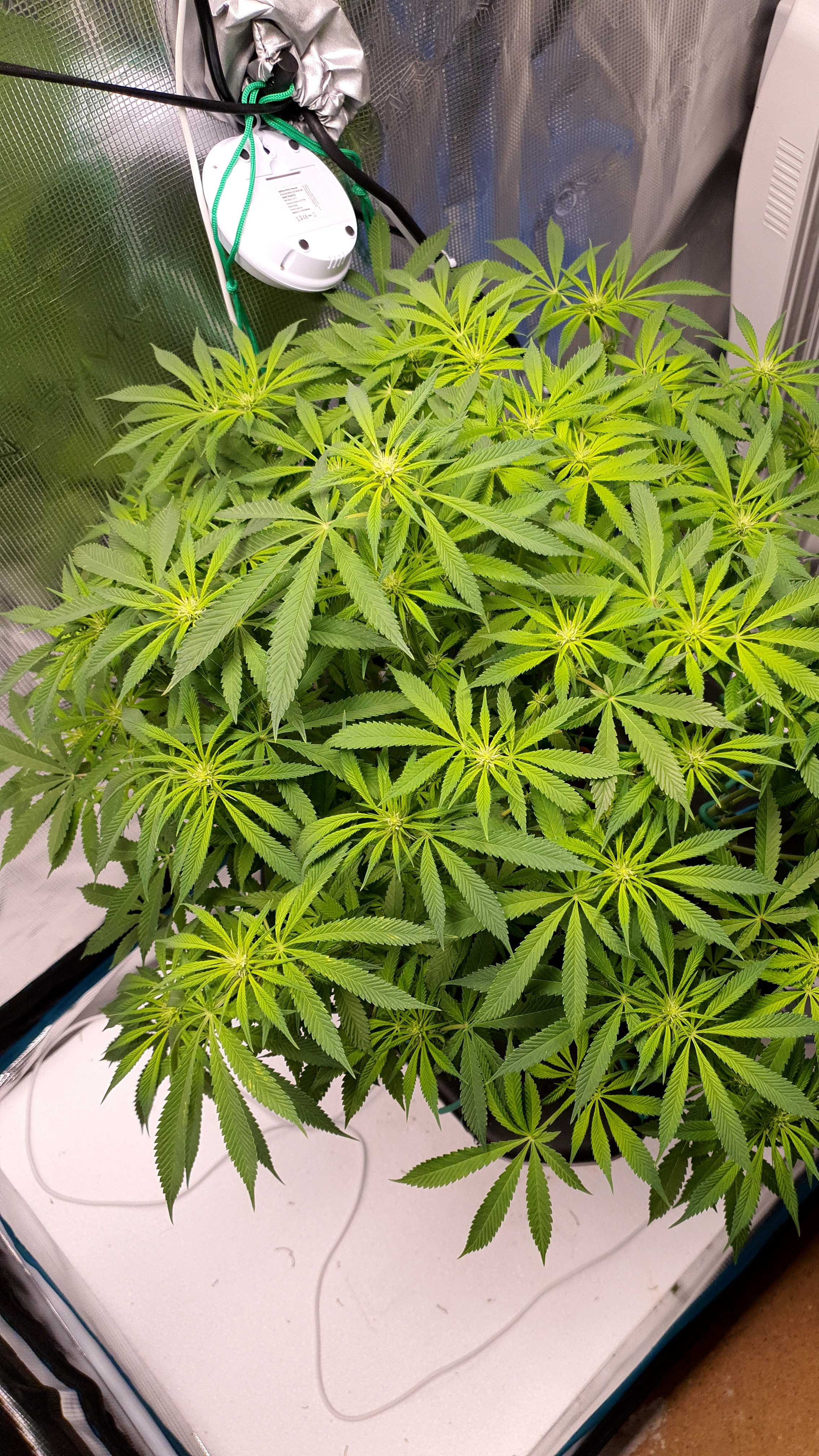 Thought I would give you a update after your last comment about VPD YYCannabis I went on a mission to find out what it actually is I found a chart and spent the next 3 days back and fore playing with my heater humidifier and fan so I wanted to show a new pic of how close I could get it with what I have but she is doing amazing don't really know that to do next its so thick and solid bushy do I do any pruning can't really train it much more maybe just let it go bigger or when do I flower anyway here's the pics guys thankyou for you help everything is appreciated πŸ™