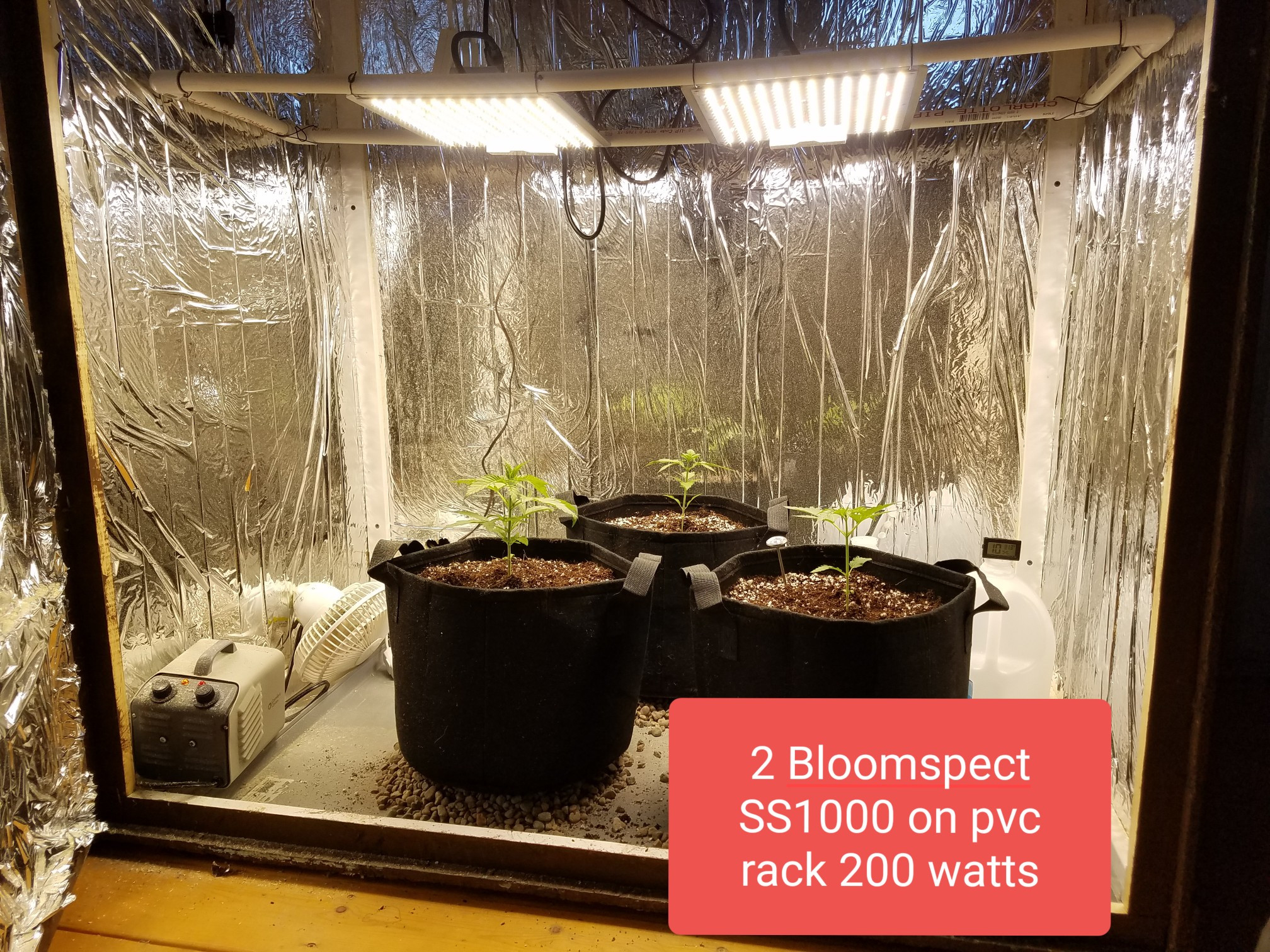 2. PD Grow 300WN 2 bulb 100w draw with ppfd @ 192 umol/m2 at 18" height. I can afford 2 at $49 each.