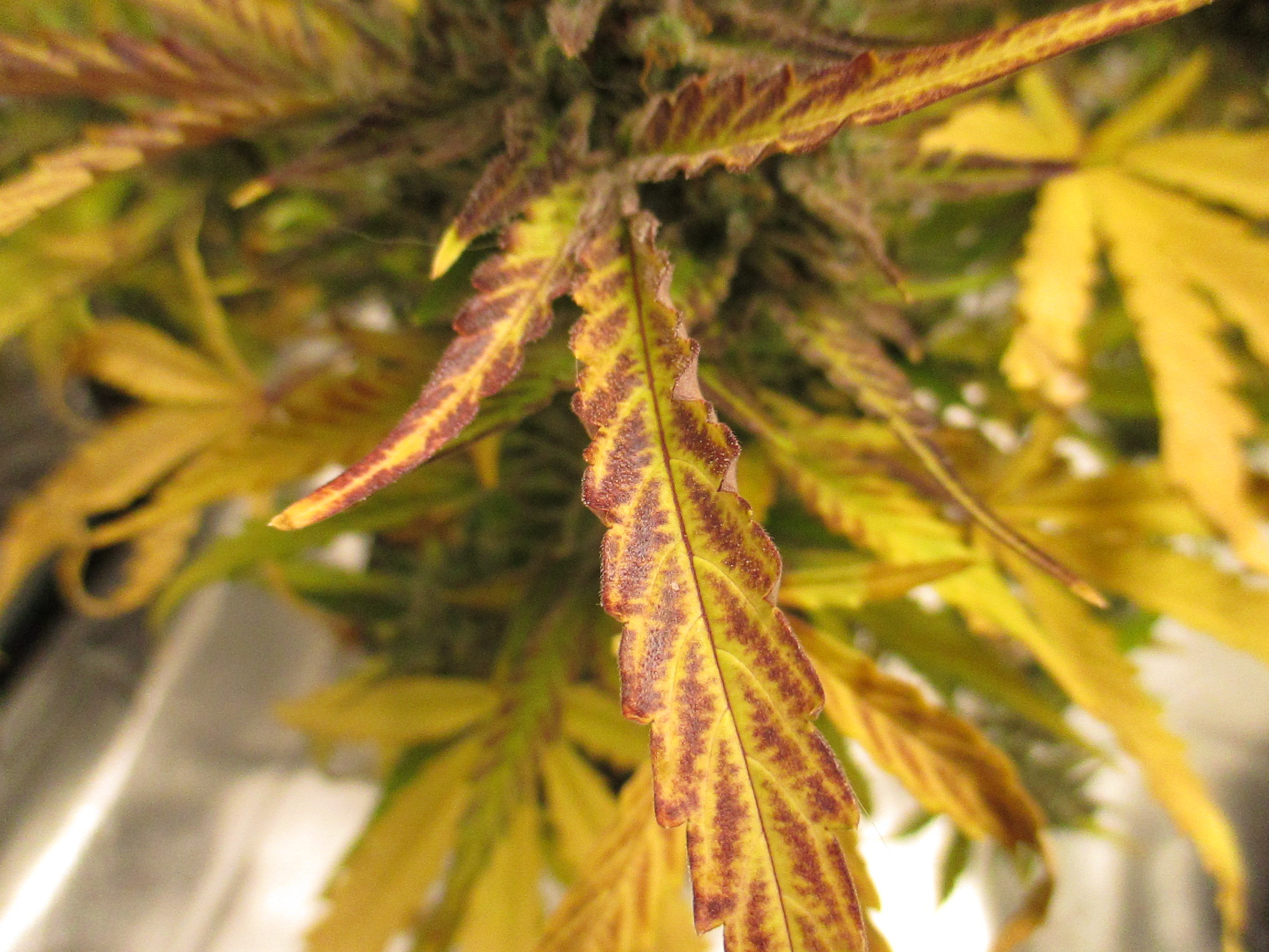Well it's just the learning of how these grow from seed to harvest. They love a drier warmer more than cool. It's bothersome to have a sick looking plants i know i've been there many times. I think you got root rot in that really yellow little one ( although she has really good looking bud structure) I'd just let that one go and dry out she's done it's what i would do. Long slow hang and cure. I like removing dead dying leaf would not hurt to do that to little one she'd look a heck of alot better to you. I would still be mighty happy with what you got there man