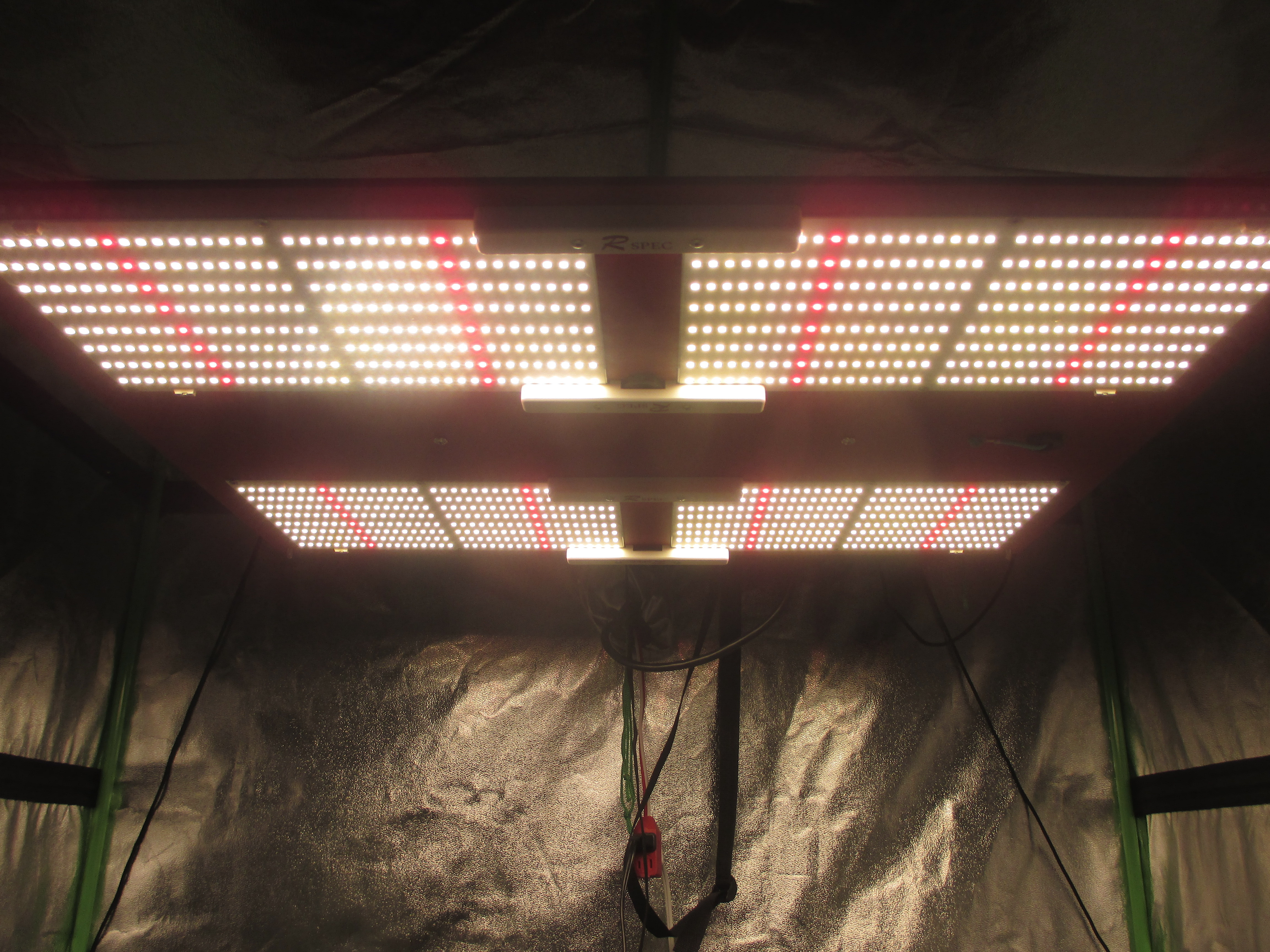 Then i put them under HLG 600 R Spec Commercial Indoor Horticulture LED grow light is designed to replace 1000watt HID. Each HLG 600 uses 4 of our custom designed full spectrum high efficiency white light quantum boards with Samsung LM301H and Deep Red 660nm LED's. This unit is dimmable, with wattage output from 60 to 600 watts.