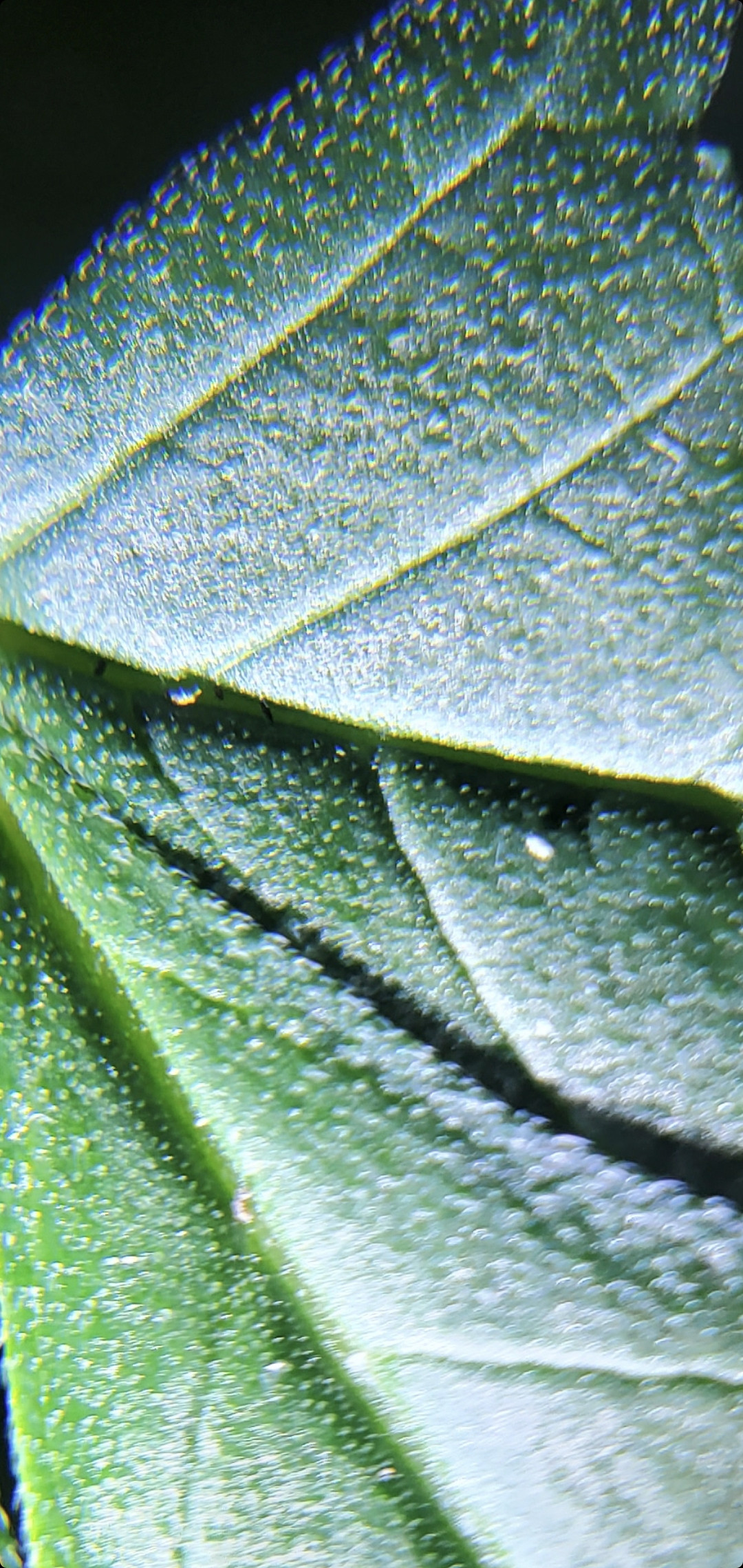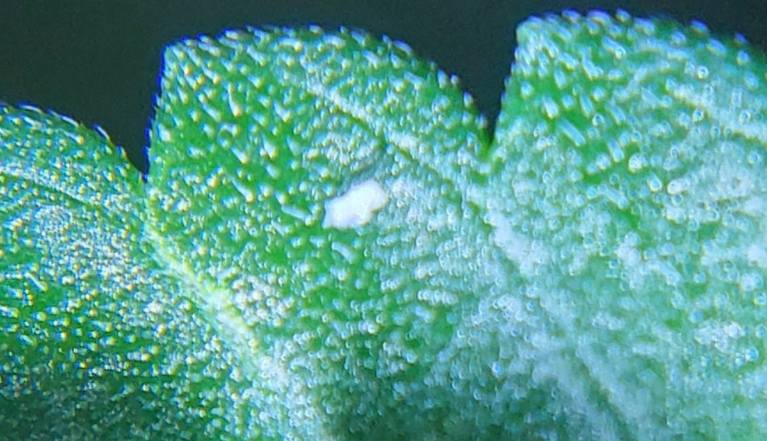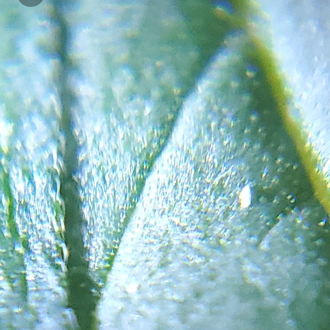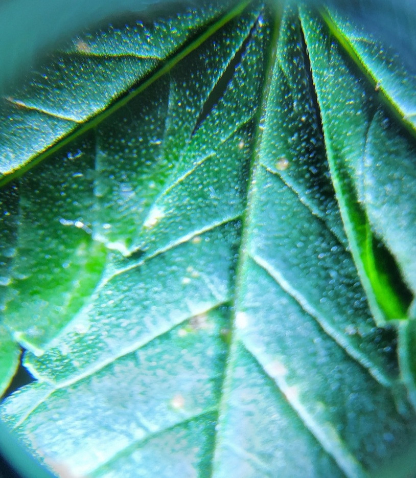 I typically use my jewelers scope to look at the Colas and Trichome but honestly never really the actual leaves until tonight. I was curious what a close-up view of the orange/brown spots on the leaves looked like but I kept seeing these little white specs on some of the leaves and wanted to get your opinion.