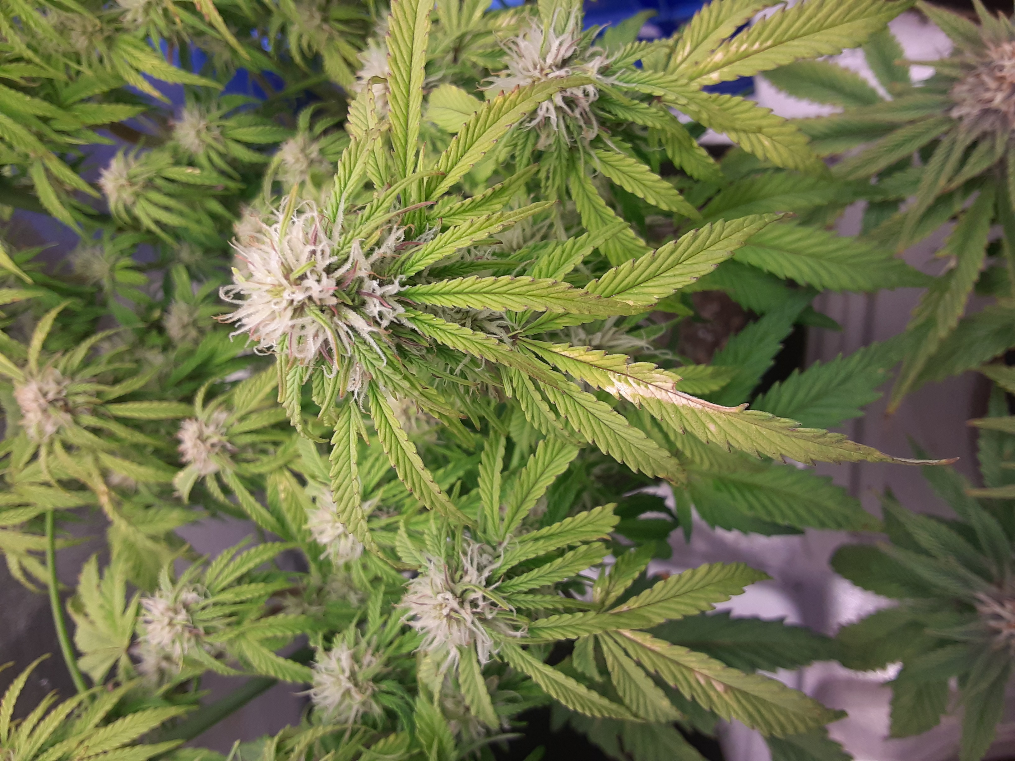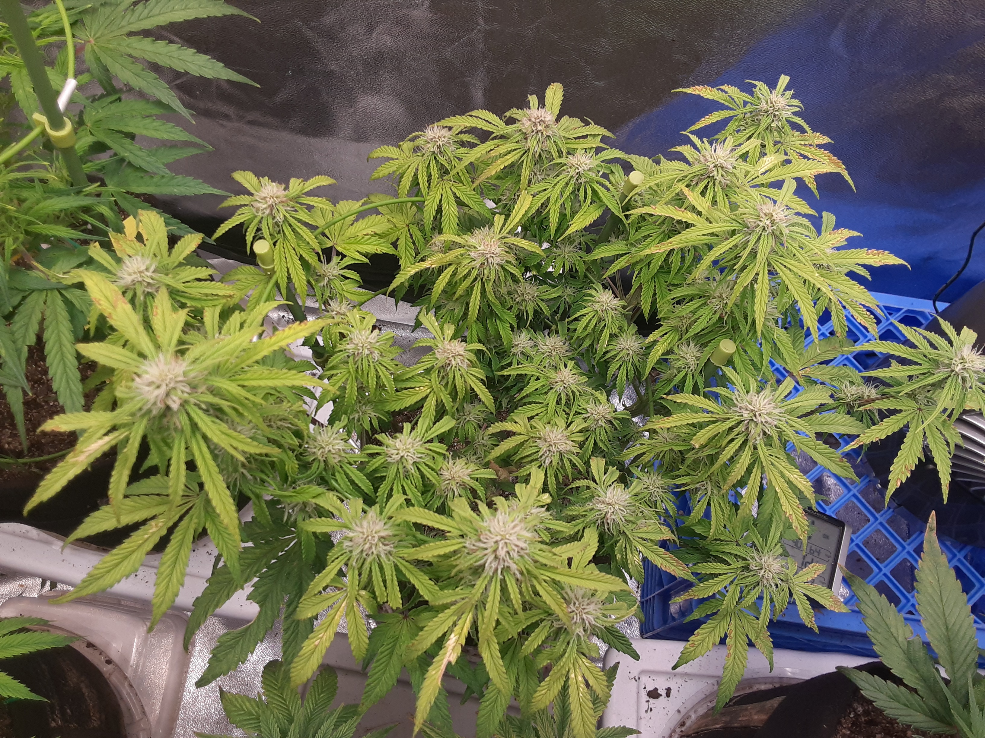 I don't think it slowed down at all the next morning the top two leaves were droopy but by the afternoon they were trying to hold up the light. I've topped the two in front middle and the one in the back rt corner. Just the one WC is showing preflower