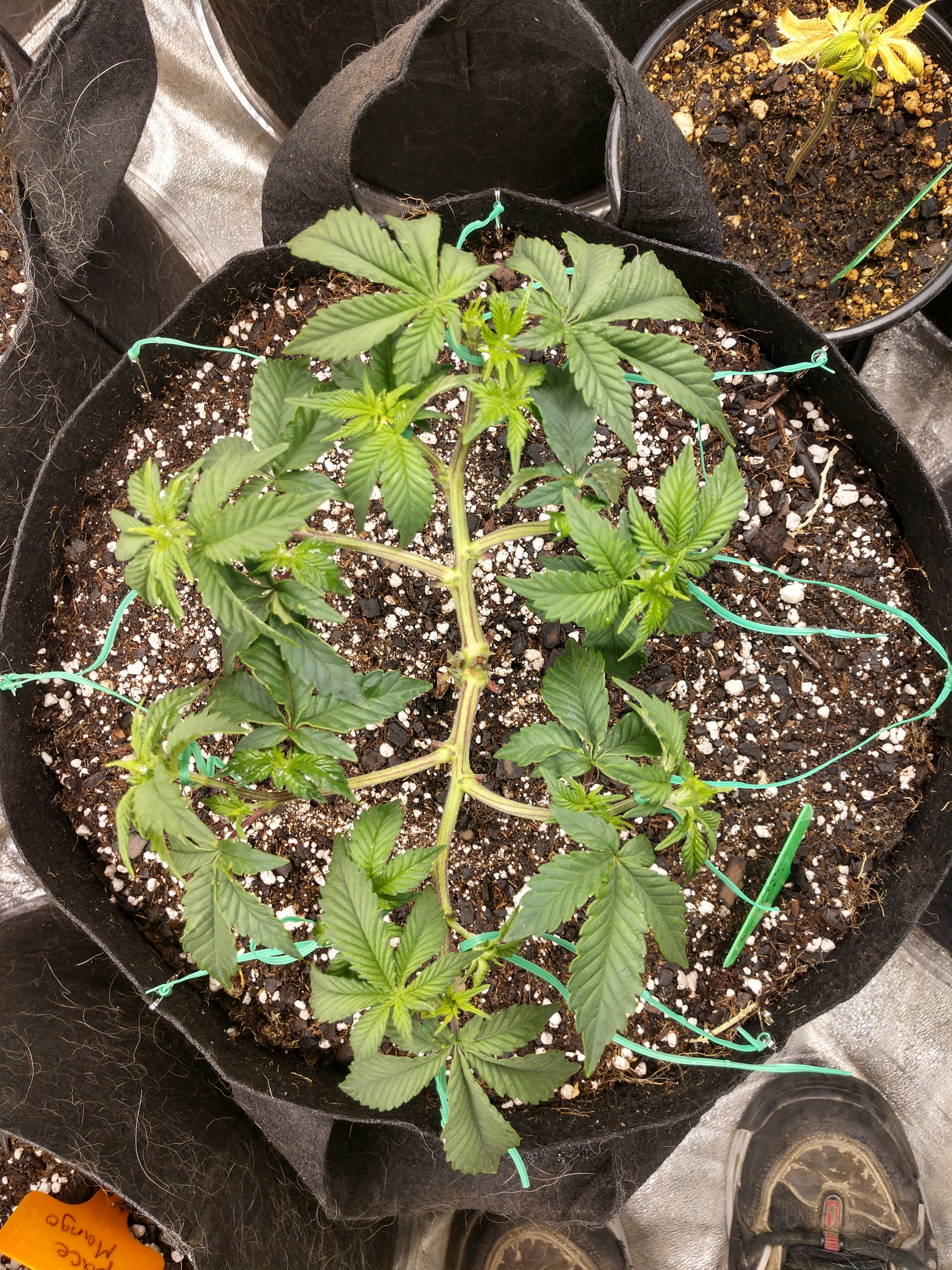 My original manifold is 12 tops per plant which I trained out to the edge and now growing upward. The lower or center bud sites I will trim selectively the ones that come into shadow. Switching next week at 11 weeks veg.