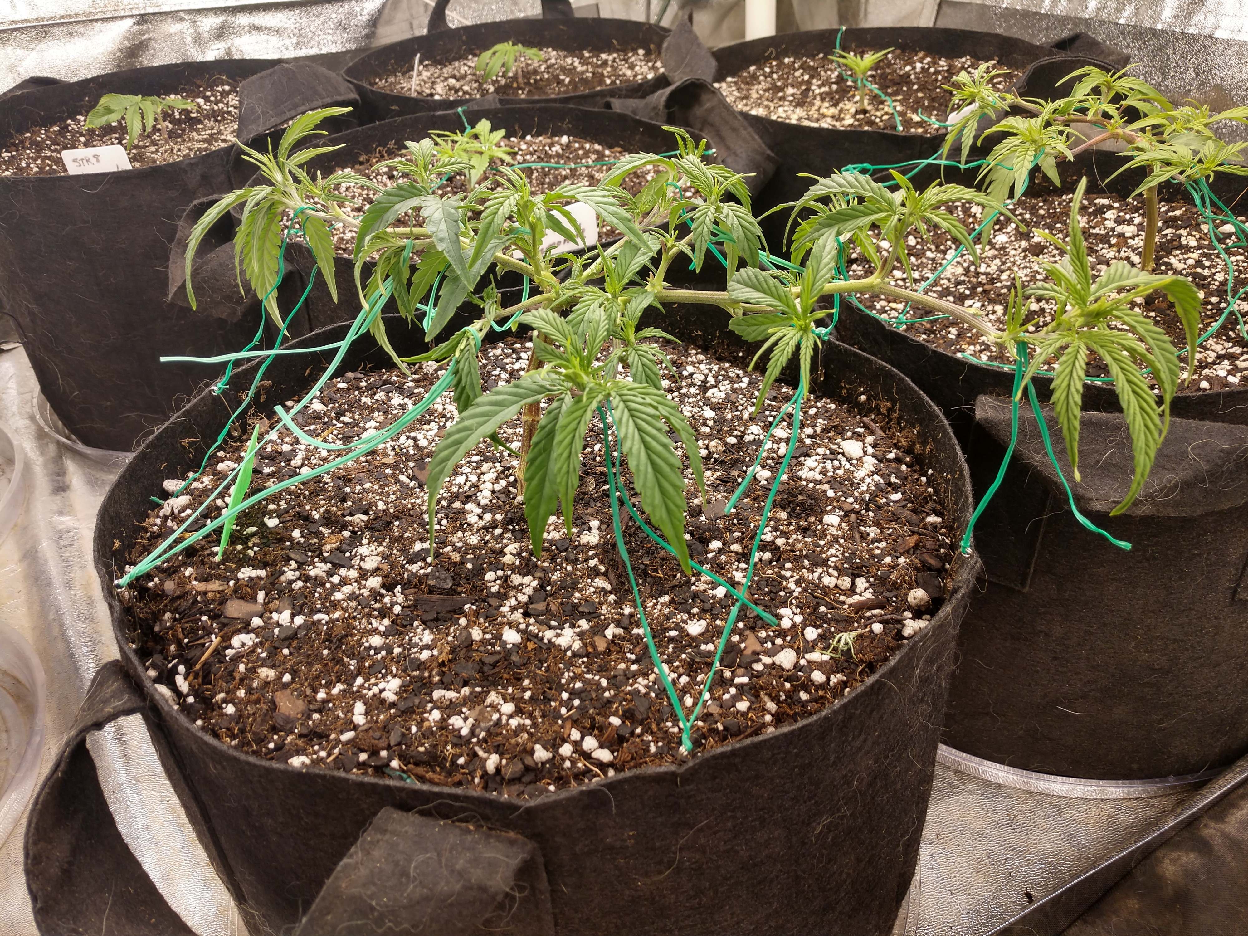 The one on the left I defoled more heavily to see what it would do. It is now growing a little slower than the other 2 so I'll just let them go for now and carefully remove fan leaves as needed to restrict shade.