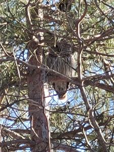 And finally, an owl in a tree near the house. I'm pretty sure he told me he was guarding my grow but maybe he didn't. He is a big guy. That's a crow above him. Just fucking with him. Because that's what they do.