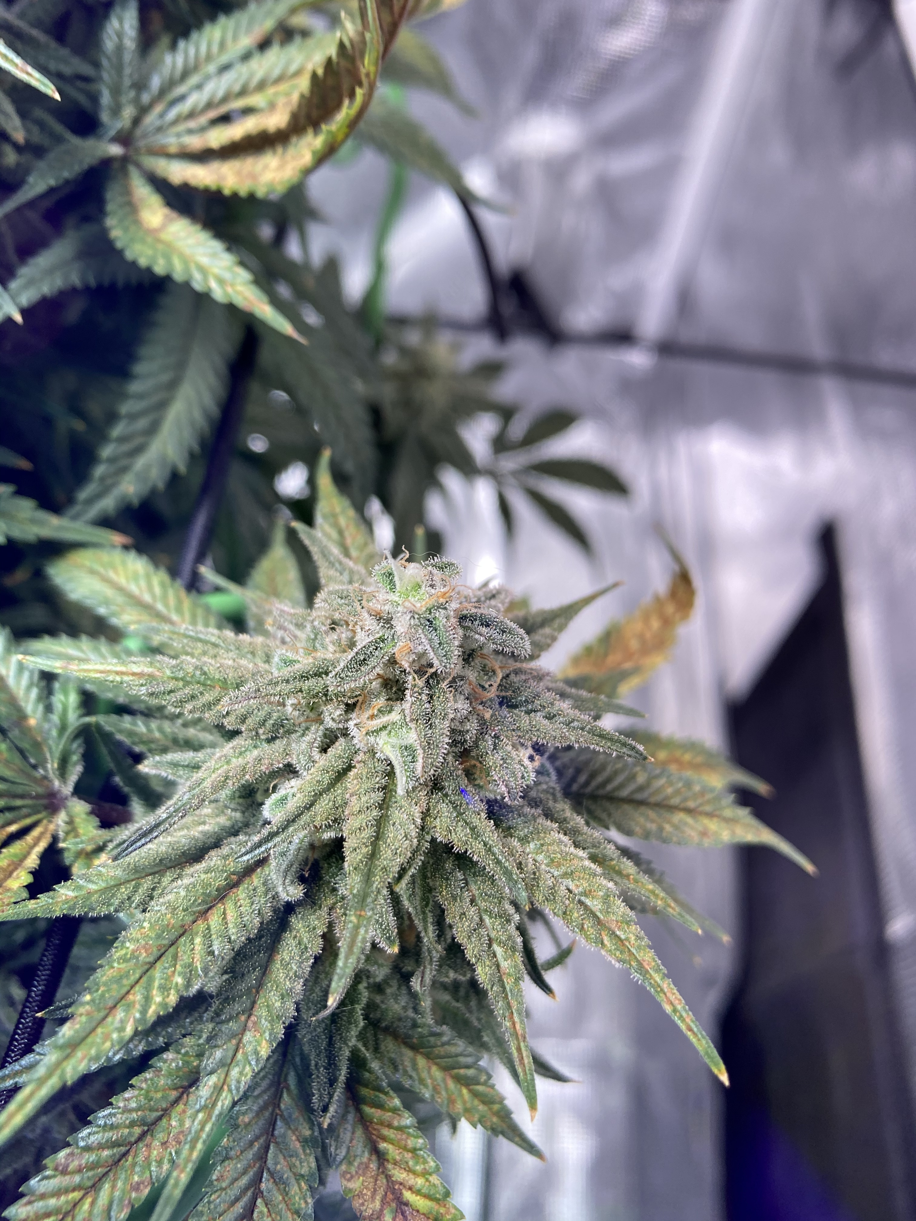 And, I am sorry for the quality of the close ups. The regular shots I can take though my color-correcting glasses, but the close ups need to be right up on the buds and I can’t get enough light in the tent to take good photos with the grow light off.