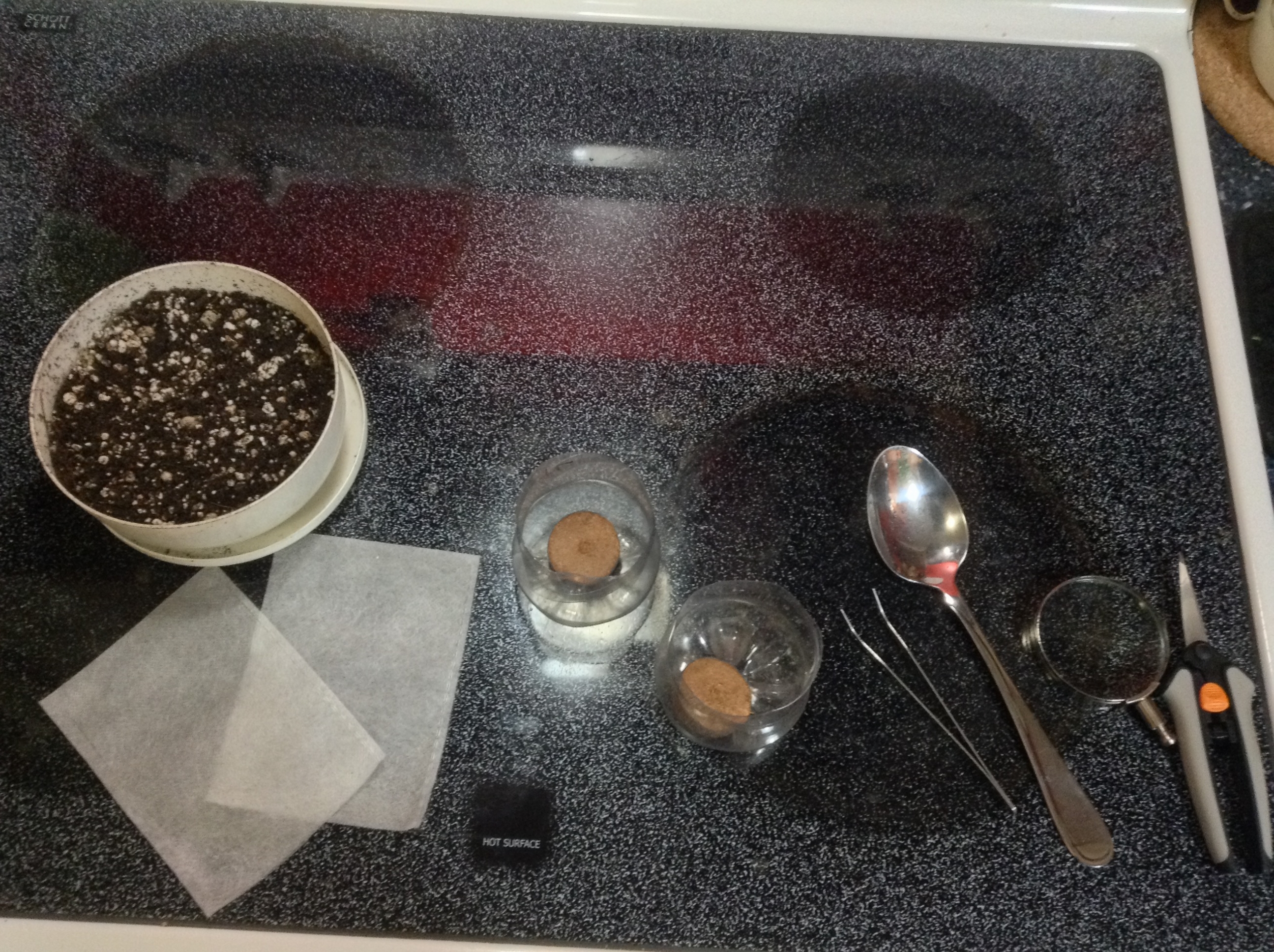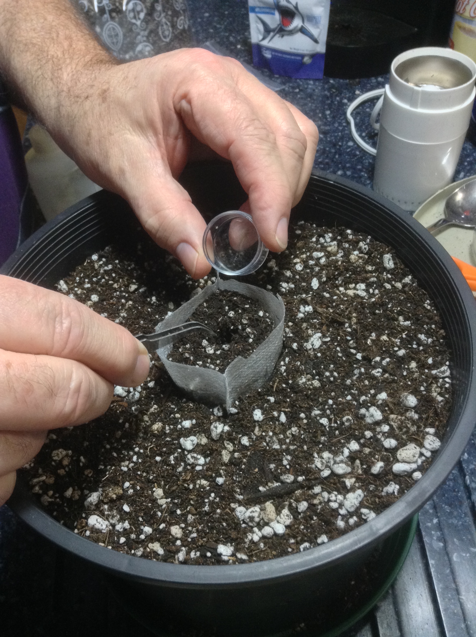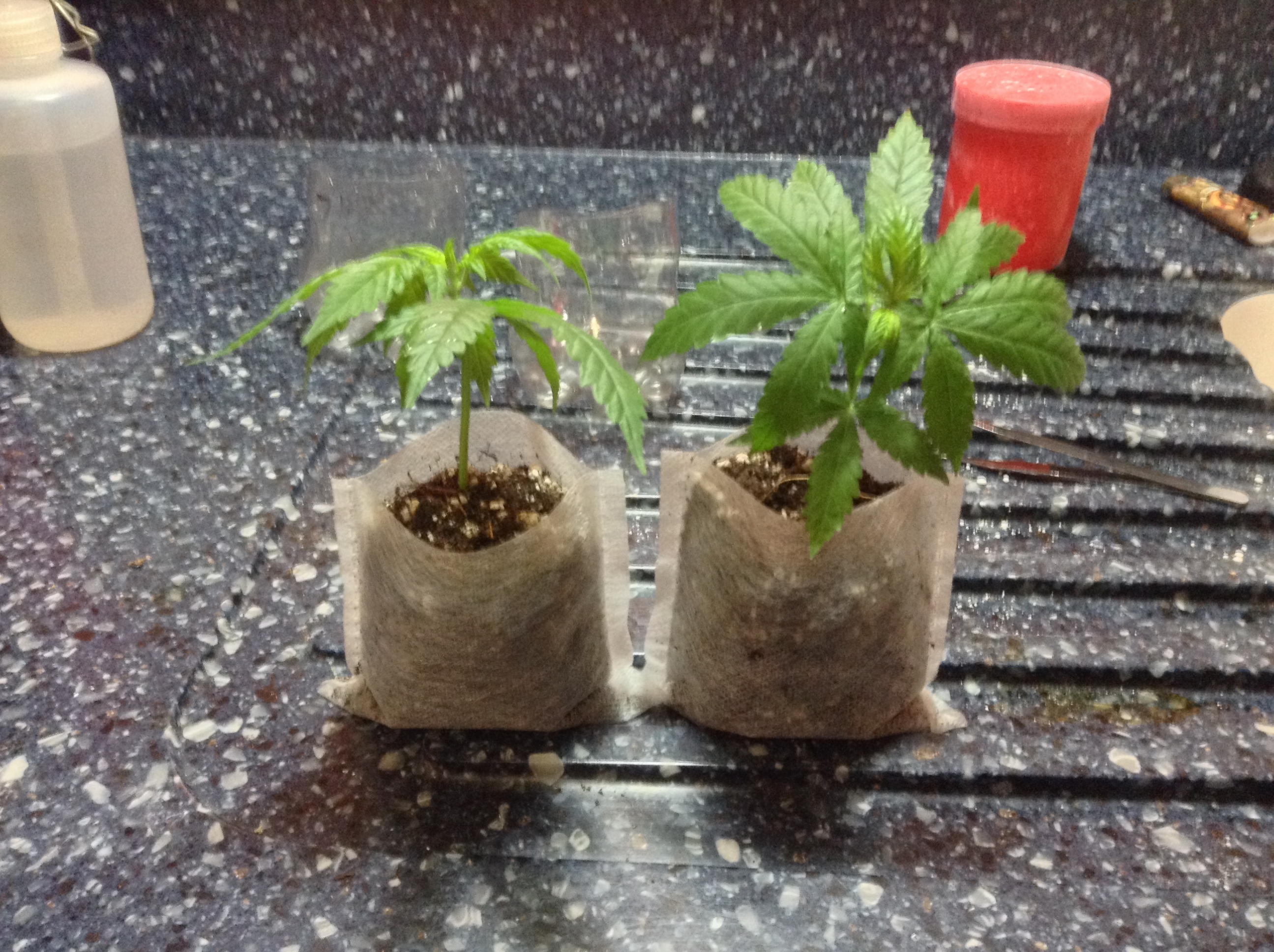 The two at the end were clones, which are place thru a peatpot with a little stem showing out the bottom before covering with soil.