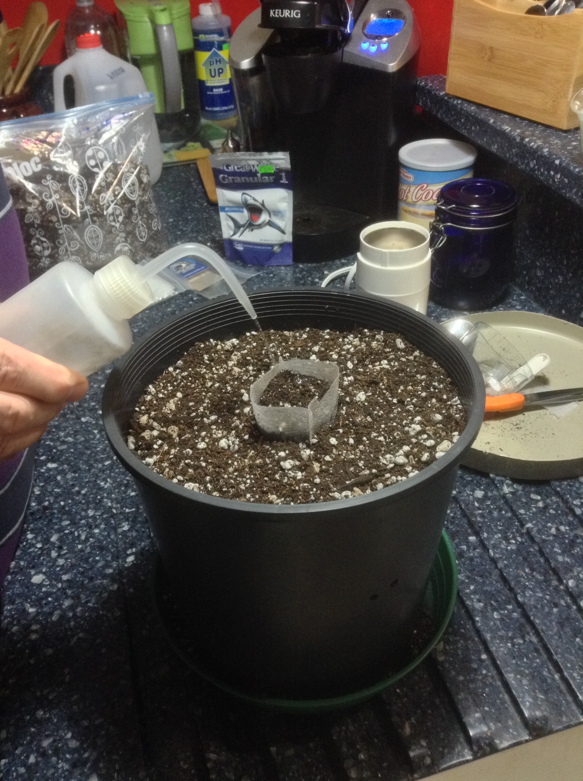 The biggest problem I had was watering a 3 gal pot to keep the seed moist or just watering around the planted seed, which dried out too fast.