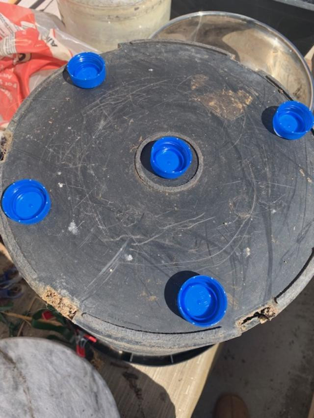 I give my plastics and glass to an elderly gentleman who comes around my neighborhood each week looking for recycling. He was telling me that centers don't recycle the plastic caps, so I've been throwing them in a container trying to figure out a use for them. Today I struck upon this idea of gluing them with a dab of silicone to the bottom of my potting containers. The surface of my grow balcony gets extremely hot in the full sun all day and I thought this might work to keep the temps down in my soil. I guess I'll find out soon enough.