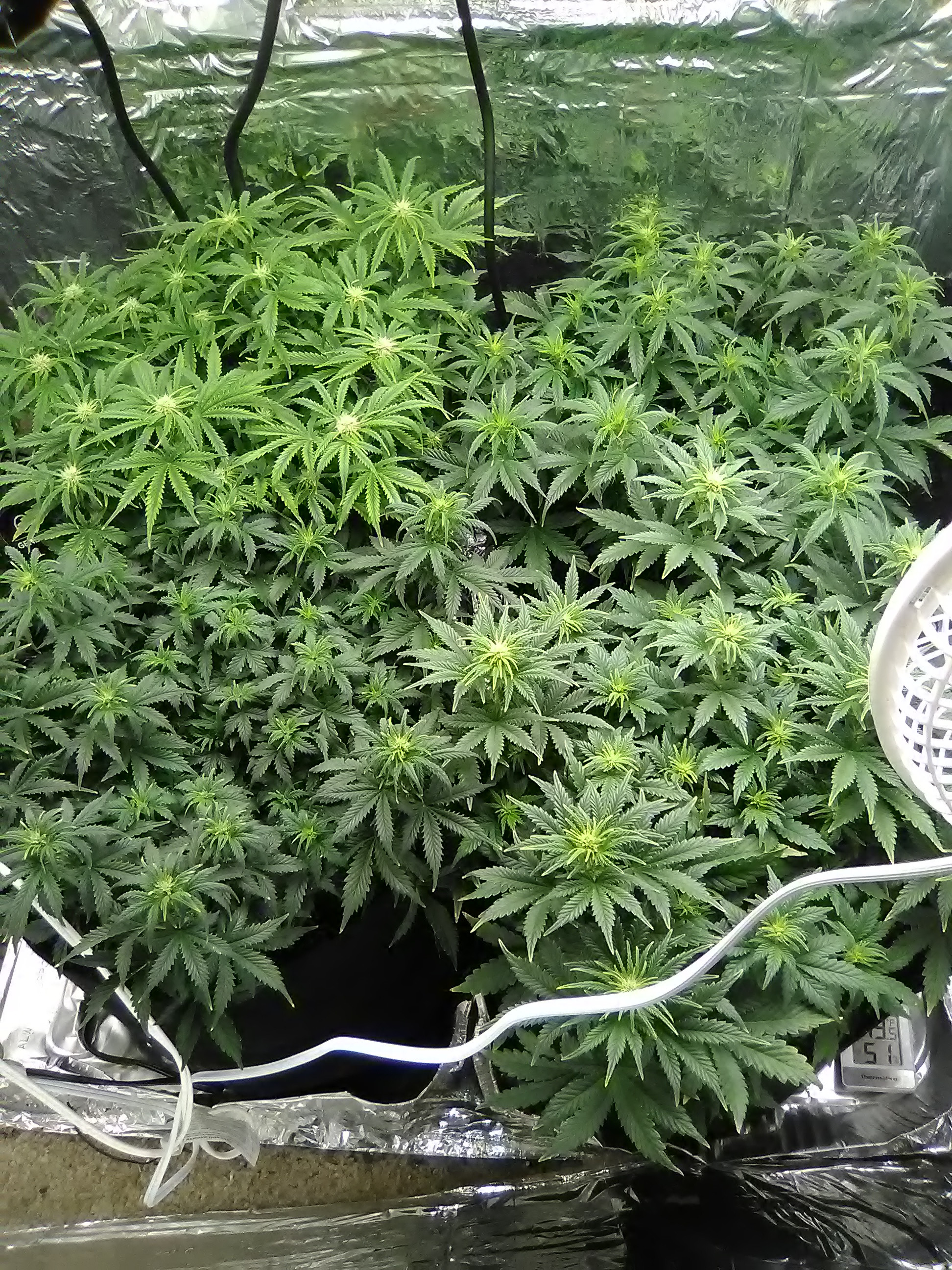 Well Happy Birthday Ladies! Let's admit it Dad, they aren't girls any longer. They are ladies now just ripe, ready and Willing! Don't allow any men near them! LMAO!! BEAUTIFUL! Seriously dhl, we must be very close to the same timeline. Mine sprouted Dec 13th so are just about where you look to be as they are photos. Yours look to be Autos? I did a lot of manifold, lst and defoliating since 3 weeks old so my middle is opened up for some lower sites to breath and get some good light. All 3 are so loaded with flower I am Awestruck really! Literally at least a hundred to two hundred on each one. I love it!