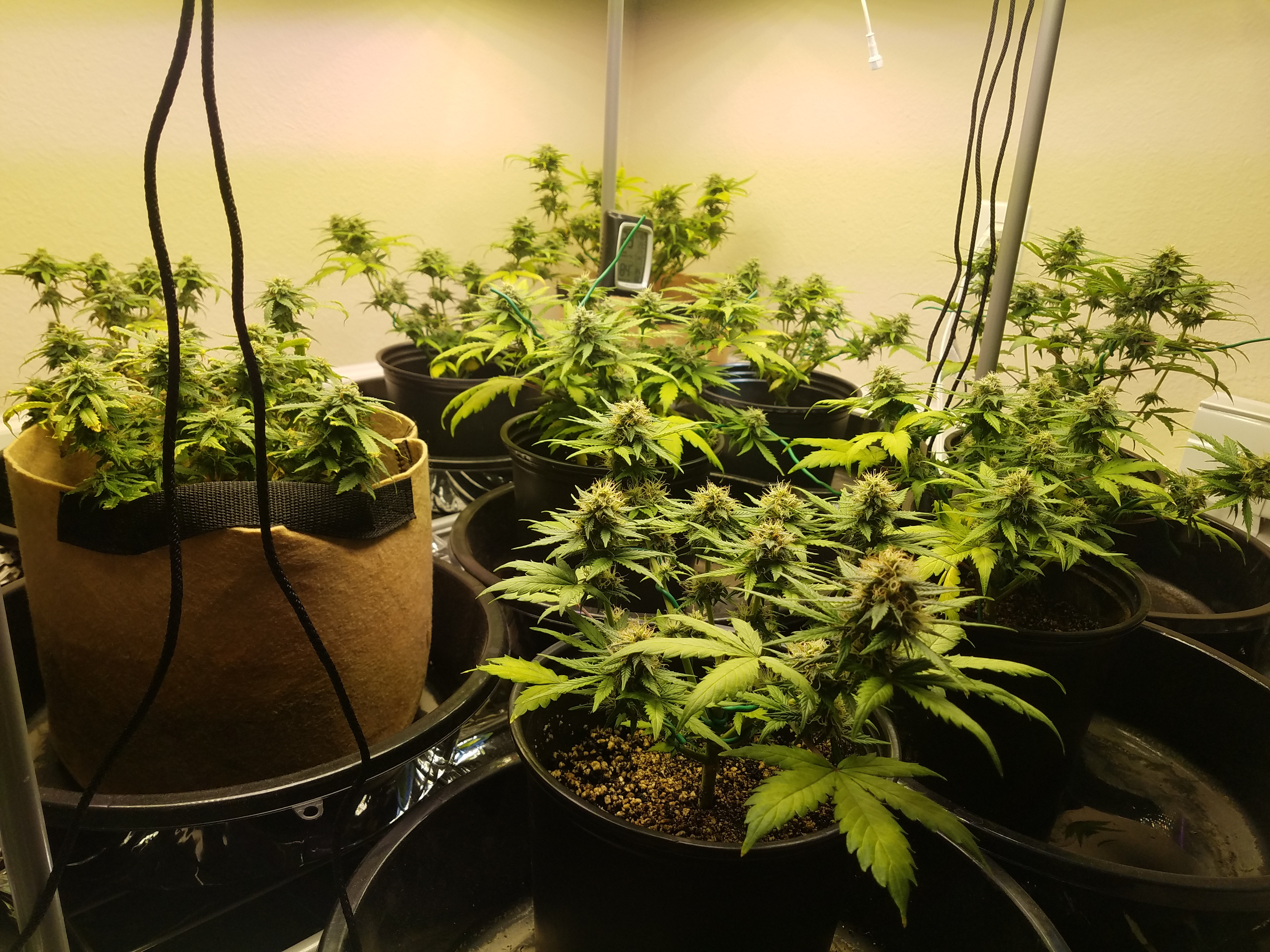 Now that I kinda understand autos.... I'm havin fun with this grow! Seems like I'm taking a few leaves every other day, just did the 1st HST on the 4 larger plants. The younger ones got their 2nd defoliation, they are a little behind the 4 at that age but I think they're still lookin pretty good!