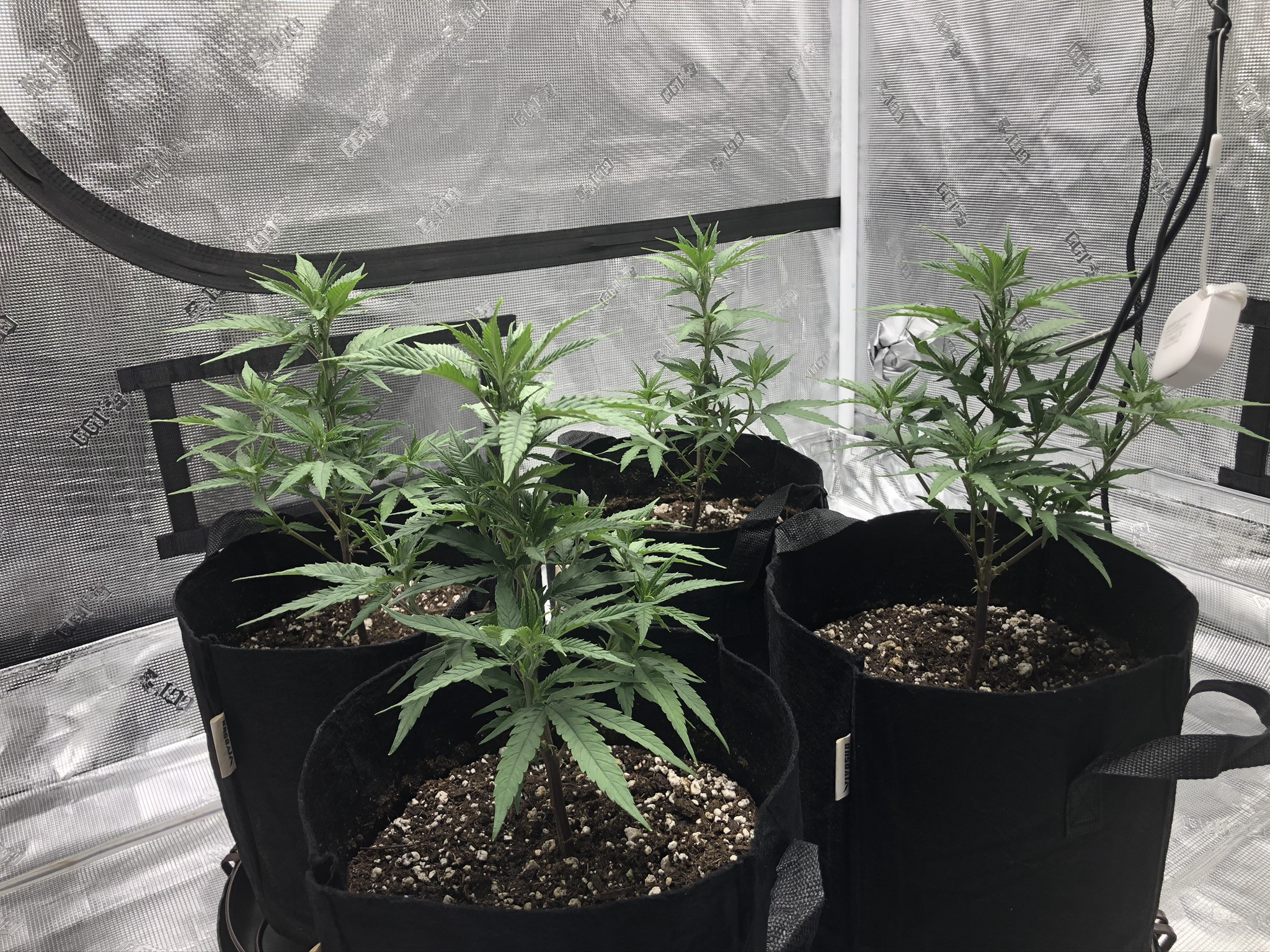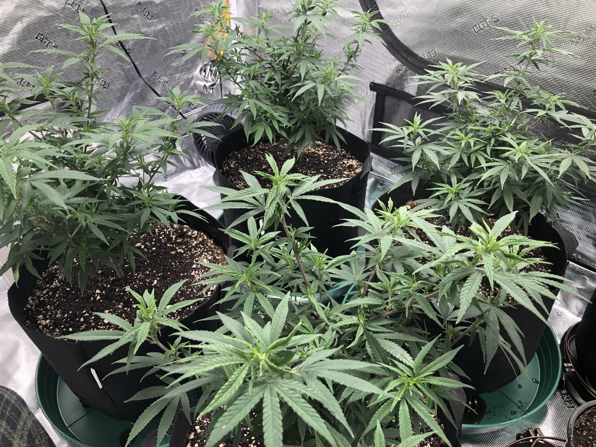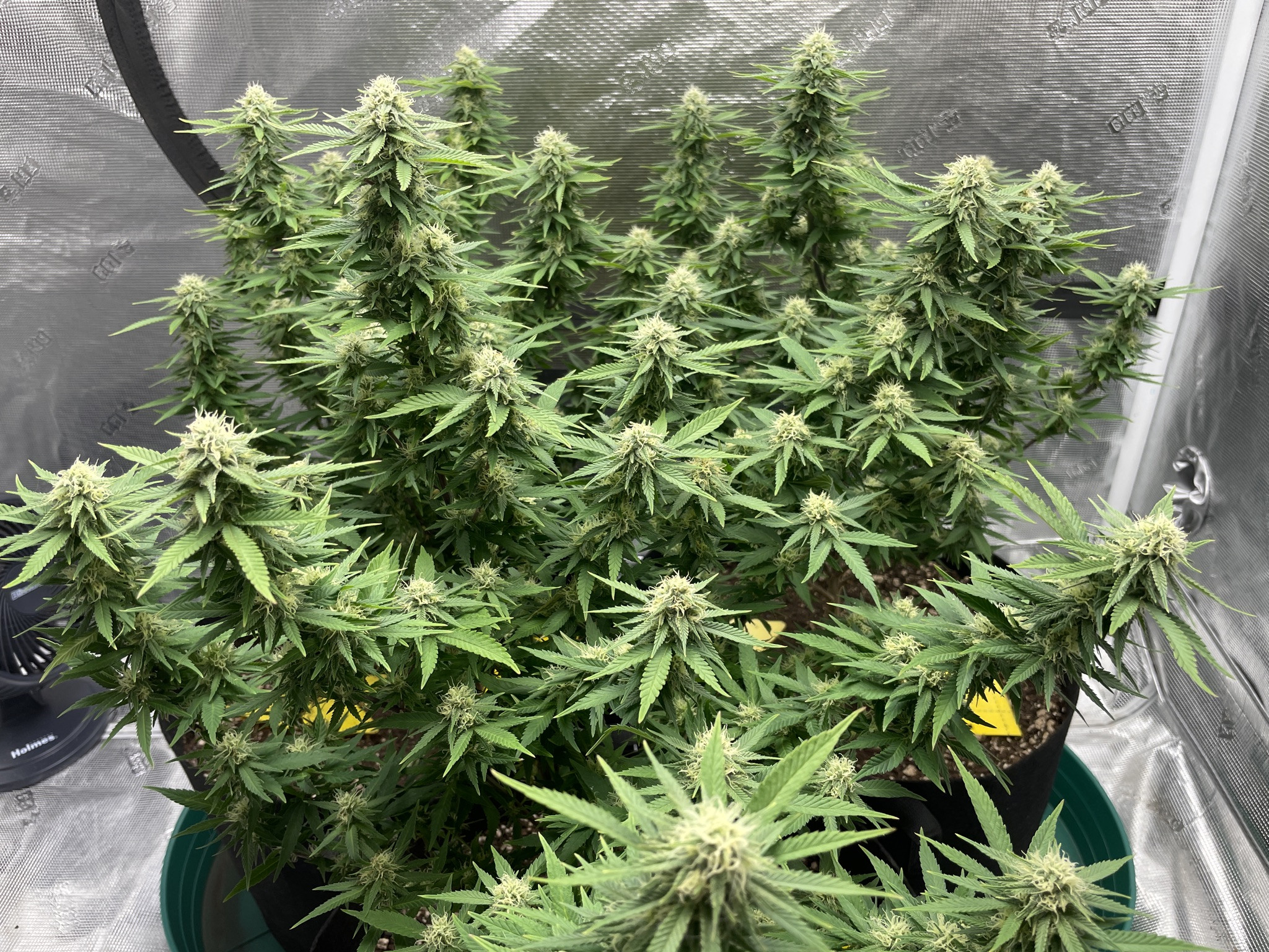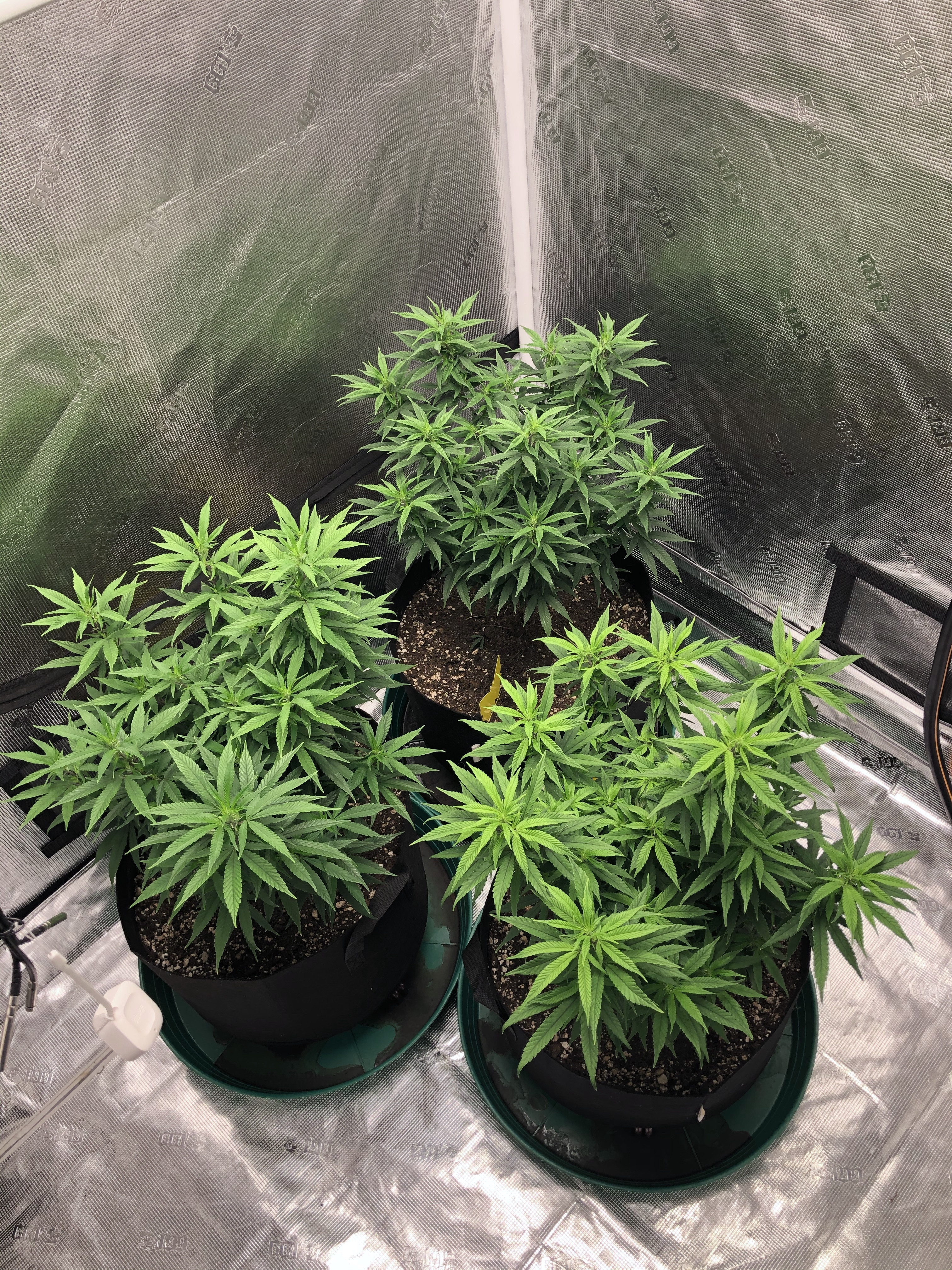 I followed NLS’s compost tea recipe using the living soil, unsulphured molasses and plus dry kelp extract. I used the tea early in veg whenever the plants looked like they needed a boost and at every watering at the end of veg (2-3 days) and flower (3-4 days). About two weeks into flower I switch to newly released NLS’s Girl Flower Power for tea watering and one top feeding. No other nutrients were used.