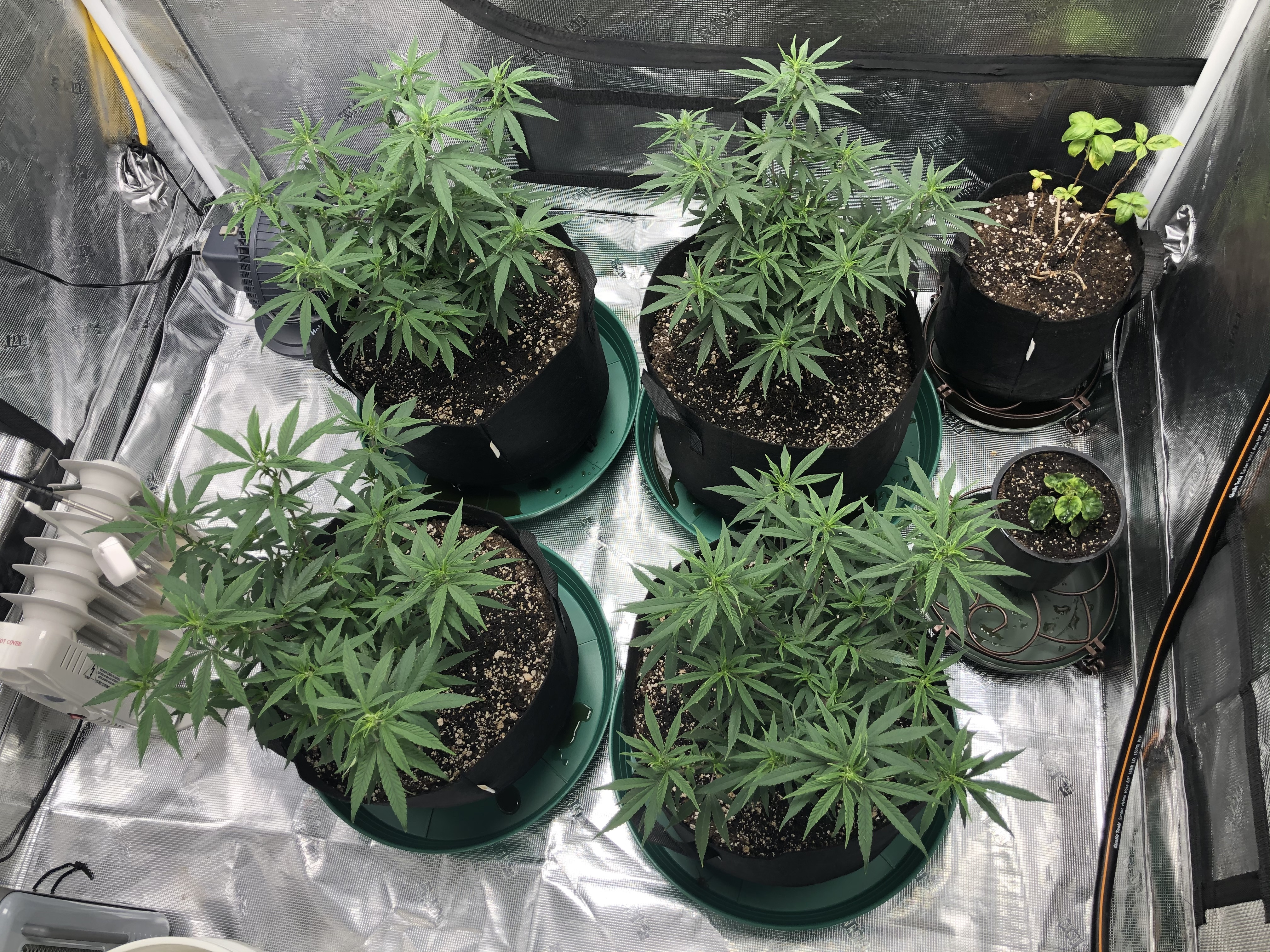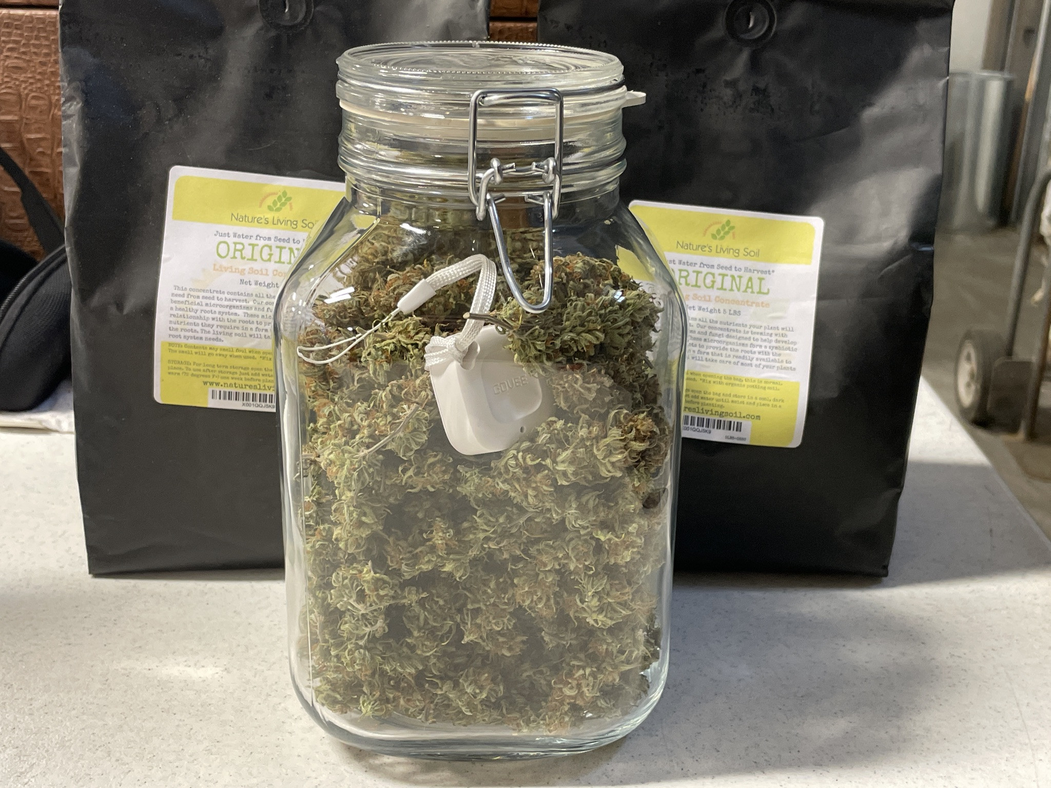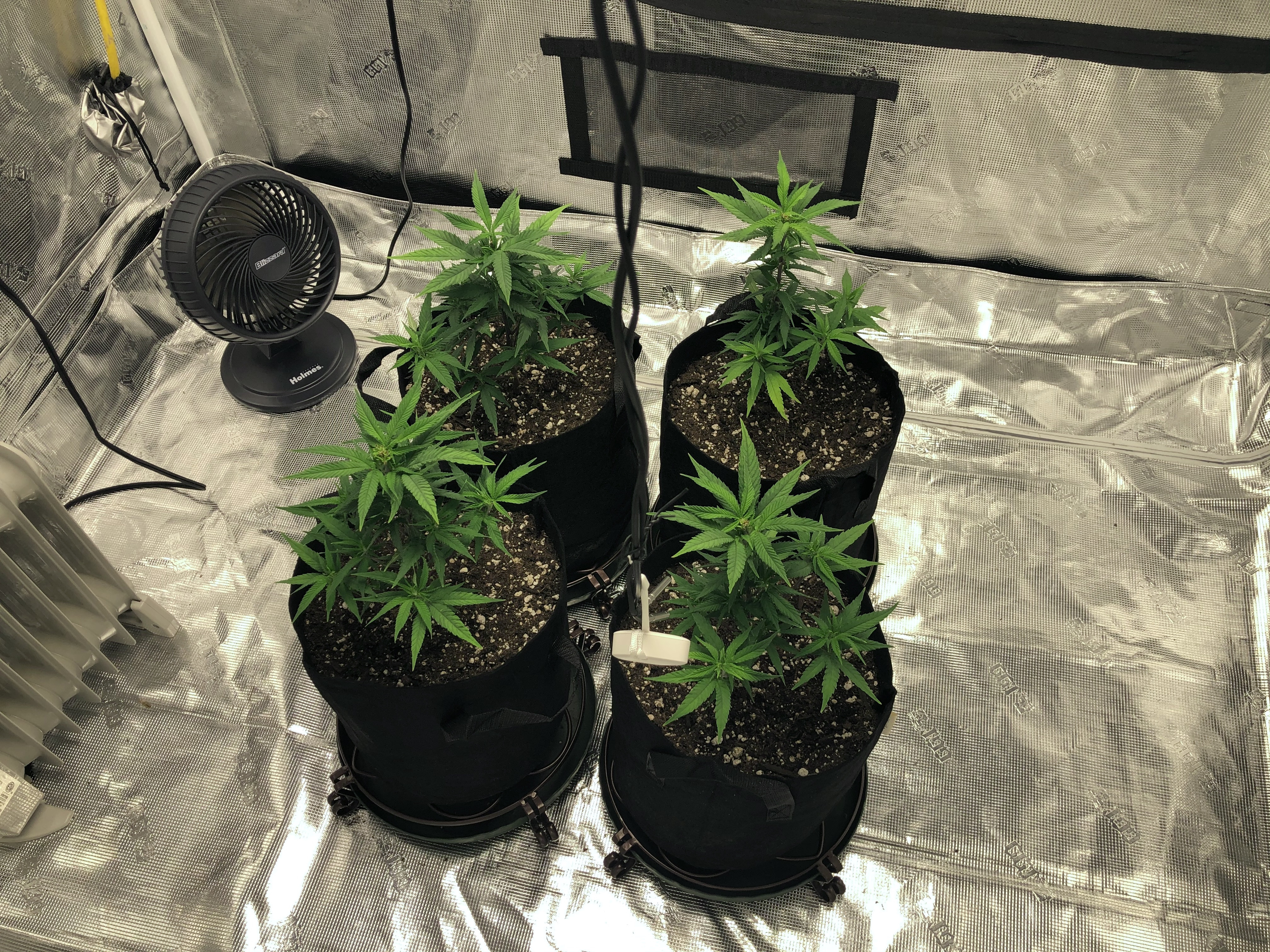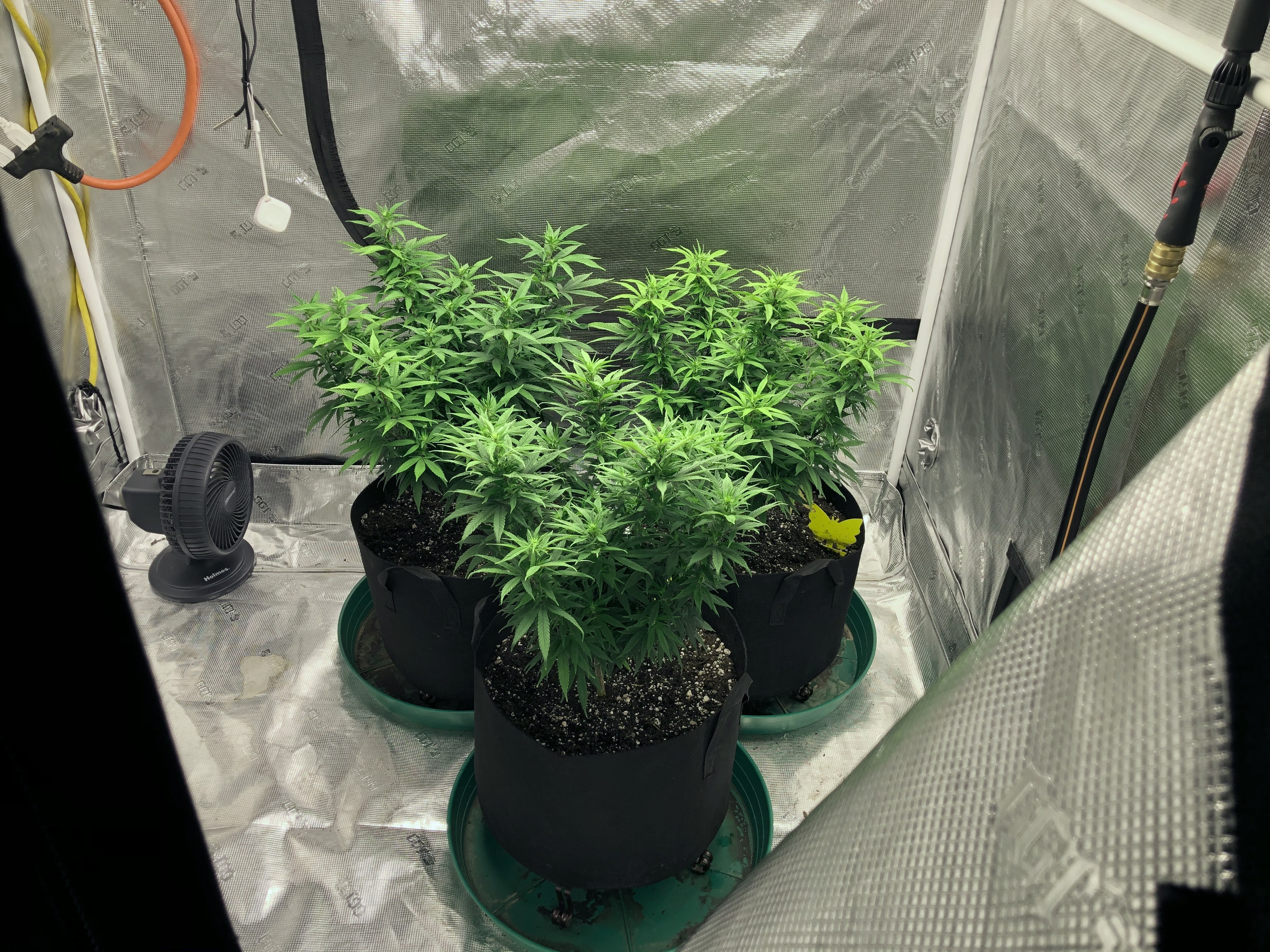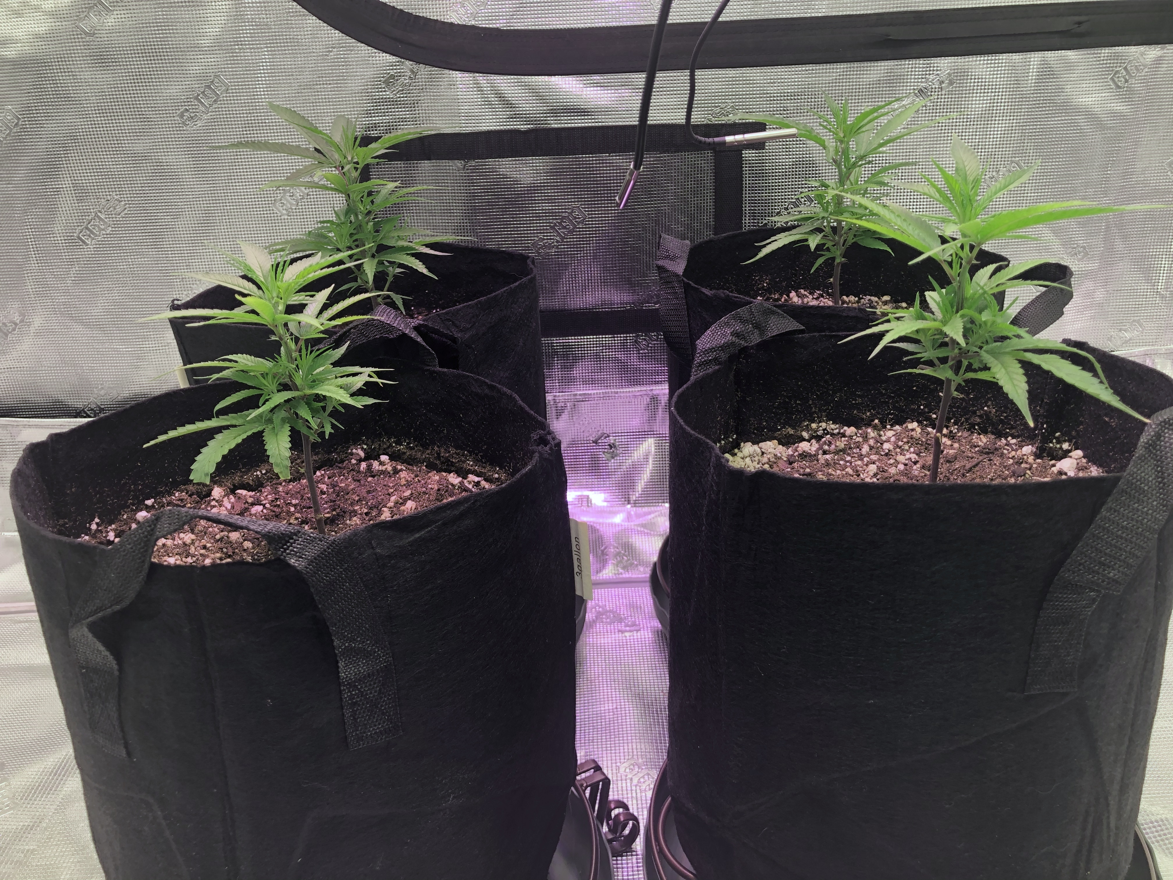 I followed NLS’s compost tea recipe using the living soil, unsulphured molasses and plus dry kelp extract. I used the tea early in veg whenever the plants looked like they needed a boost and at every watering at the end of veg (2-3 days) and flower (3-4 days). About two weeks into flower I switch to newly released NLS’s Girl Flower Power for tea watering and one top feeding. No other nutrients were used.
