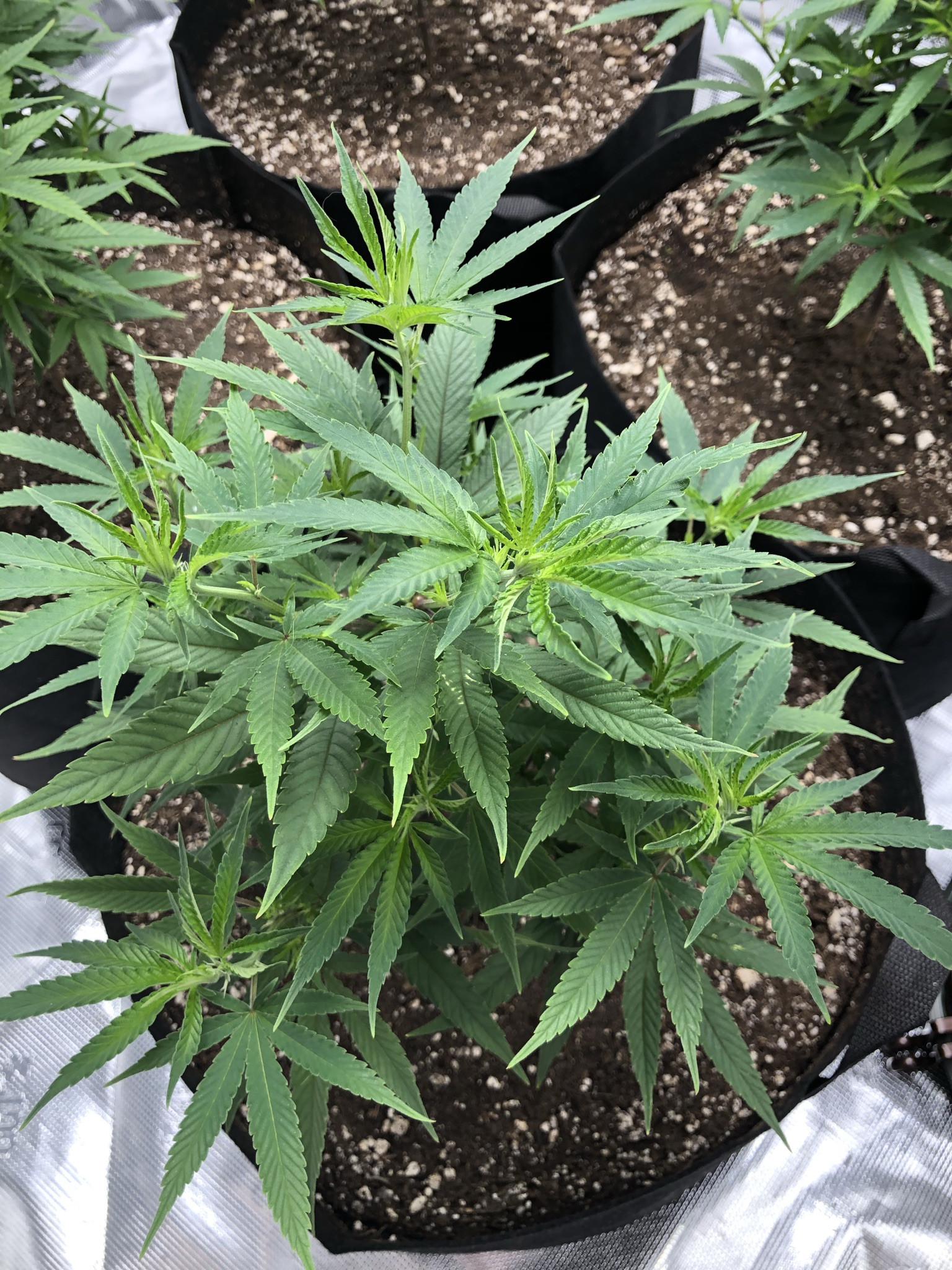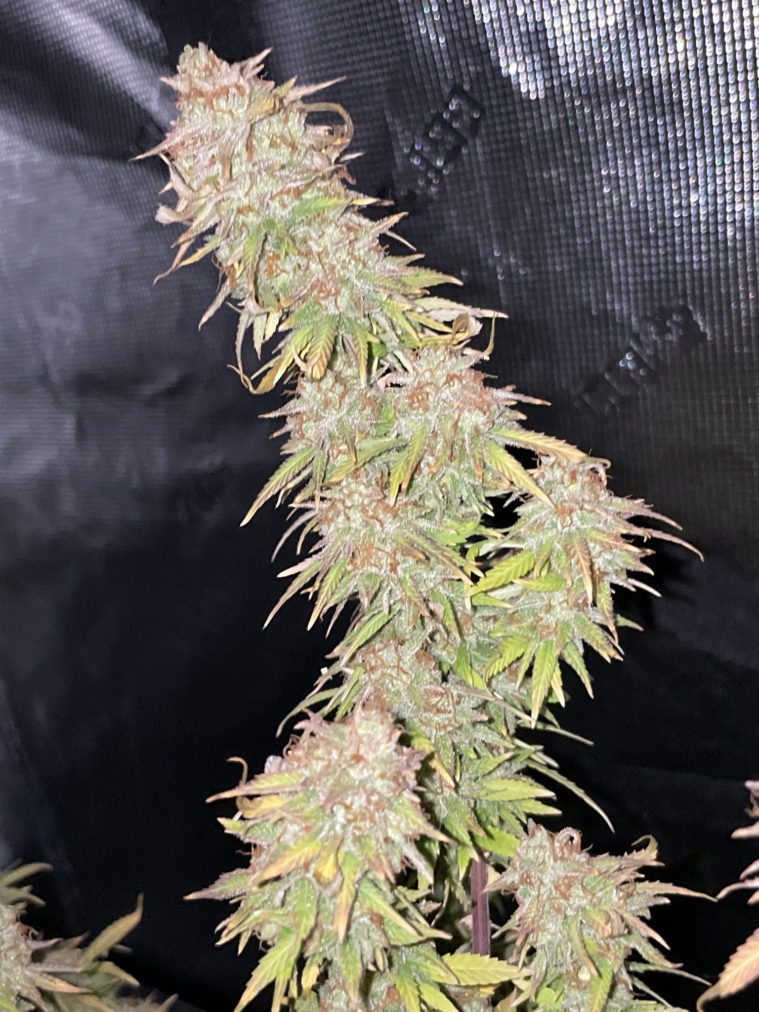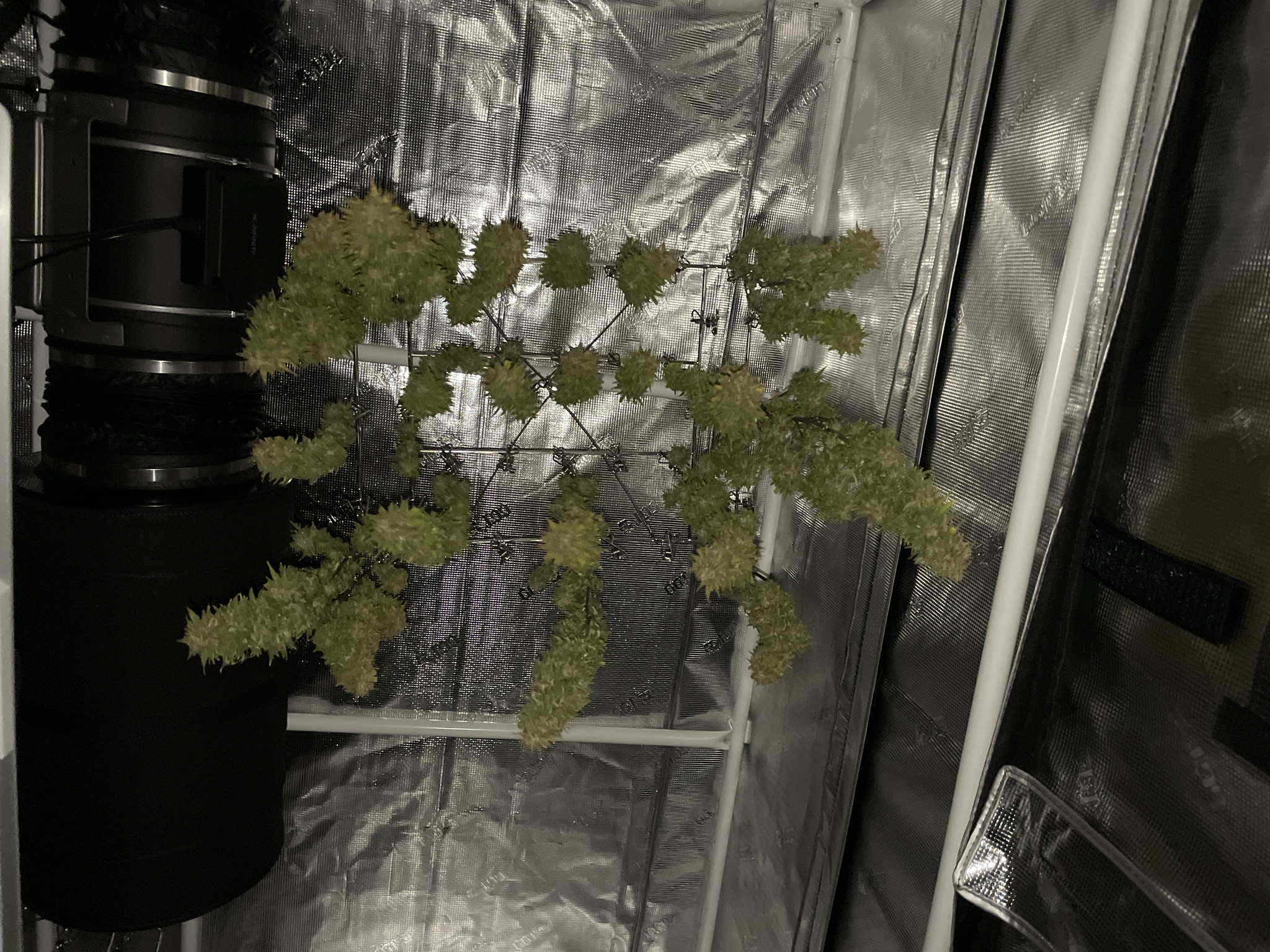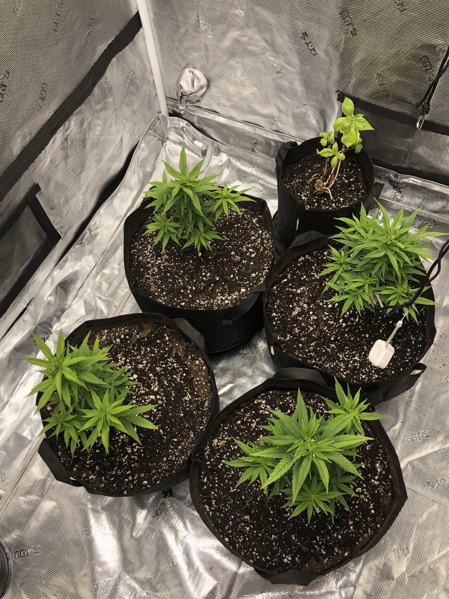 I followed NLS’s compost tea recipe using the living soil, unsulphured molasses and plus dry kelp extract. I used the tea early in veg whenever the plants looked like they needed a boost and at every watering at the end of veg (2-3 days) and flower (3-4 days). About two weeks into flower I switch to newly released NLS’s Girl Flower Power for tea watering and one top feeding. No other nutrients were used.