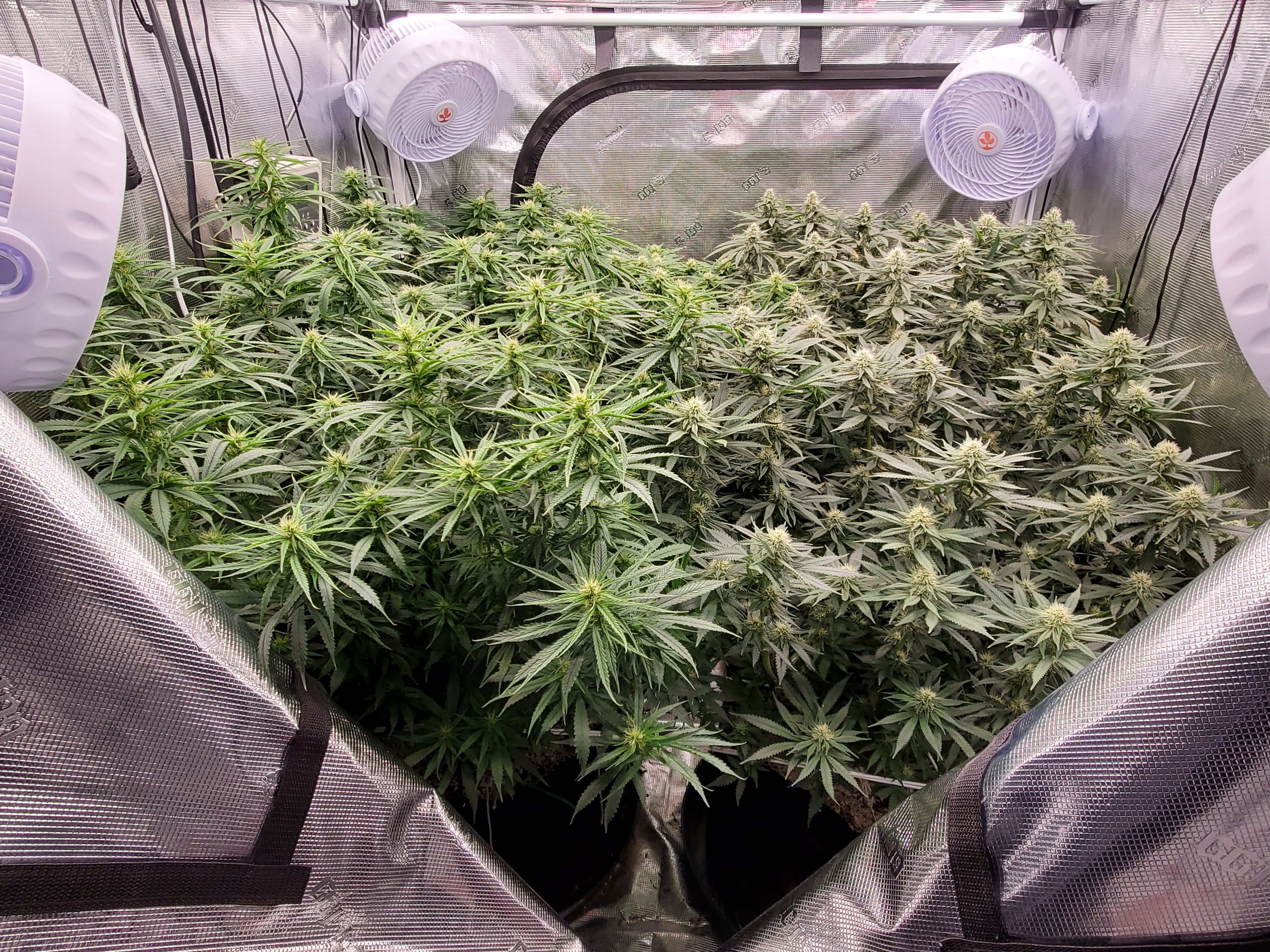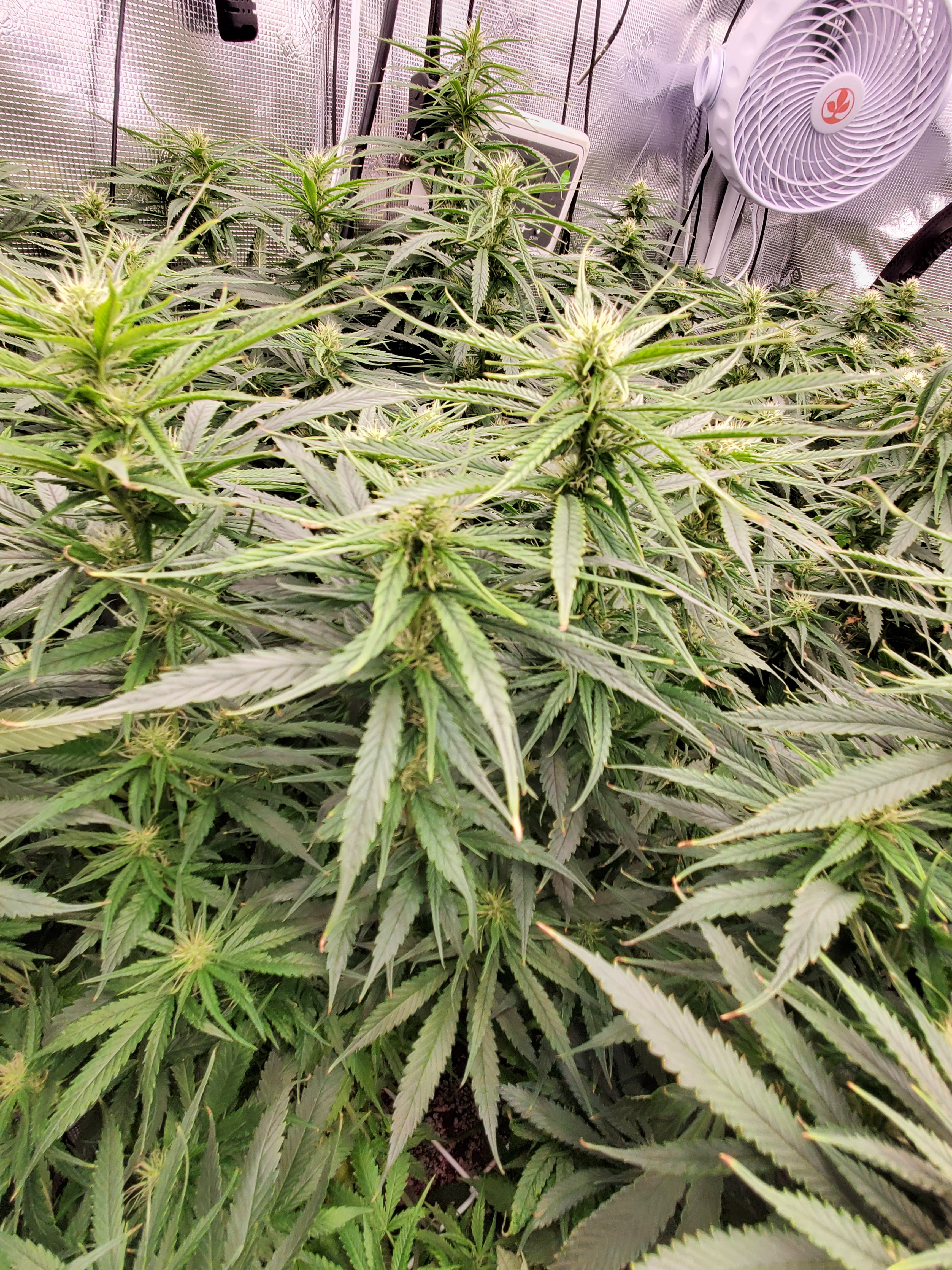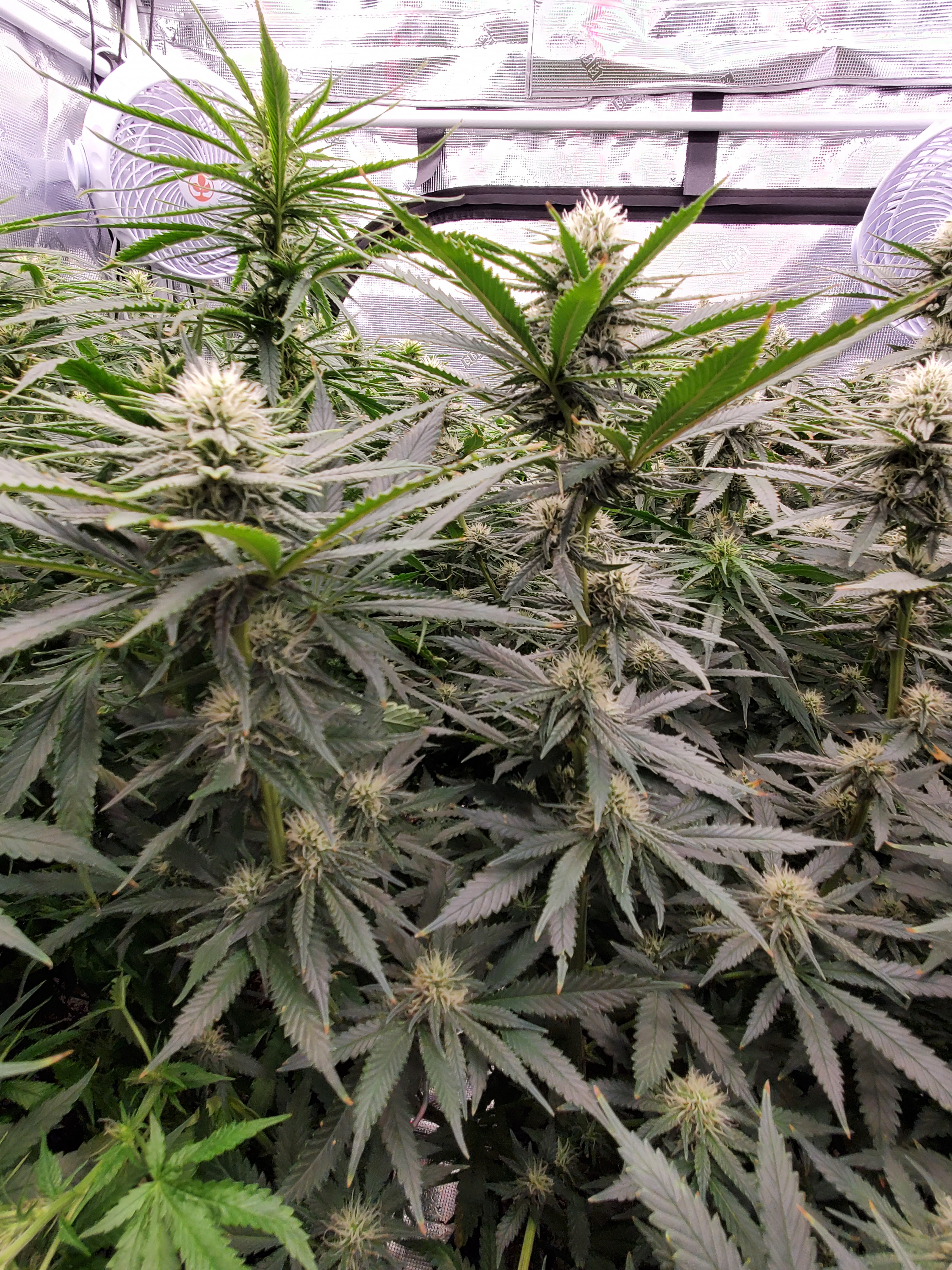Well, first week of flowering down. Looking decent overall. One of my strawberry cough's (bottom left of left tent) had a reaction to switching over to flower nutes. Leaves all started canoeing and branch tops turned yellow. Can't remember which nutes though and can't find the article again lol. Potassium and another p. I'll look at my bottles later, see if I can jog this old stoners memory .