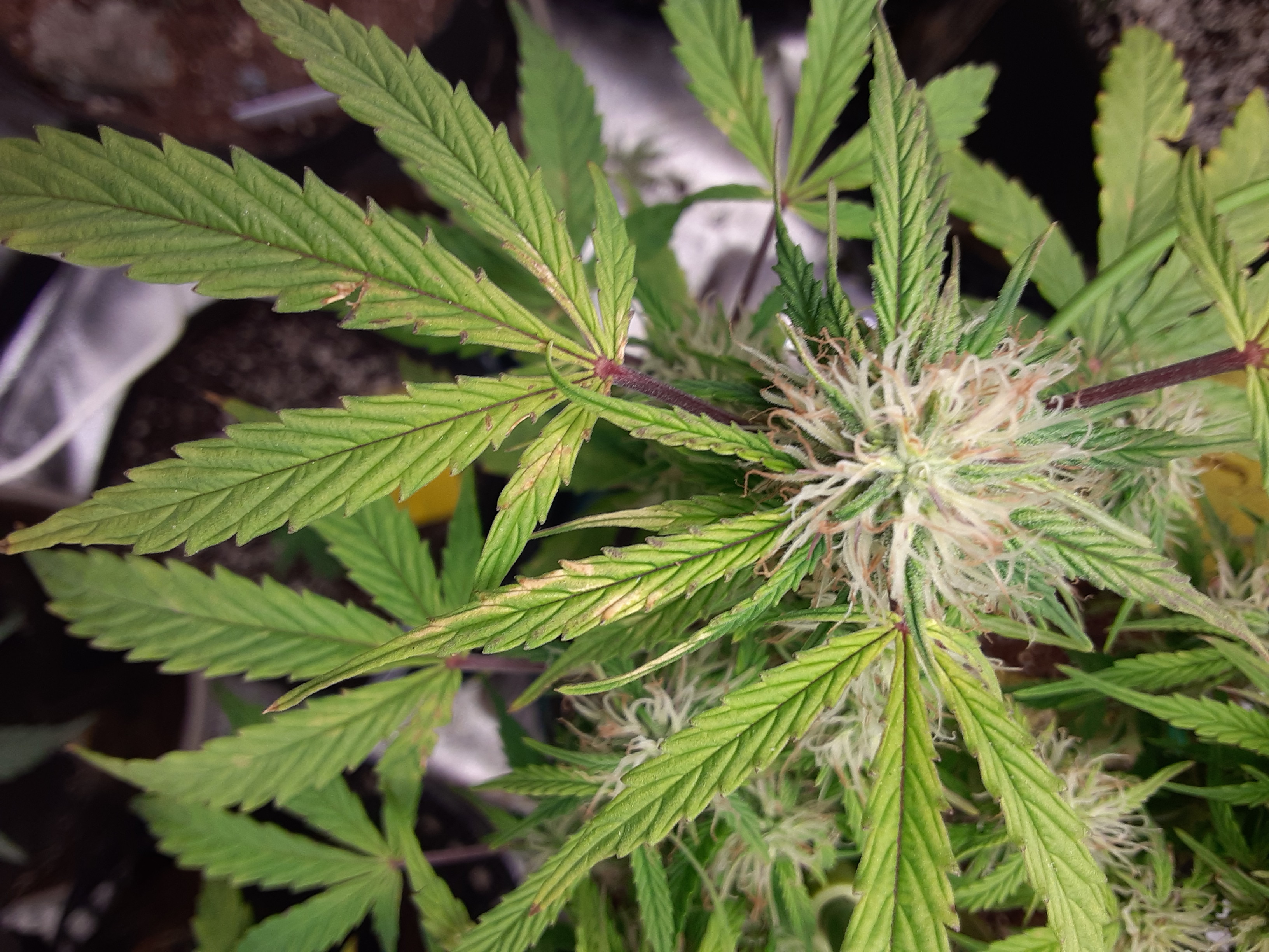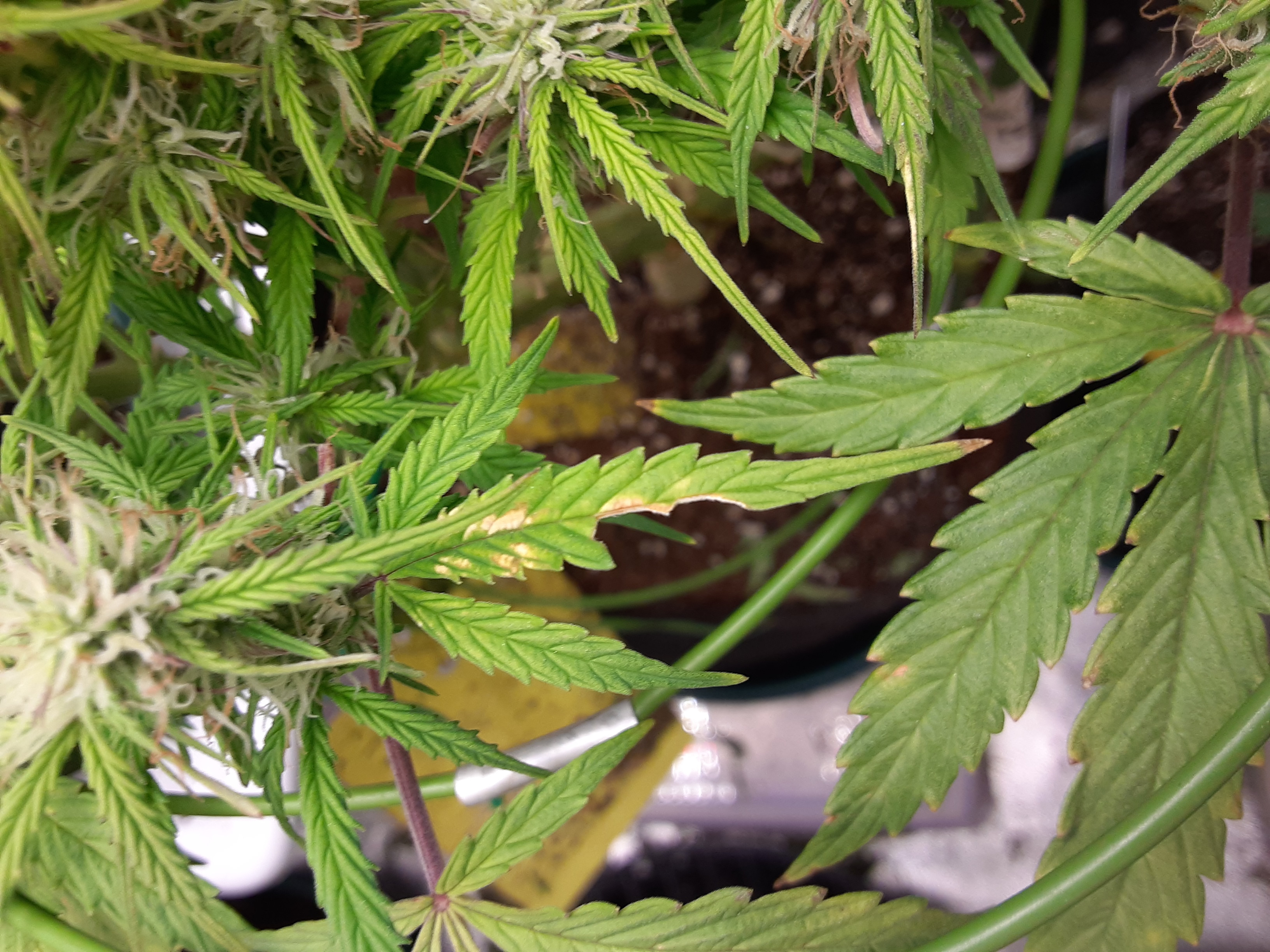 Hey. This seems to happen to me alot. Always In flower. It's one of the 1st signs. The leaves uptop get these bleached looking spots on them. Then the plant fades yellow. Is it something simple i can fix?