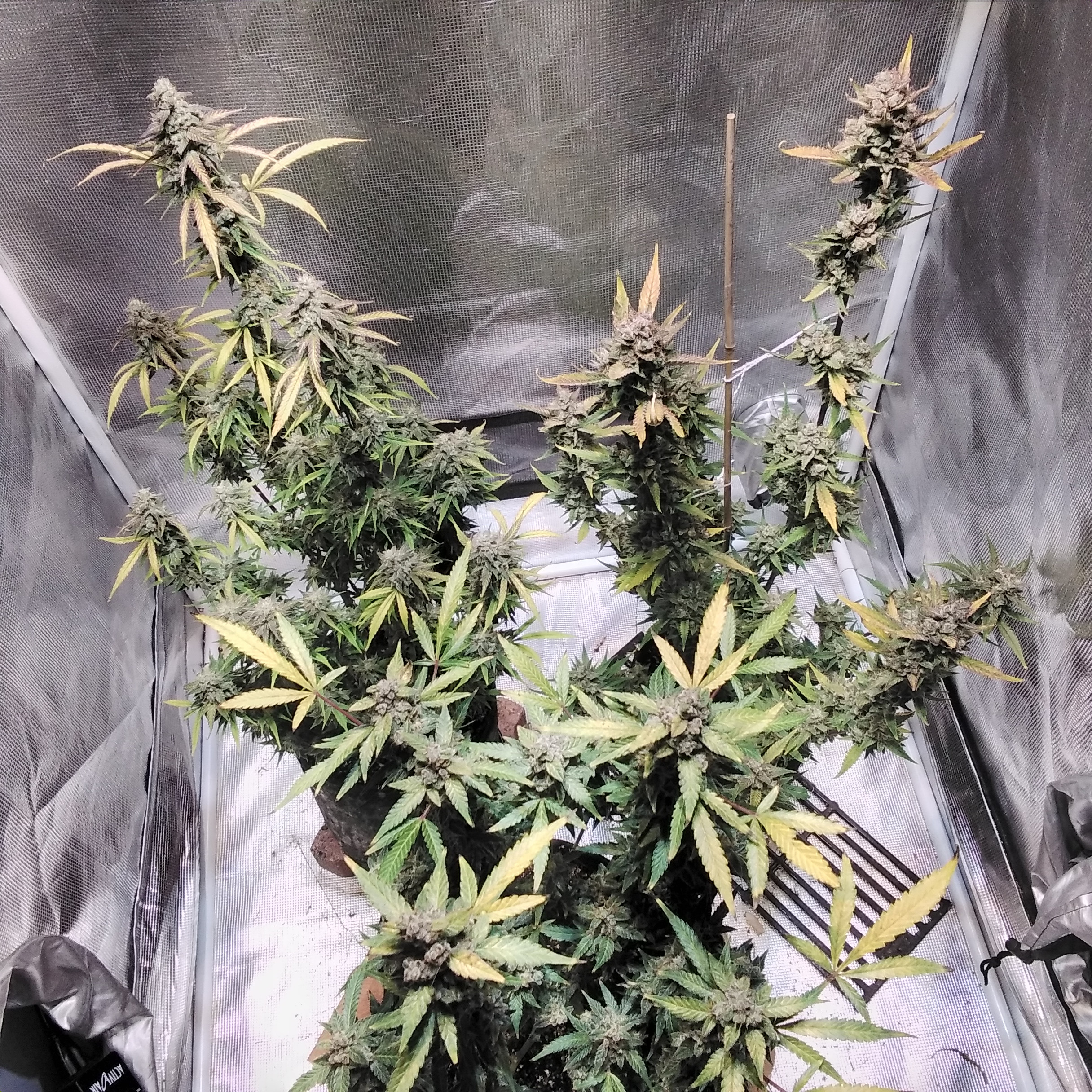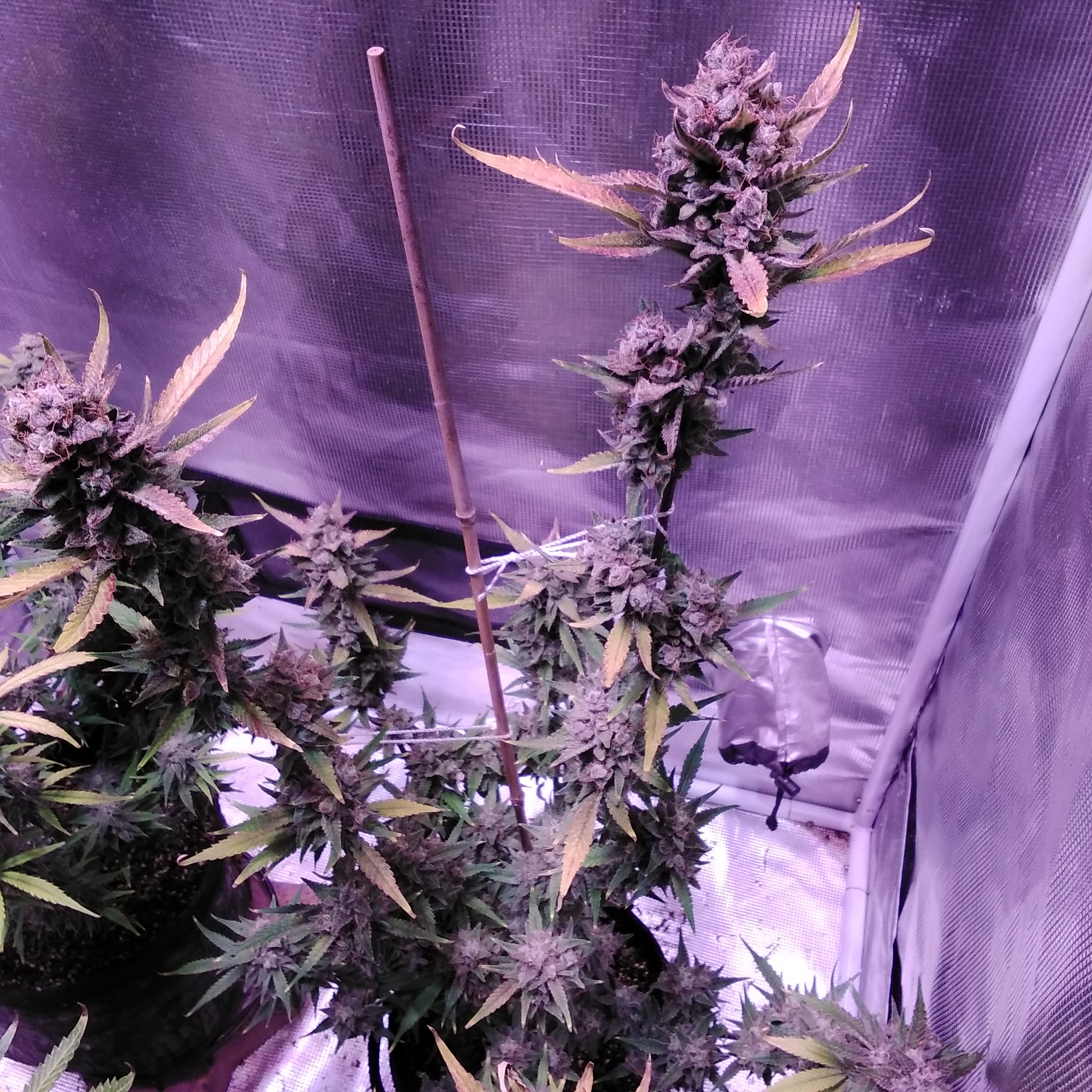 Ah, the first post all 3 pics are the same plant? I'm wondering if mine will pull its buds outward because of weight, and I'd be concerned for rot on mine but my RH is 40% average - light heat & AC running w/doors partly open, waiting for an intact ceiling fan to arrive. I thought in flower RH was supposed to be up to 50%.