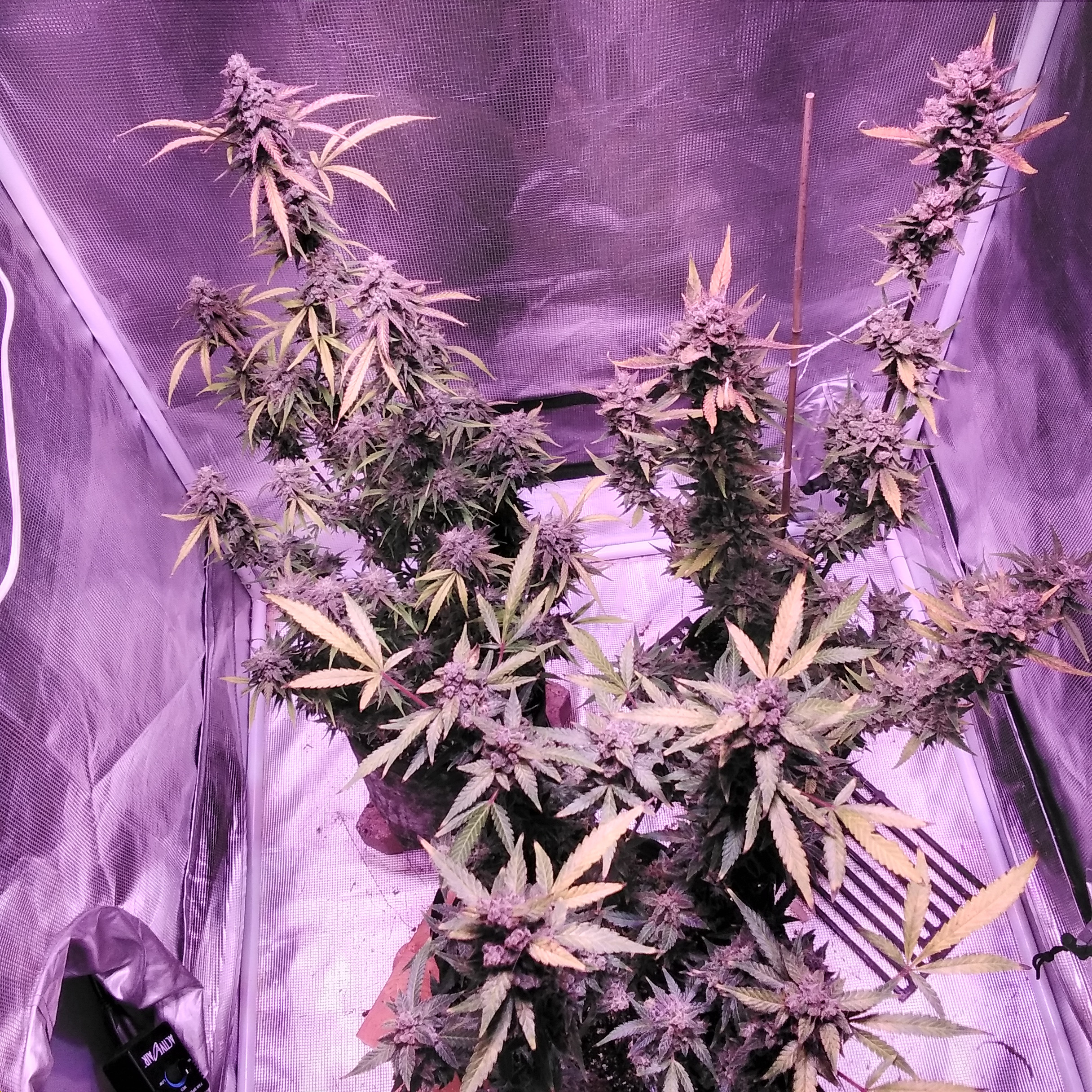 4x4 tent, Platinum LED P4-XML2, four Patio Pickers. Vegging Liberty Haze, Acapulco Gold, Lavender and Sweet Amnesia Haze.