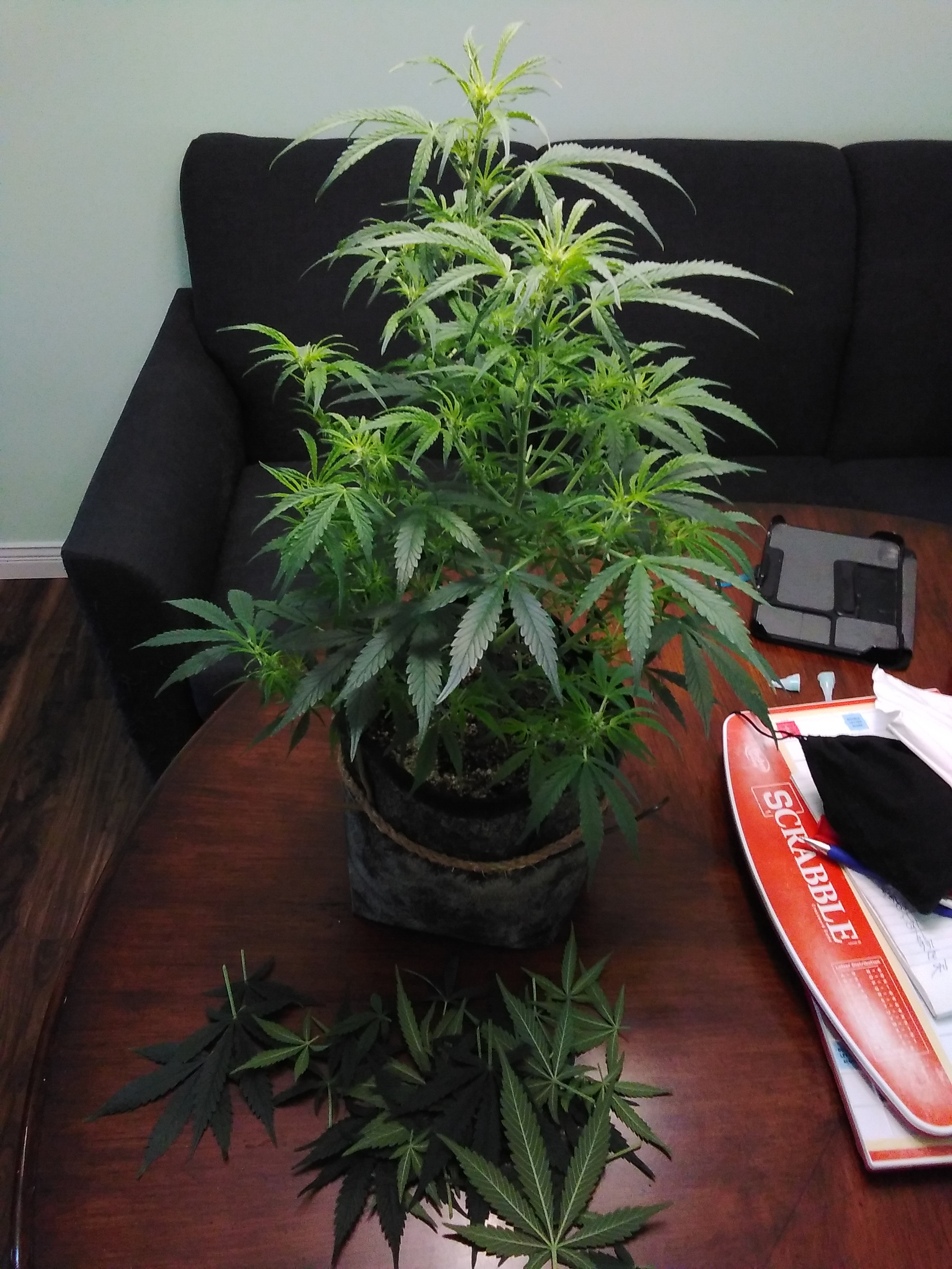 Wet for a few days - so - WPM decides to show up again on a few leaves - was going to spray them last week but someone talked me out of it. So sprayed - defoliated - and watered with first shot of molasses.3 X 3 gorilla. Promix soil . Green Planet Nutes