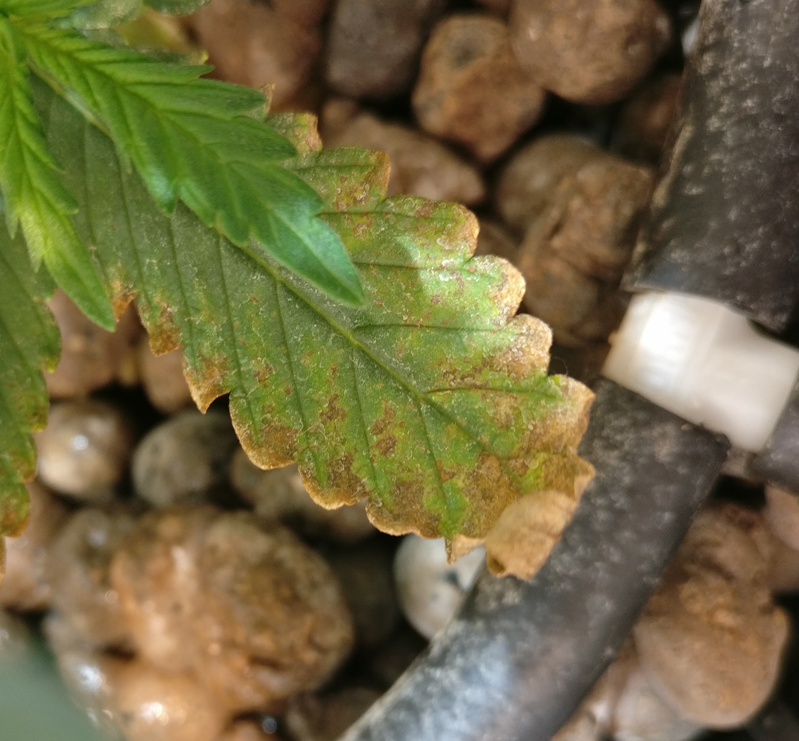 First I supposed a Phosphorus and Calcium deficiency due a high PH and I adjusted the PH to 5,5. Then I guessed an overwatering or an excess of nutrients.