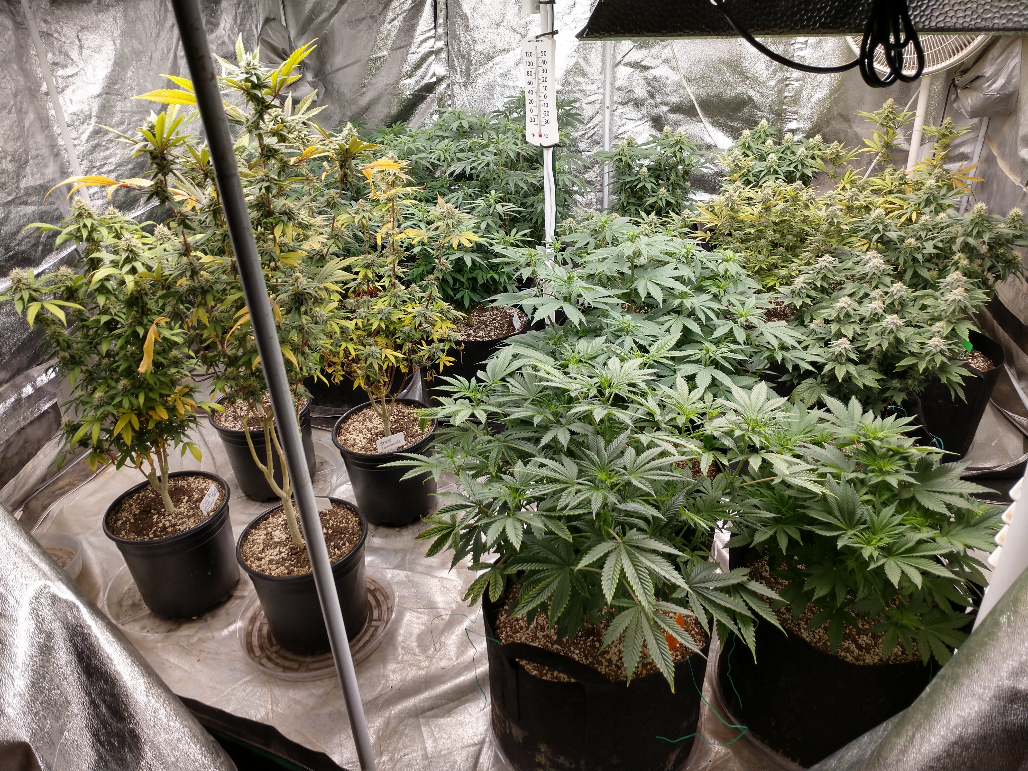 Well it's been fun having the big tent while it lasted! Unfortunately, the owner of the house I've been renting wants me to move out so she can sell. Long story but basically I can't buy it so I have to move. The ONLY place I found in my small town that would let me have all my dogs is a project house and needs a lot of work. On the positive side, she's going to let me stay there rent free if I fix it up for her. Another downside is that it's smaller than the house I'm in now so I have to downsize my grow a little bit, meaning no more 8x8. I will be putting it in storage for a little while, along with the brand new LEDs I just bought, and setting it aside for a later date.