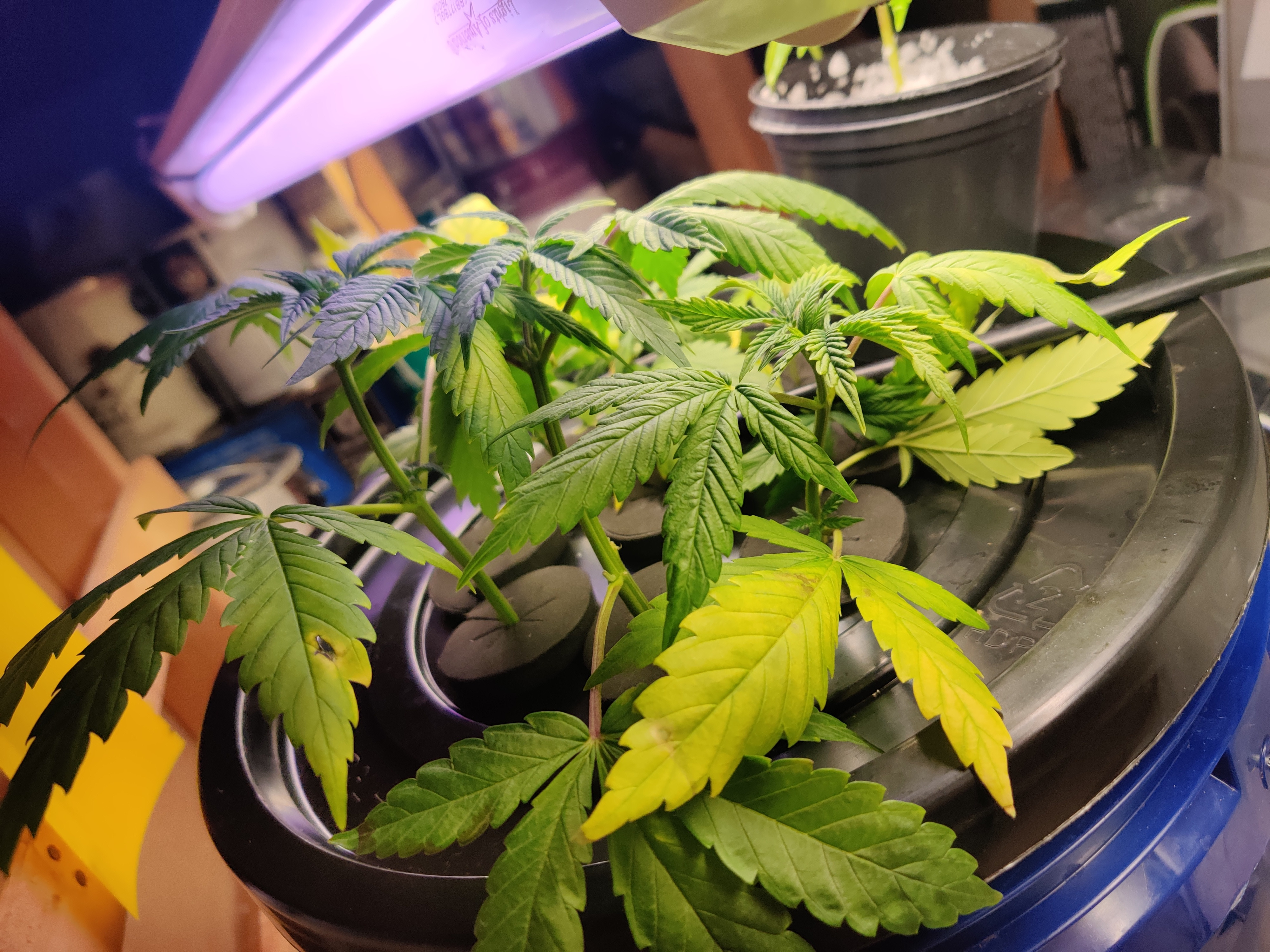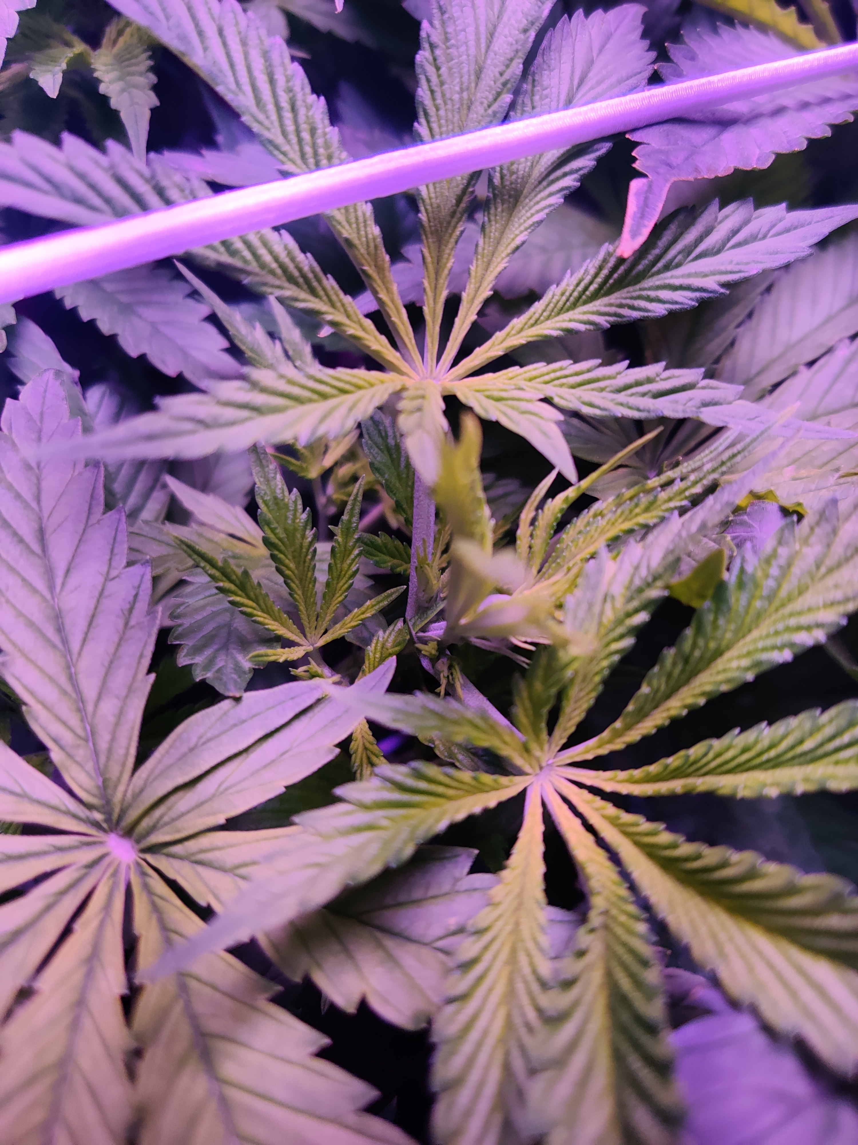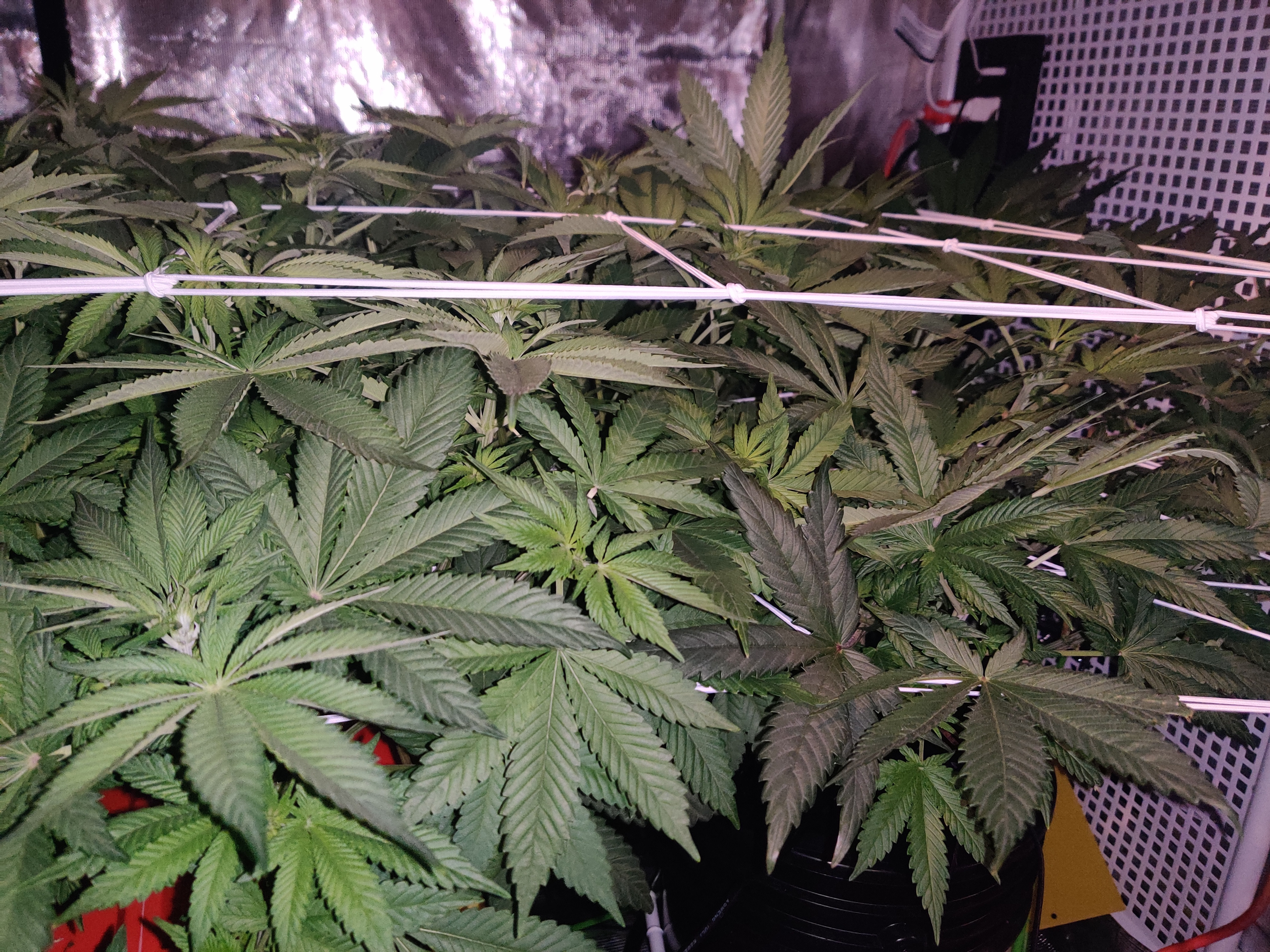 All the plants are starting to show white pistils. I'm seeing a bit of burnt tips on all the plants but I think that's because I lowered the light a little bit. I'm hoping the plant gets accostumed to the extra umph. I've also noticed the candy queen is a much lighter green color. Not sure if that's a deficiency or just the strain.