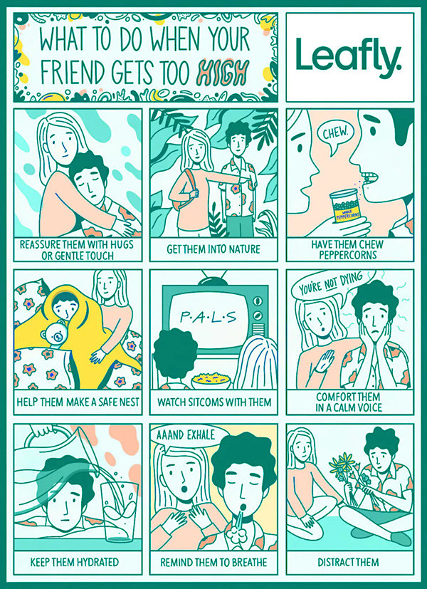 An ounce of prevention: control guest's access to your edibles! I shared a weak batch of gummies with friends once. Months later, they stayed over again and ate three gummies expecting similar strength from last time. I'd upped my game by then! We managed to talk the most severe case down until he finally passed out.Coconut Grove