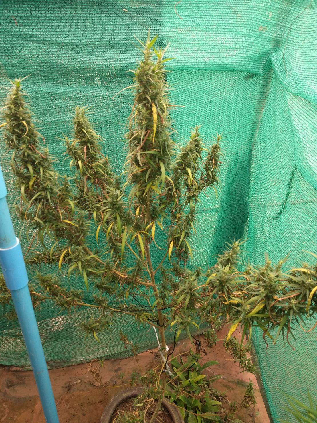 This is my plant which was grown from a bag seed. The plant has never received any plant food, it has survived to this point using soil mixed with cow manure and ground water from my borehole. It has never received any vitamins or plant food at all. I have not measured the Ph of the water or the soil, and I don't remember how old it is.