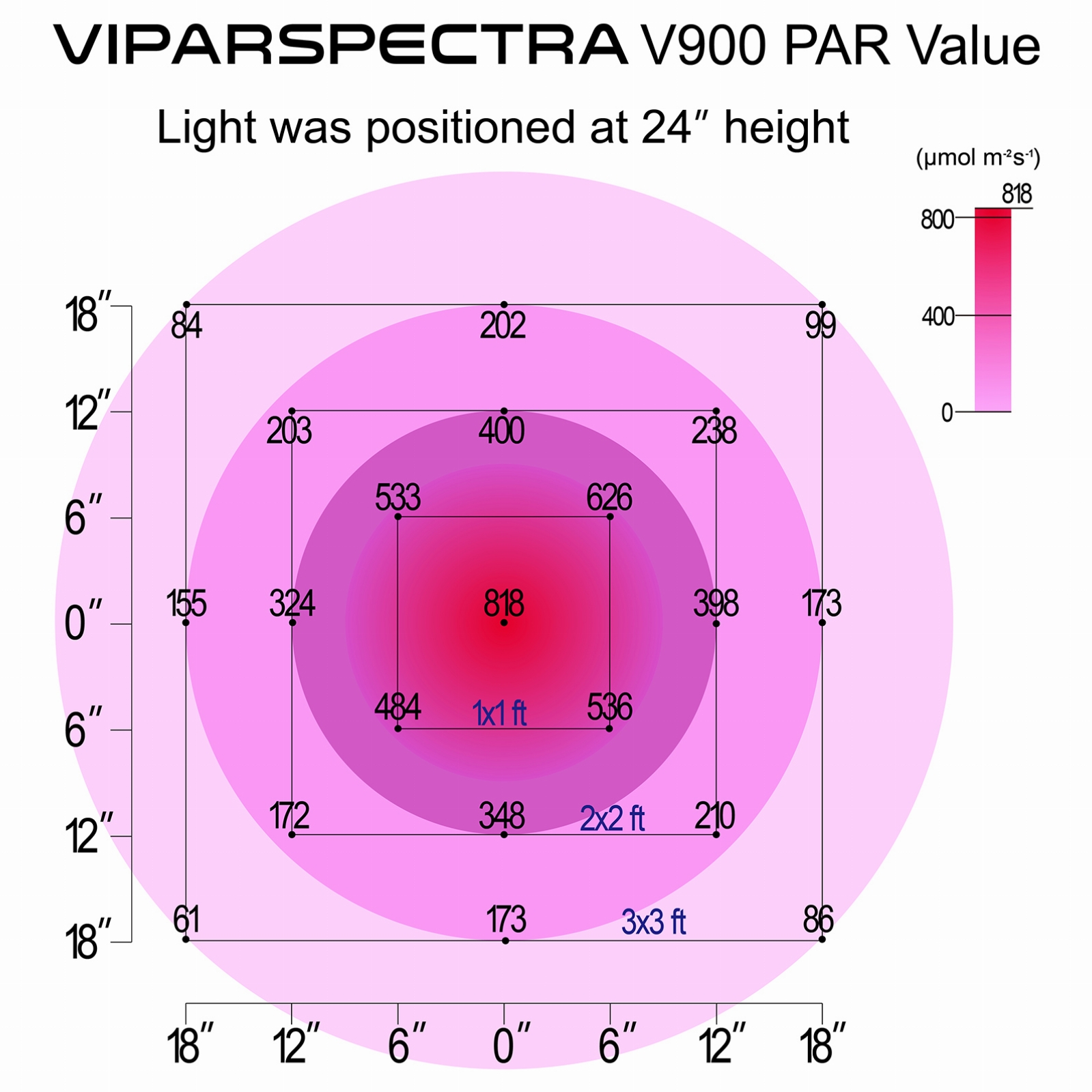 400W - covers 3' x 3' (0.9m x 0.9m) area up to 3.5' x 3.5' (1m x 1m)