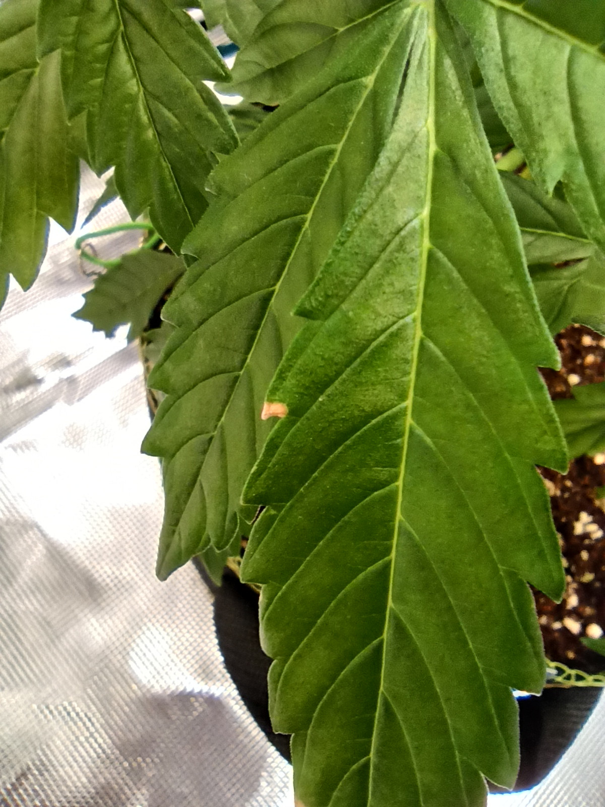 Next I started giving normally but in the morning there were the drops of water on leaves because of high humidity. And looks like these condensate left some burns? Or it is some kind of excess/deficiency.