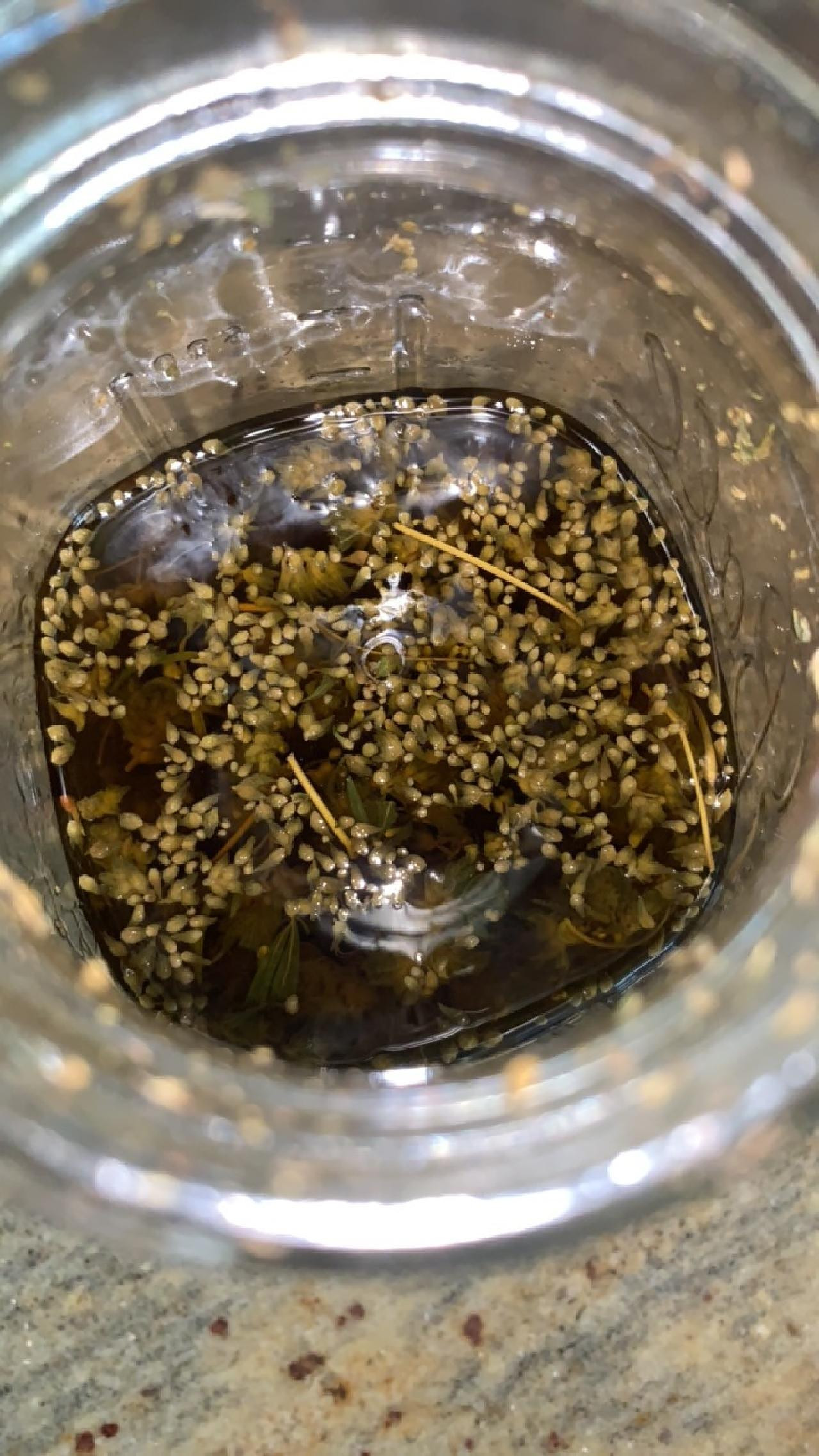 A buddy of mine that I gave starter plants to brought me a bag of bud to make tincture for him. I was kind of bent out of shape last season when he harvested even though I told him they weren't ready and this is some of that bud. Maybe he dodged a bullet by taking it early? Because all this stuff that floated to the top of the jar sure looks like immature seeds to me. Opinions?