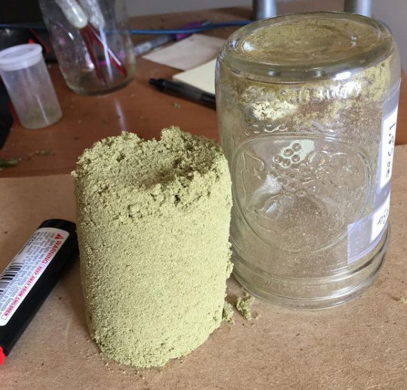 if somebody makes this, I found it a good practice to tape a desiccant packet to the underside of the mason jar lid. If not, mold may happen. The pic may look good but it's harsh, it's sift from a 90 bag. And you can't press it either, from my experience.