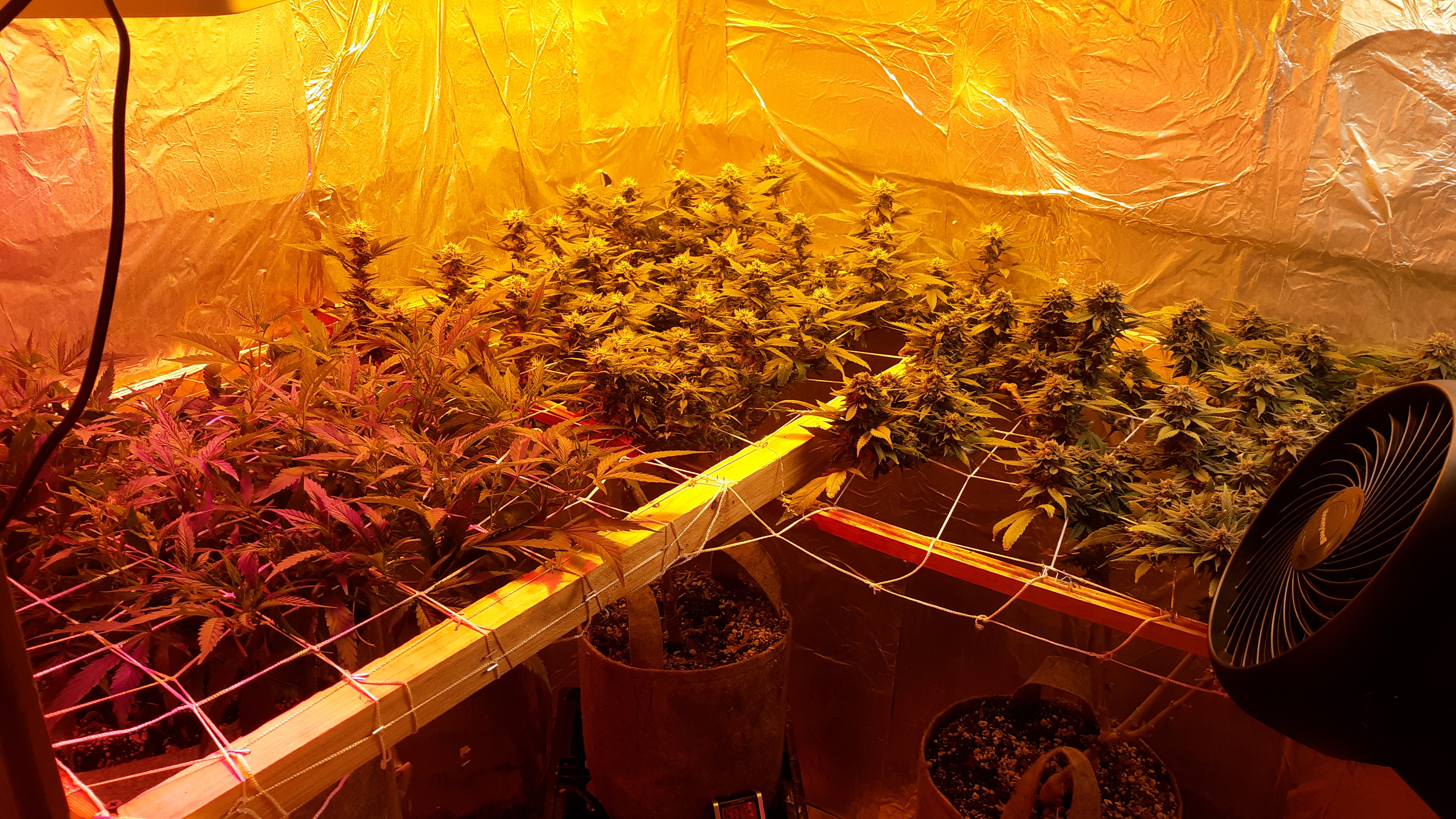 5x5 DIY flower room with 3 nets. 600w Hid mars hydro 600(100w) and Chinese led (150w actual).. Promix C coco mix +20% course perlite. General hydro nutes at slightly under full dose+ cal mag and molasses every other water.