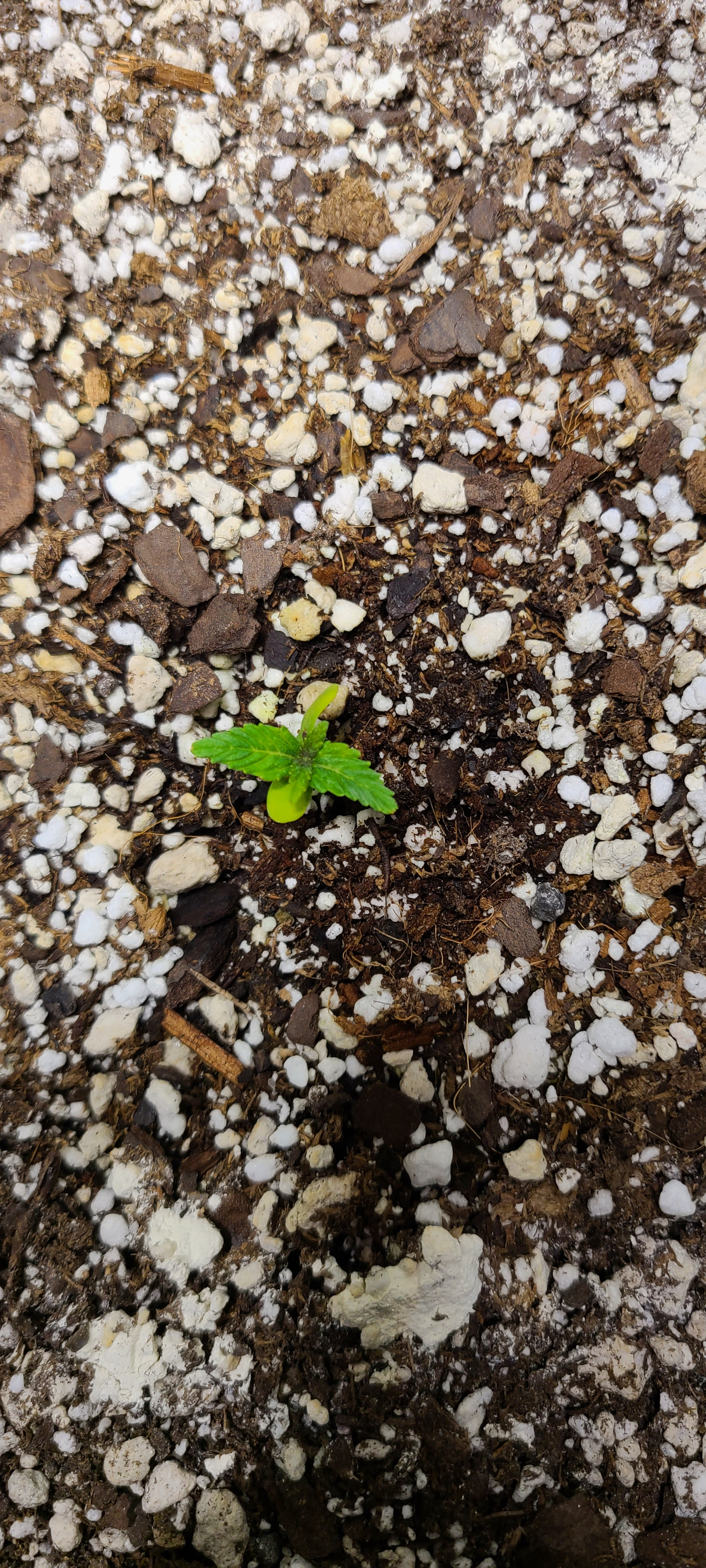 So far with day one- I dont have the seedling in my tent as I still have 4 or so more days of my last grow on a 18/6 light schedule and not enough room for this seedling to reach any light. I have a light pointed at it that gets very hot so temperature isnt a worry for me. Im feeding filtered water with a 6-6.5 pH (using paper method, digital meter gets here later today) out of a squirte bottle every few hours or if the soil appears dry. I have no idea how much water the seed needs so im just going by guess.