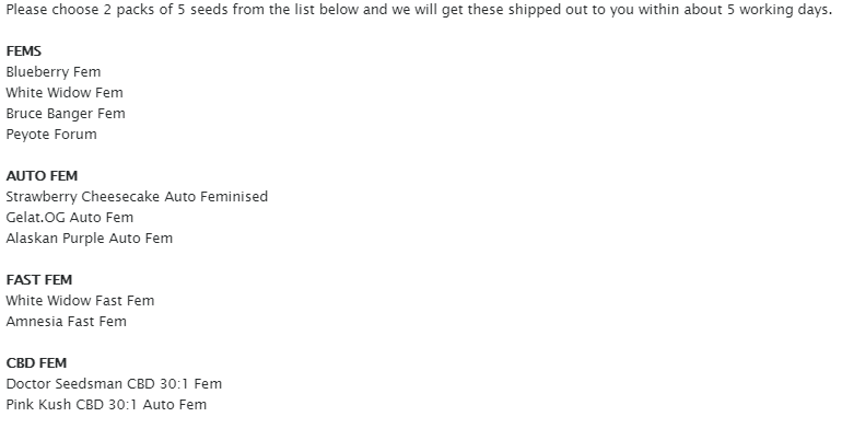Seedsman 5 seeds $71.50