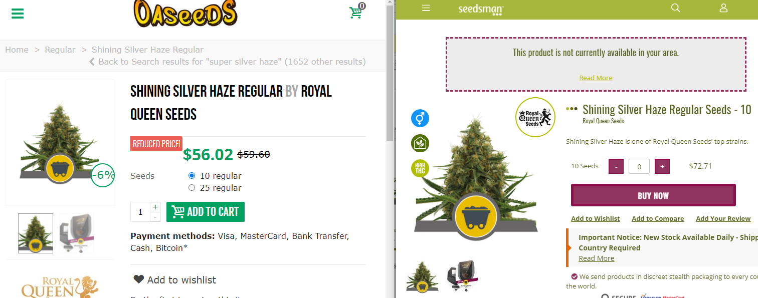 Seedsman 10 seeds $72.71