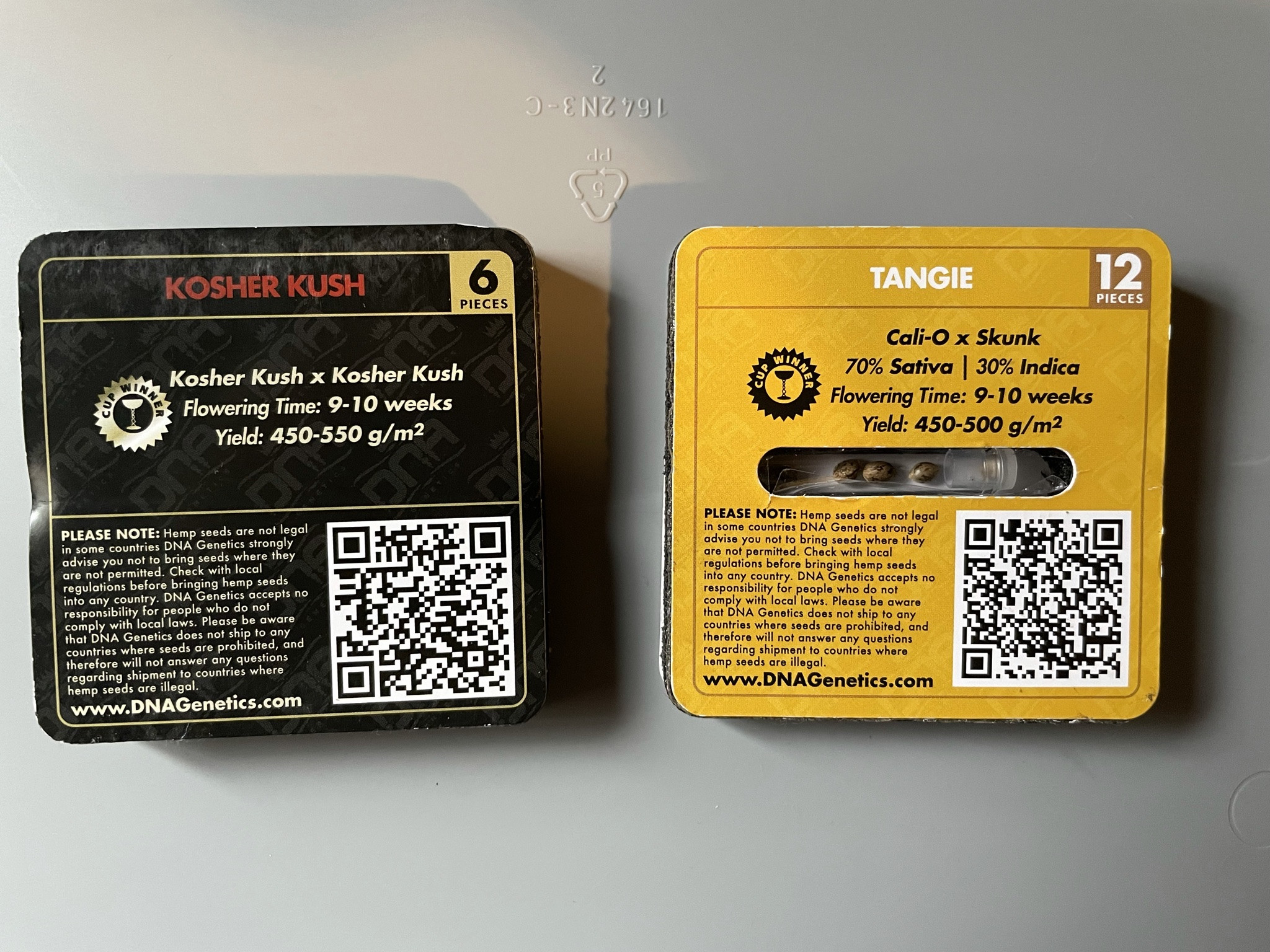 Week zero of veg is here! Eight out of eight seeds from DNA/Crockett Farms germinated and even better, all six transplanted to hydro survived the move yesterday. With those six looking good, I've moved the alternate Tangie and the Kosher Kush seedlings to coco in cups so I can clear the seedling tray for Project Deuxberry which will be closer to a start after I jar up all the bud from the Skunk that is drying in its tent right now.