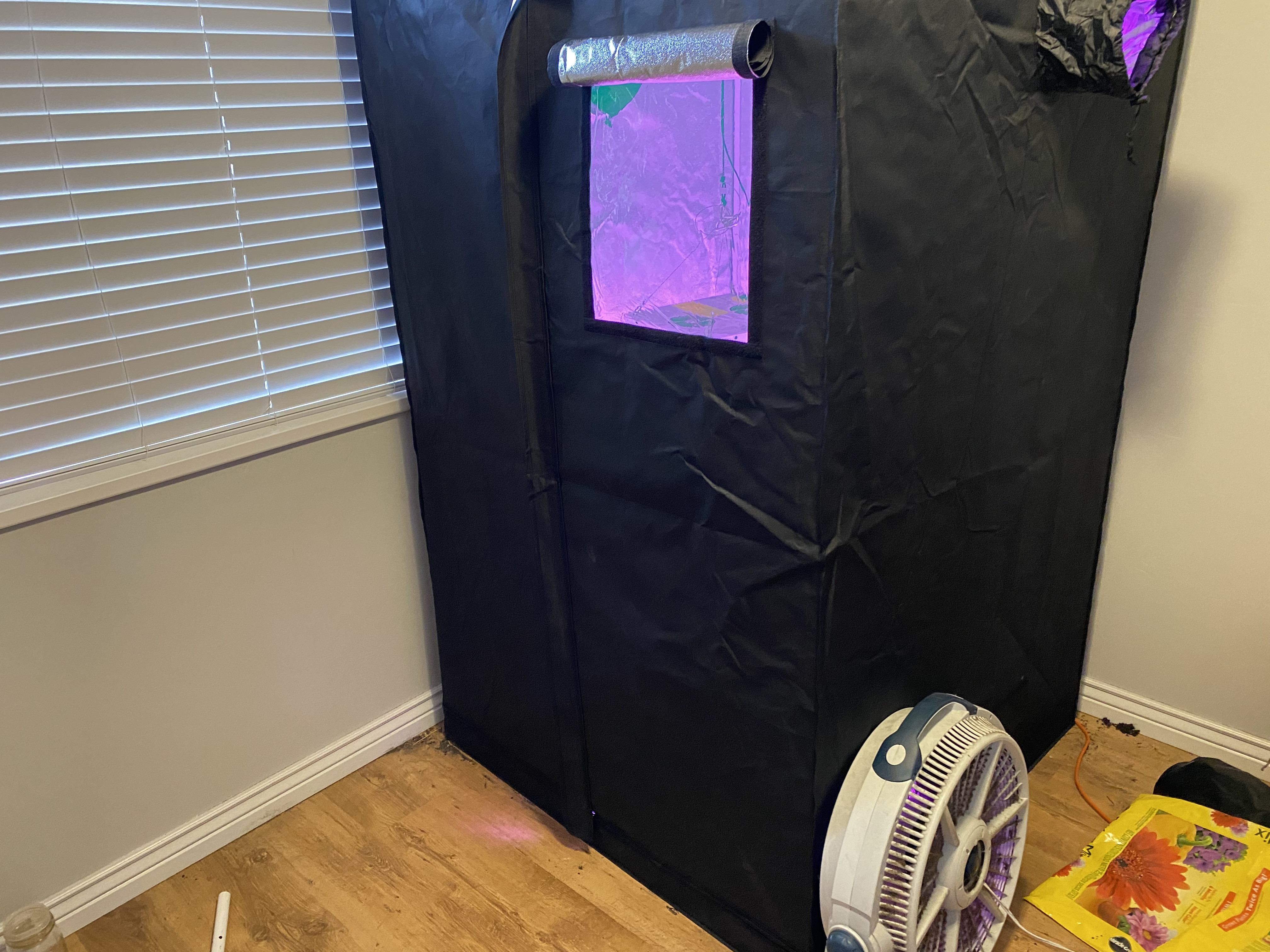 Update! Fan and exhaust are in. Here’s a peak through the window….