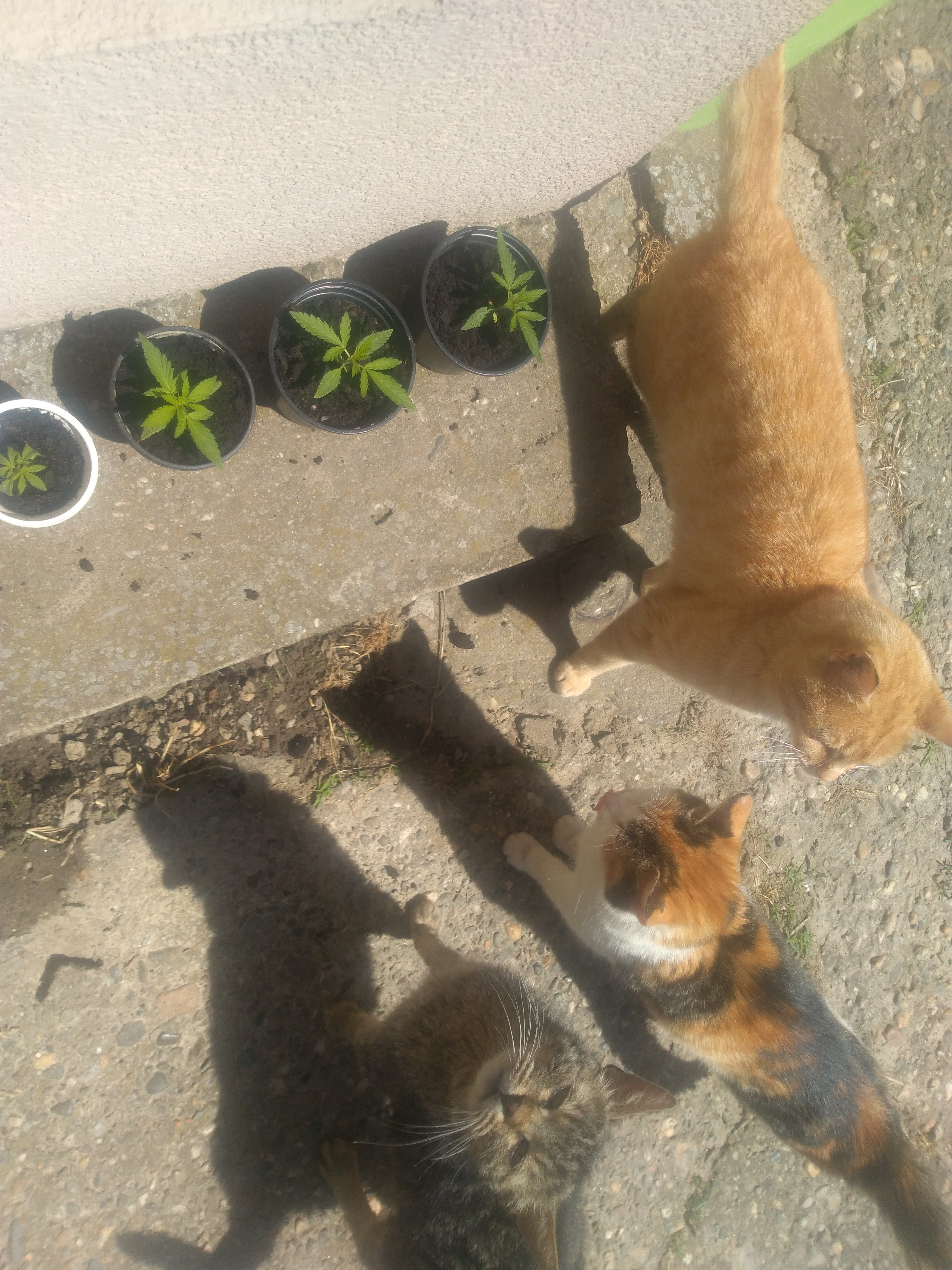 Those do look good Cunjo420 the sun is powerful medicine it really does wonders. Love your cats i love all of natures plants an animals. I'm sorry if i sounded off about the cow shit so many grow without reading about soils for MJ. Now you know that stones like in our outdoor grounds help with drainage, it's so importaint not to get compacted soils. Good luck